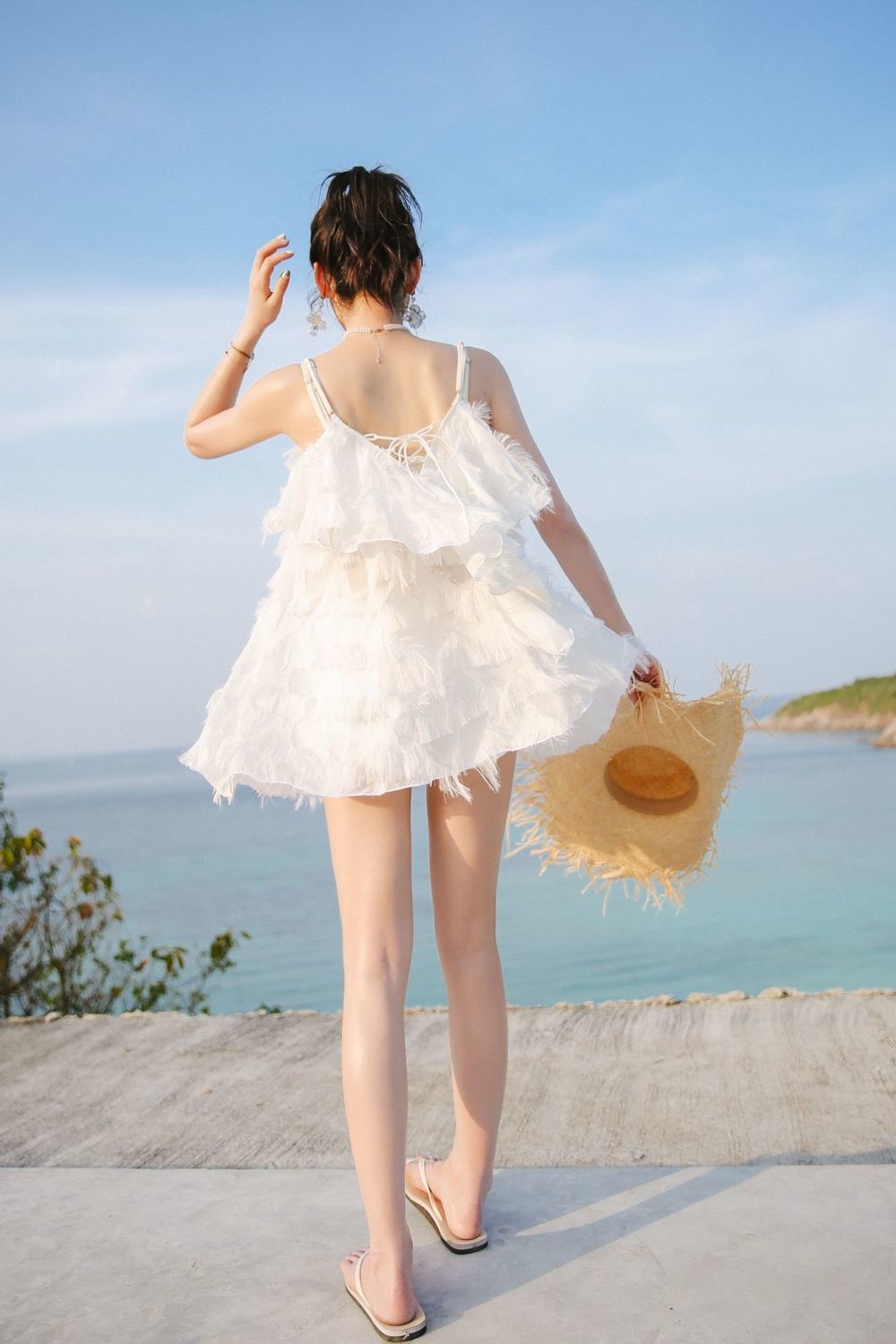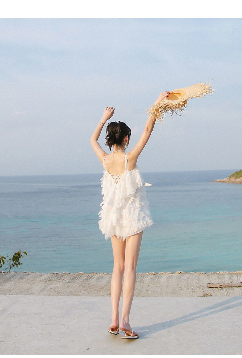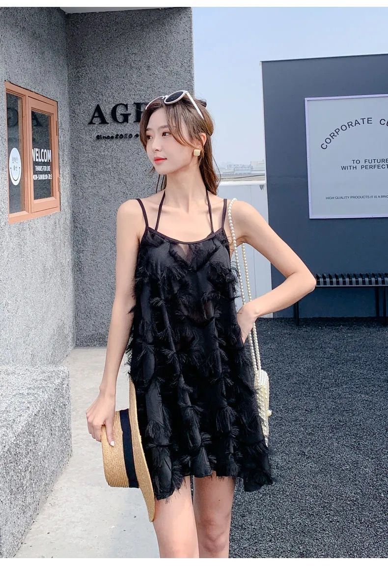 잉잉 수영복 2021 새로운 한국 스타일 Ins 여성 여름 슈퍼 요정 깃털 보수적 인 고기 커버 비치 수영복 메쉬 잉케스토어 가기