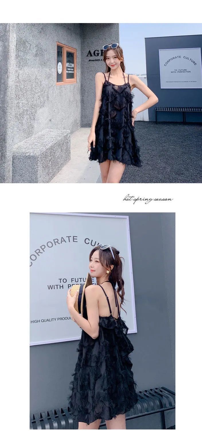 잉잉 수영복 2021 새로운 한국 스타일 Ins 여성 여름 슈퍼 요정 깃털 보수적 인 고기 커버 비치 수영복 메쉬 잉케
