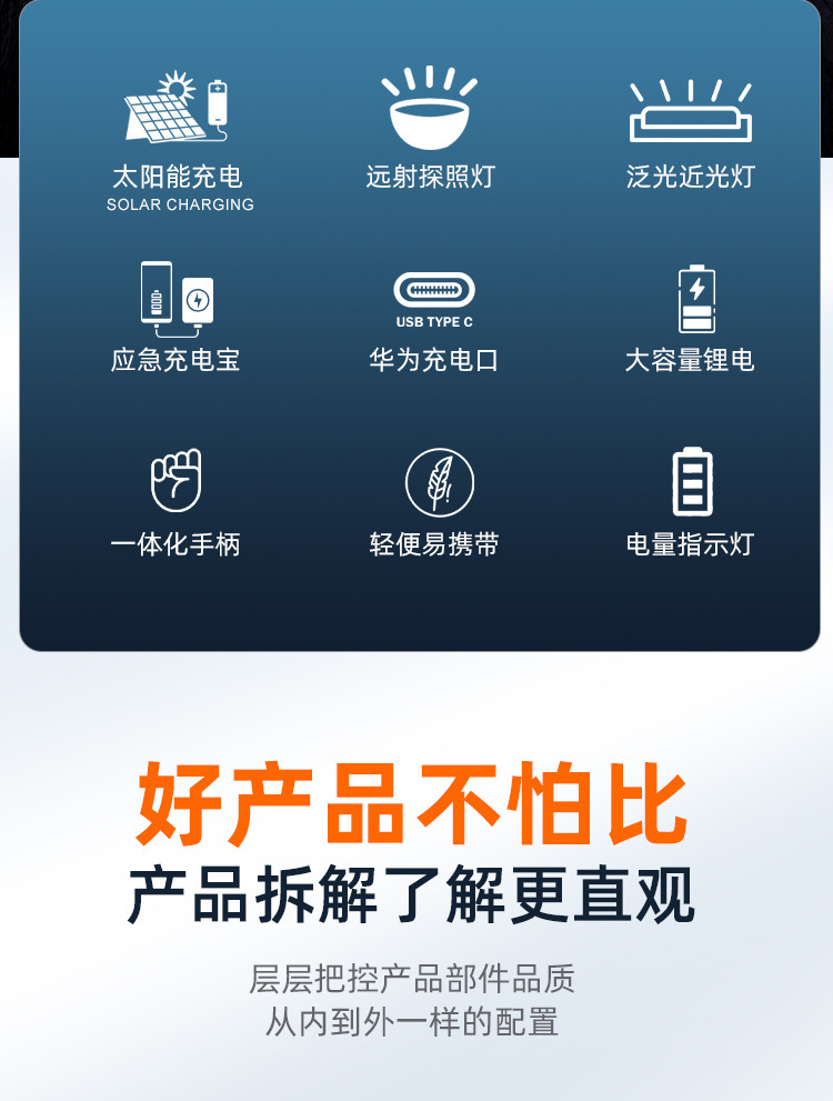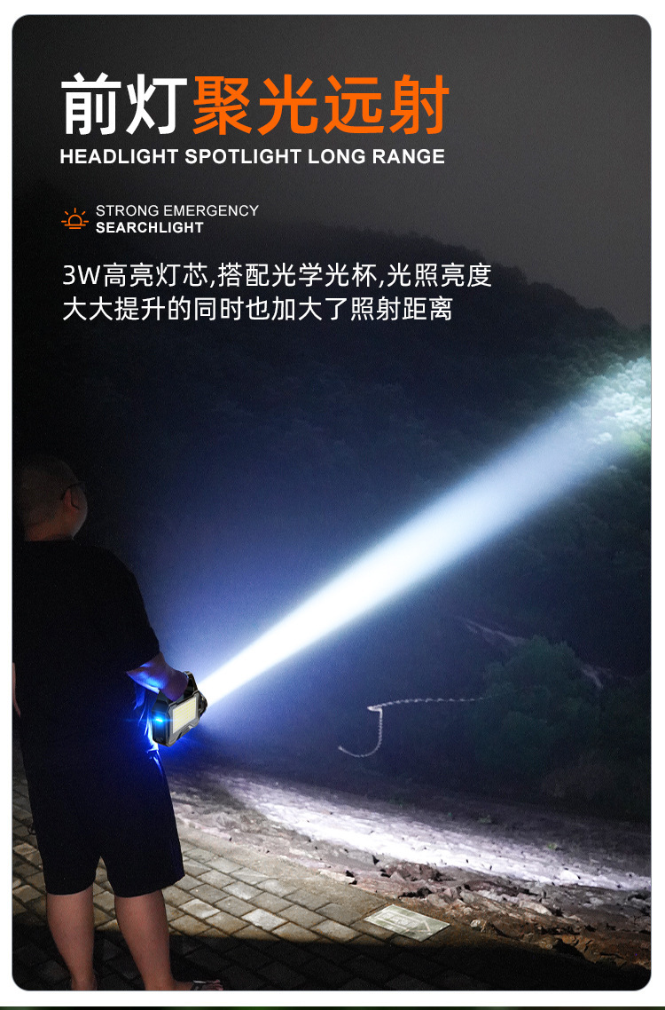 태양 폭발성 손전등 LED 강한 빛 야외 USB 충전 슈퍼 밝은 다기능 cob 작업 빛 휴대용 램프