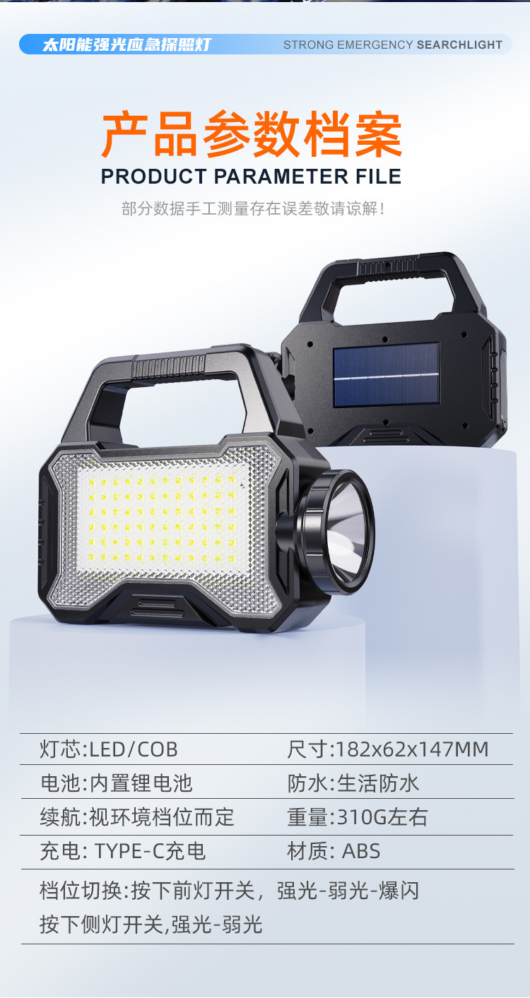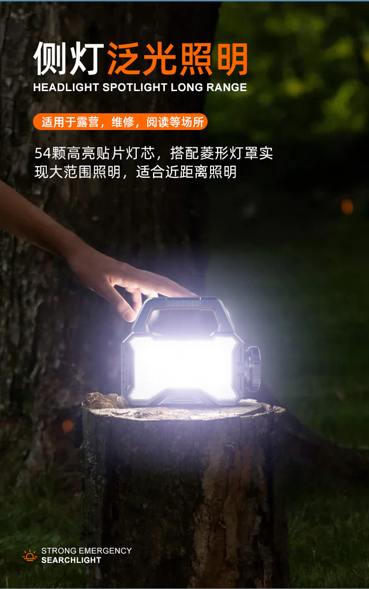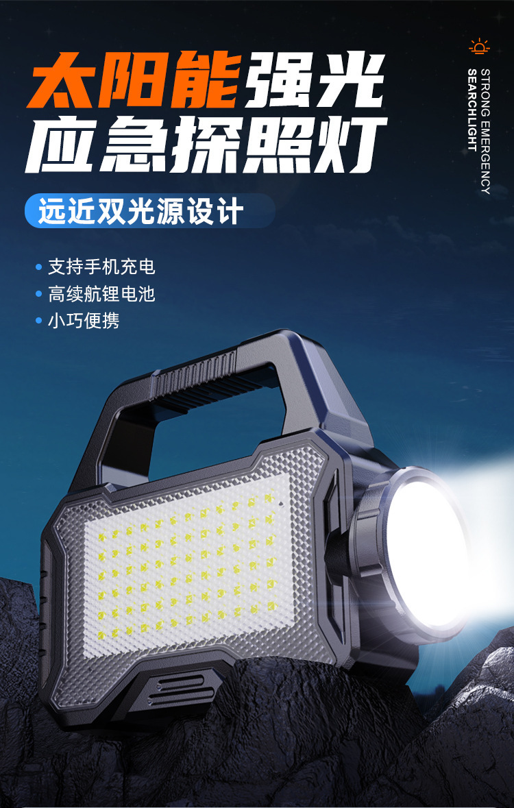 • BK688-내장 충전식 리튬 배터리-태양광 충전식-휴대용 램프-서치라이트-전원 은행