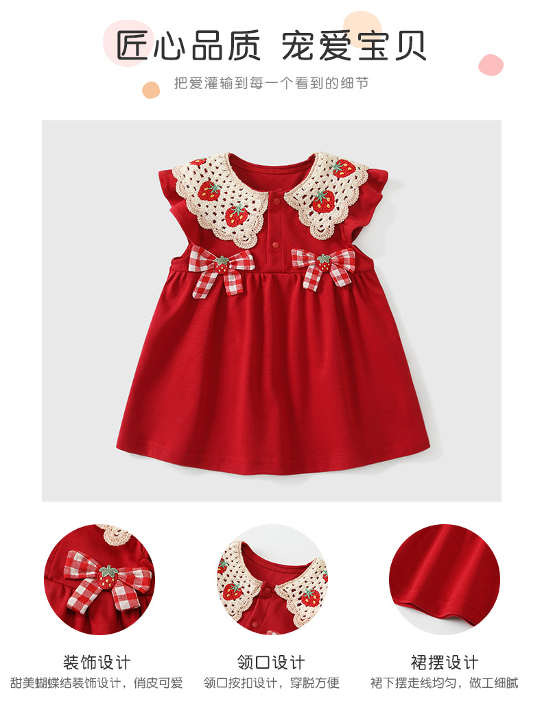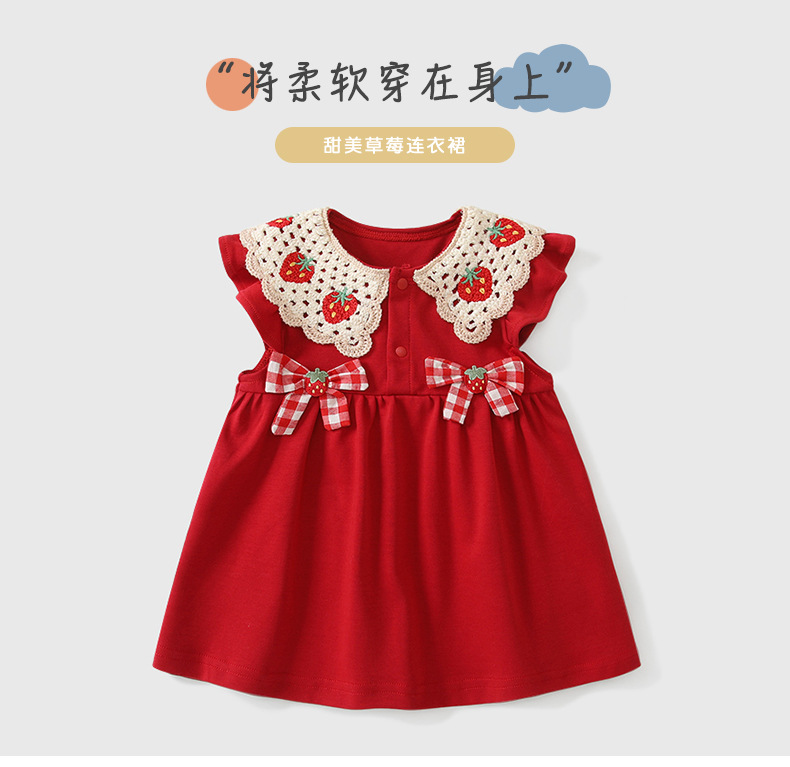 2025 아이 아기 소녀 원피스 여름 빨간 딸기 원피스 아기 잡아 주 공주 원피스 어린 소녀 원피스스토어 가기