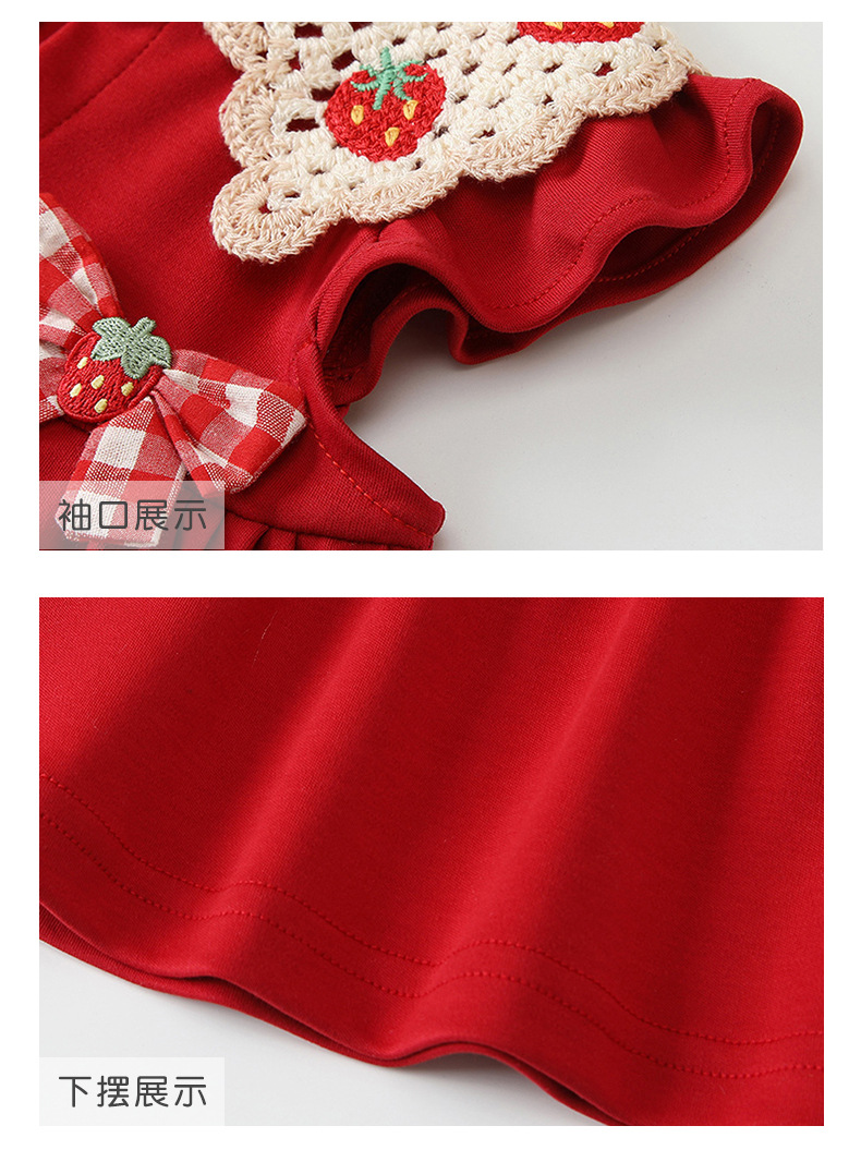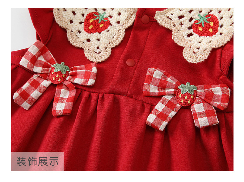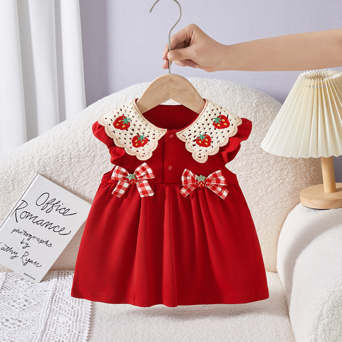 2025 아이 아기 소녀 원피스 여름 빨간 딸기 원피스 아기 잡아 주 공주 원피스 어린 소녀 원피스