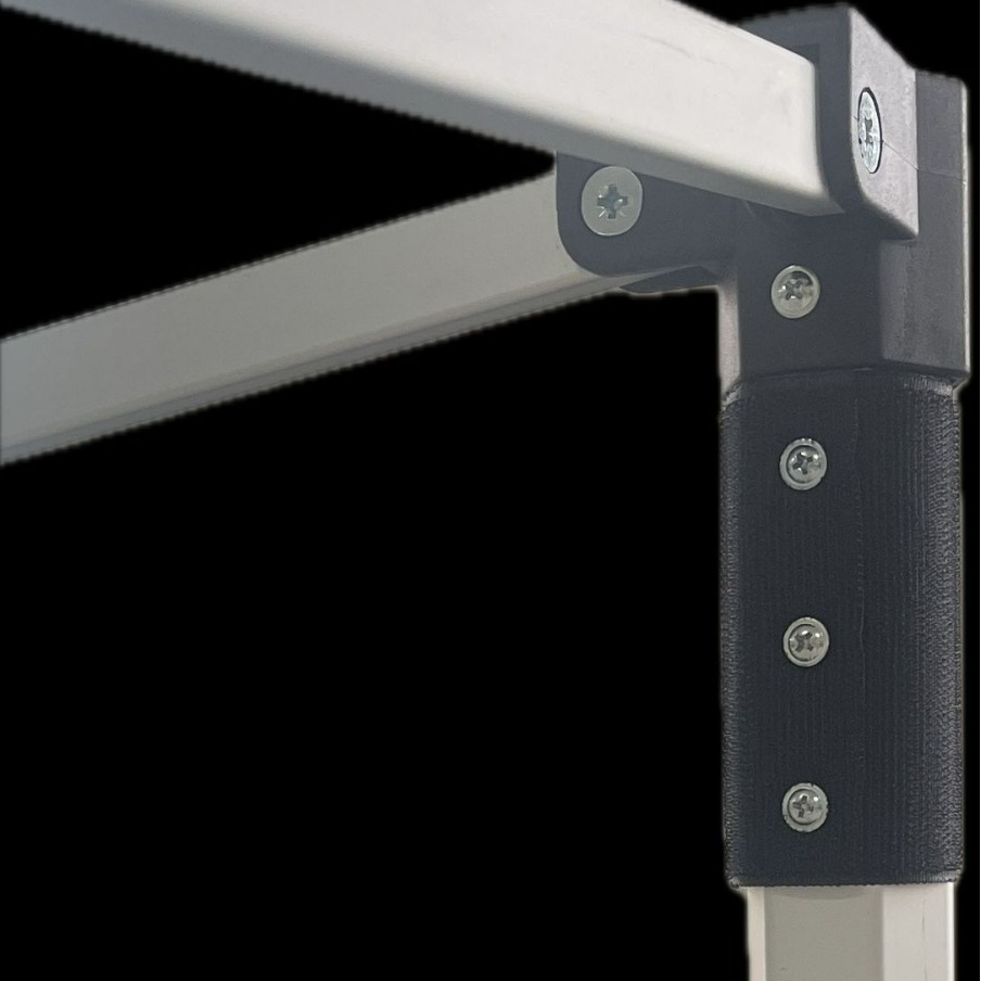 3、篷布放在支架中间的顶上,篷布的四个脚对准支架的四个脚上端,贴紧魔术贴。