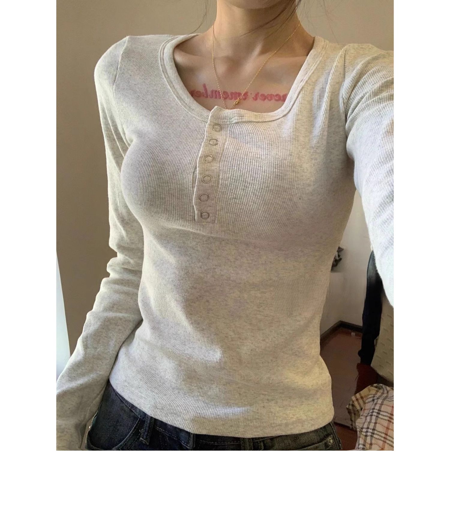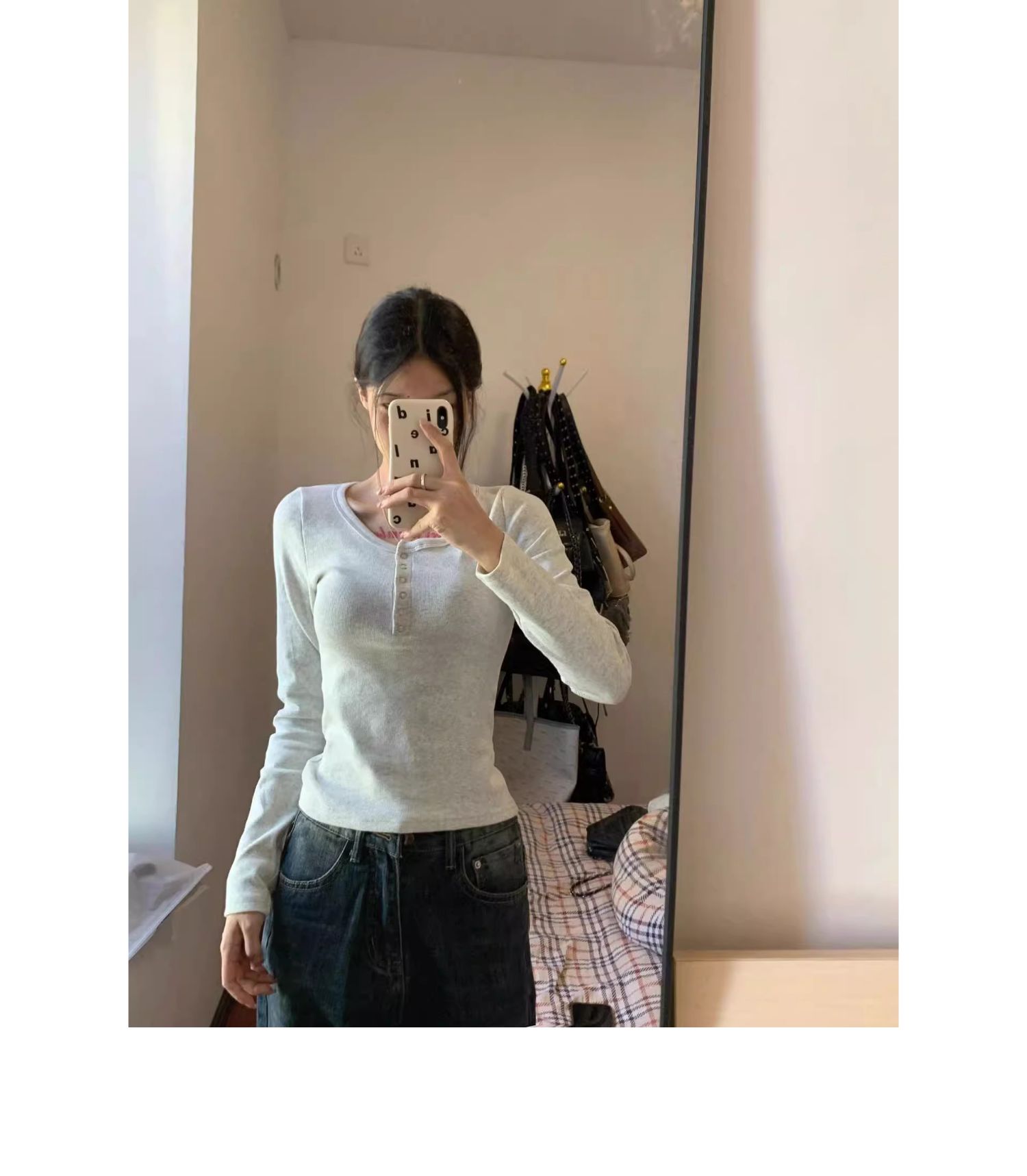 봄과 가을 회색 실 어깨 긴팔 티셔츠 여성용 플러스 사이즈 통통녀 슬림 핏 슬리밍 버클베이스 셔츠 내부 탑스토어 가기