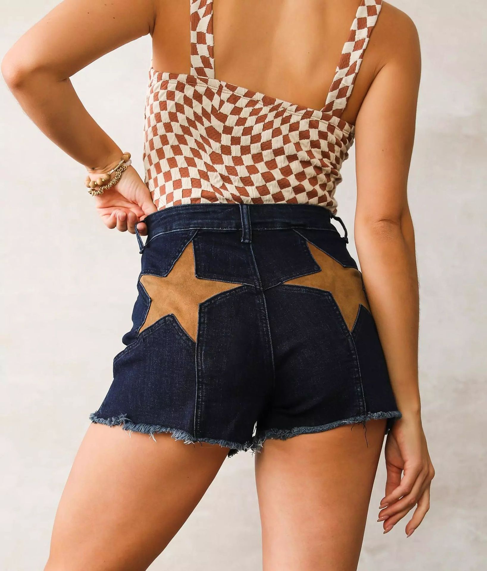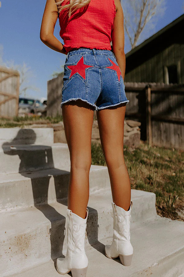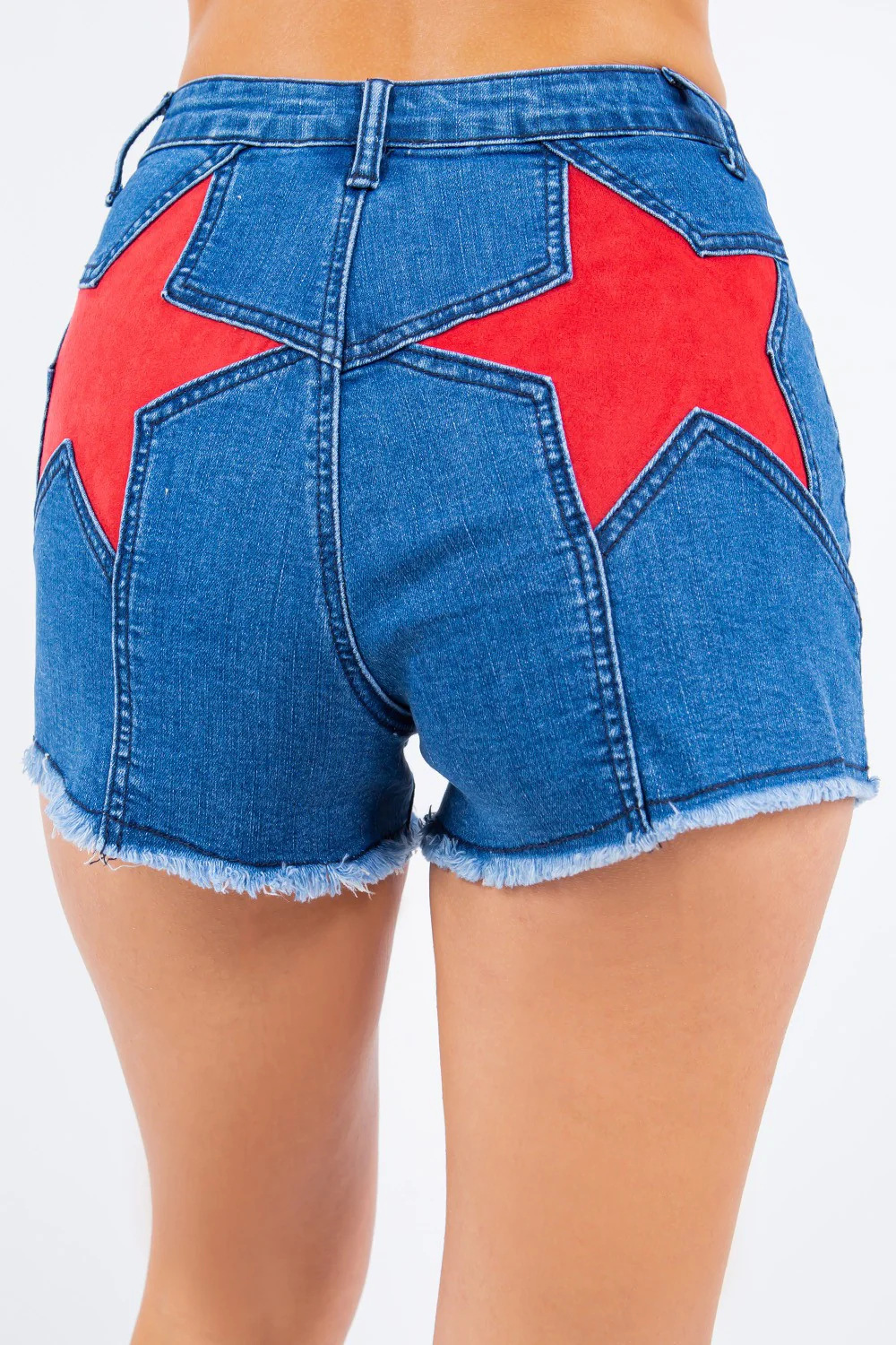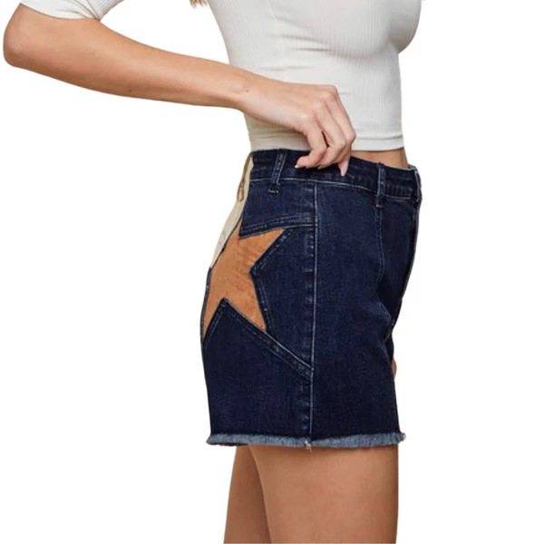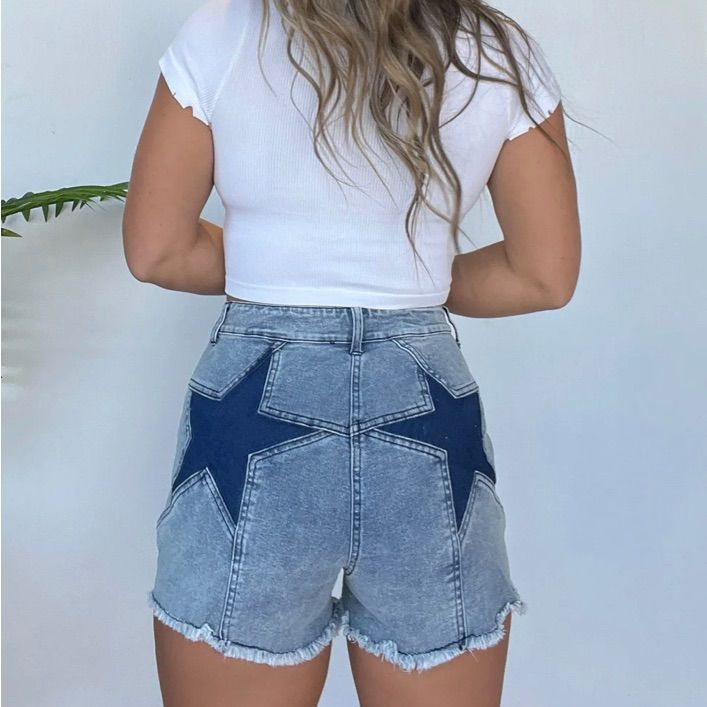 2025 년 봄과 여름 유럽과 미국의 대외 무역 하이 퀄리티 5 개 별 데님 반바지 핫 팬츠를 꿰매는 섹시한 여성 새로운스토어 가기