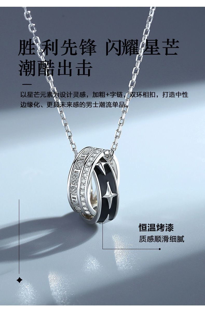 잉잉 스털링 실버 목걸이 남성 패션 브랜드 올매치 니치 보이즈 펜던트 빅토리 스타 컵 일본식 라이트 럭셔리 남성용 Yingque스토어 가기