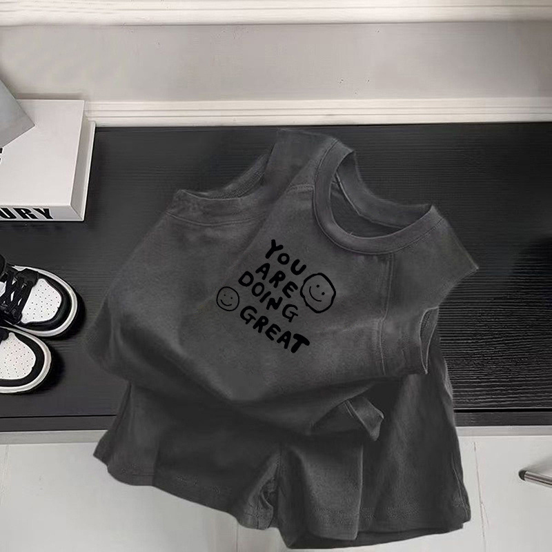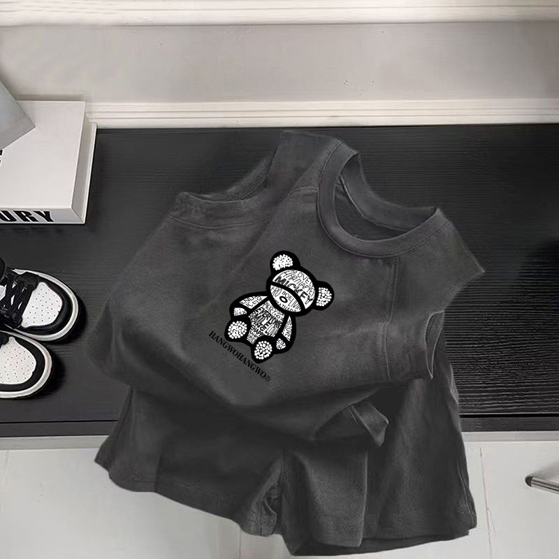 [1426 칭찬] 2025 년 여름 어린이 면 민소매 조끼 세트 소년 · 소녀 아기 외국인 가스 레저스토어 가기
