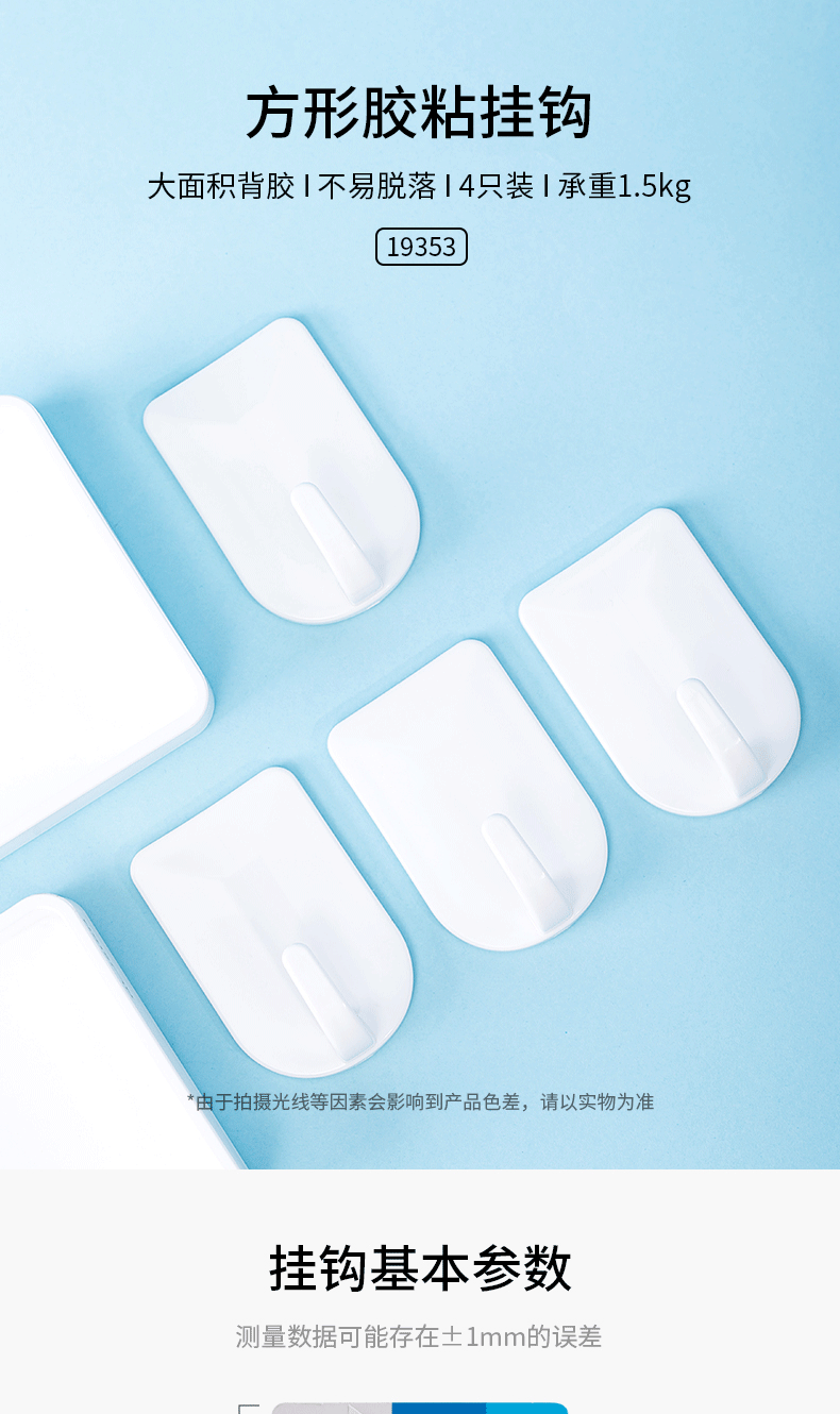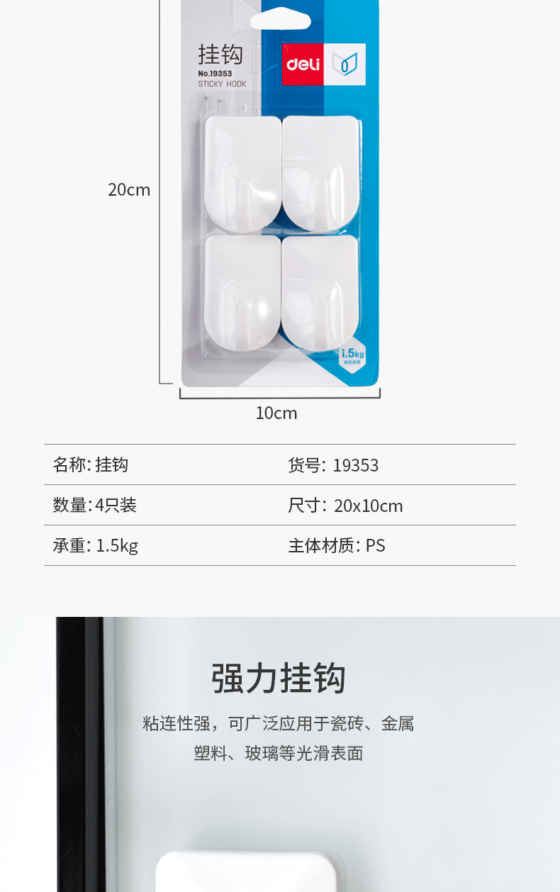 델리 19353 후크 강한 접착 벽 매달린 원활한 펀치없는 주방 도어 리어 후크 접착 후크