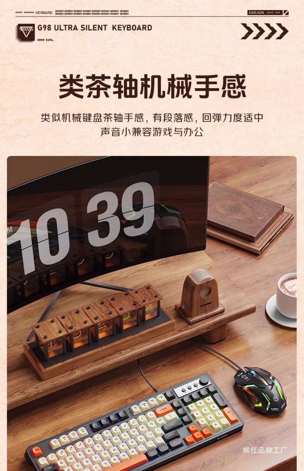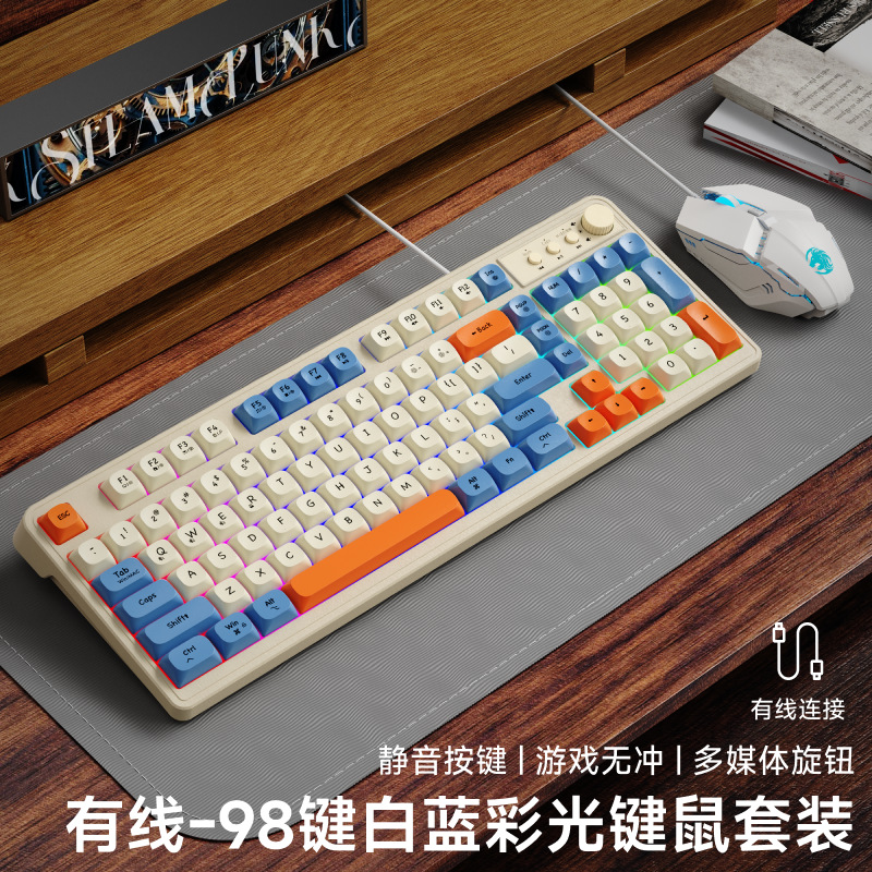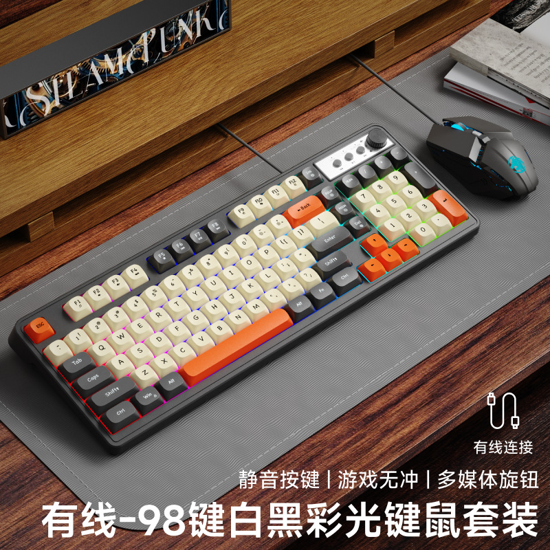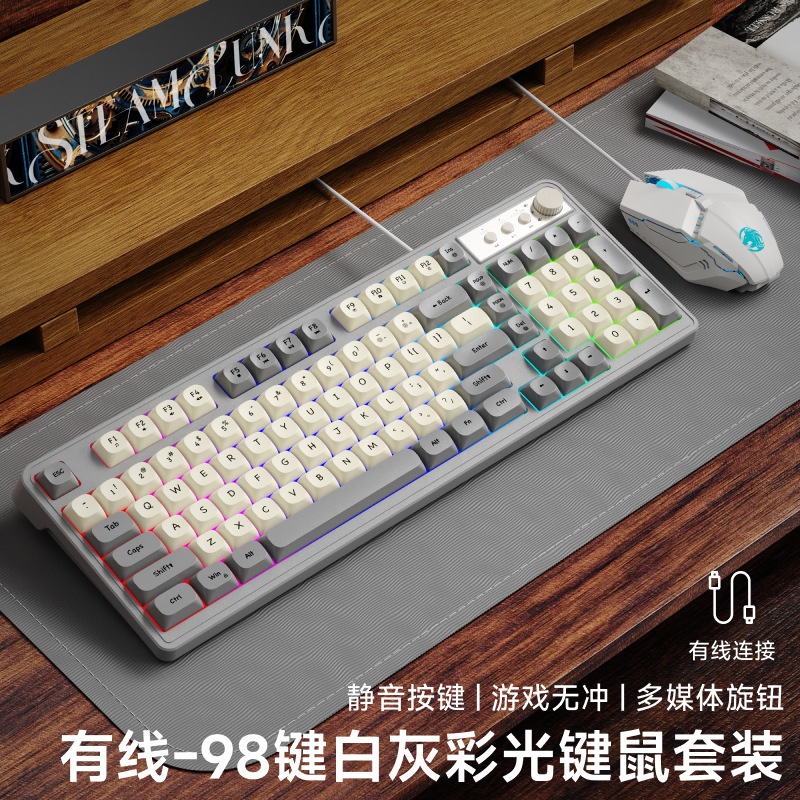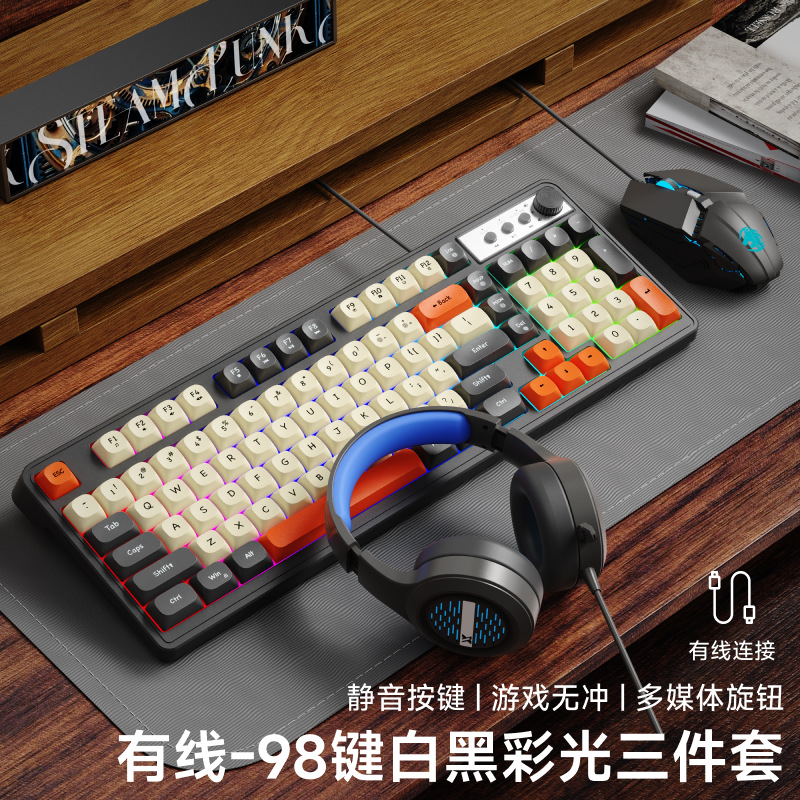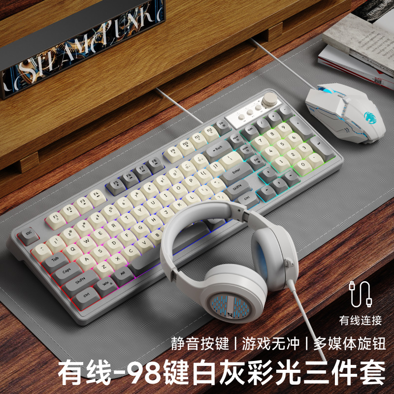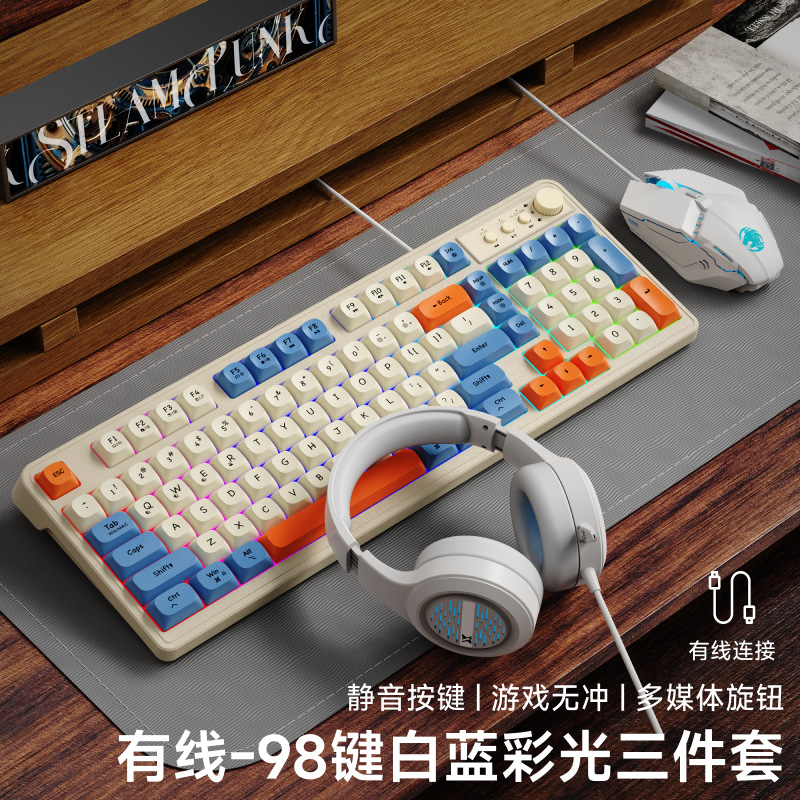 복고풍 기계 느낌 유선 키보드 및 마우스 음소거 유선 전자 스포츠 게임 새로운 헤드셋 3 피스 세트 백라이트