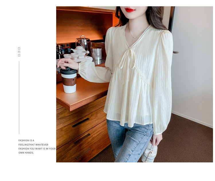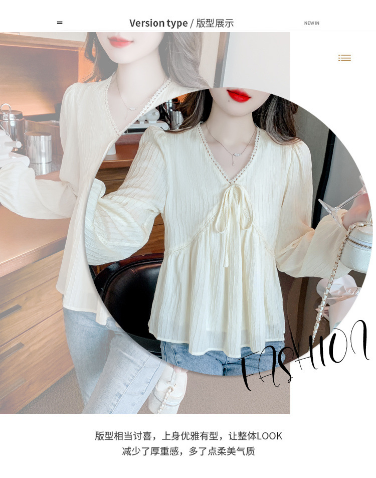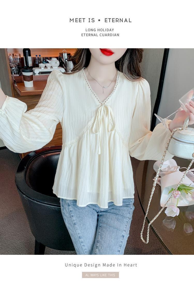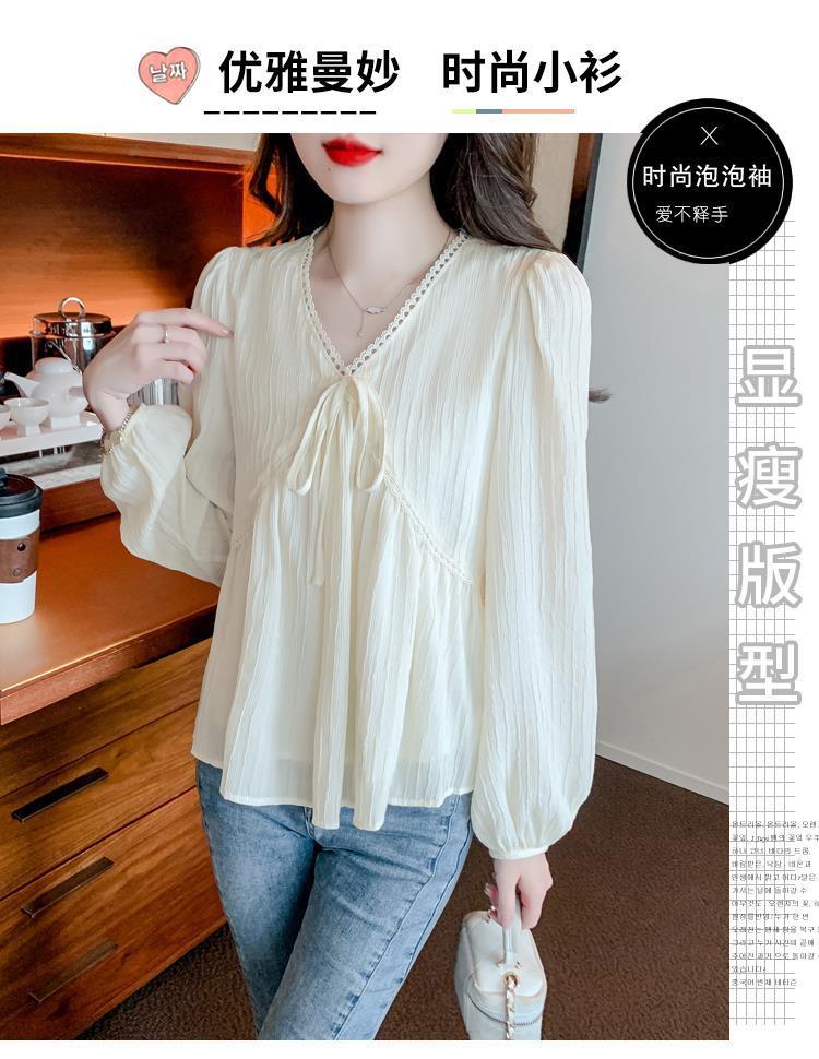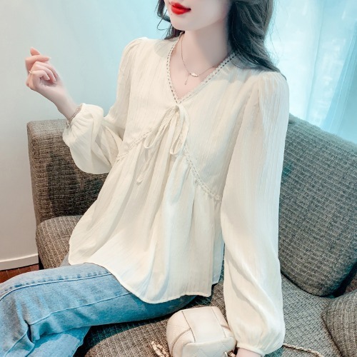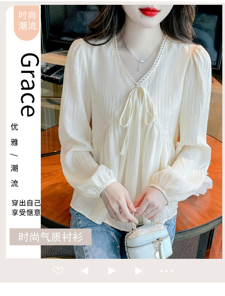 긴 소매 셔츠 여성의 봄 2025 새로운 여성의 세련된 작은 셔츠 배꼽이 외국 스타일 프랑스 우아한 이른 봄 탑