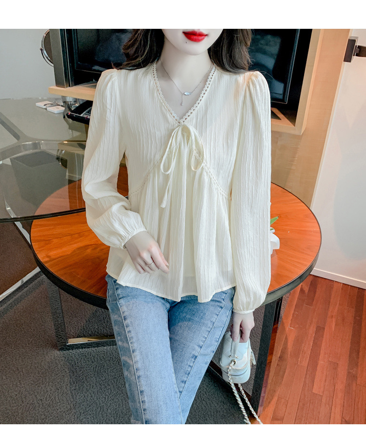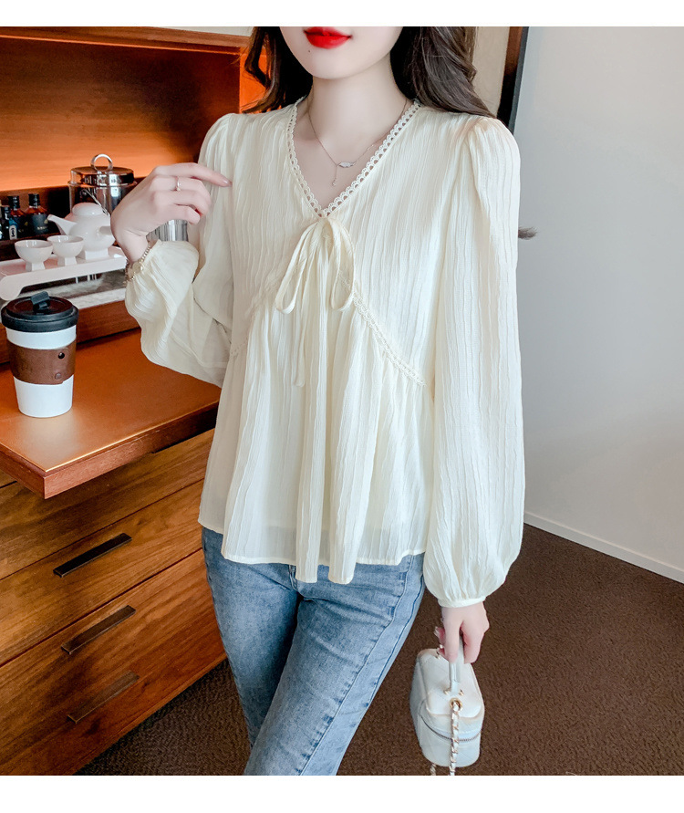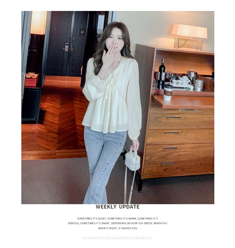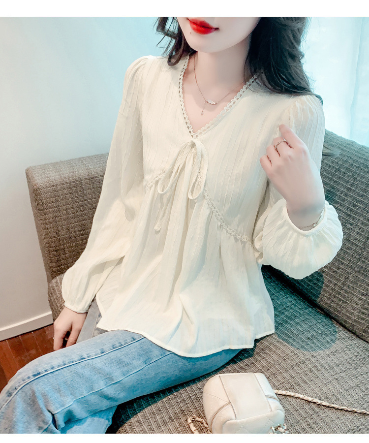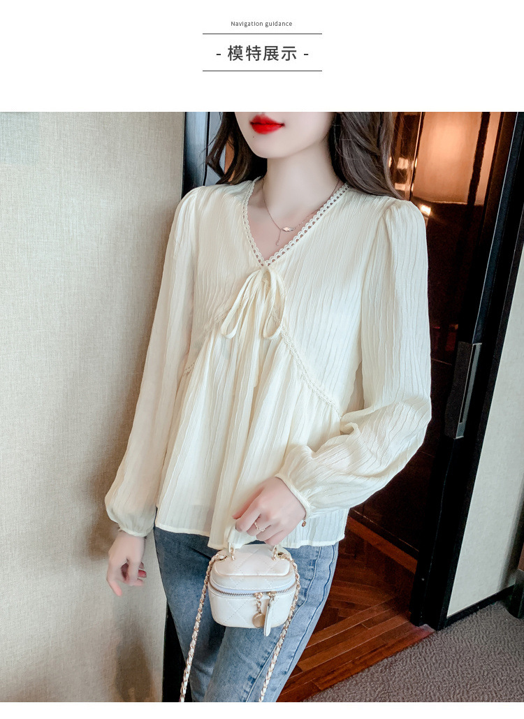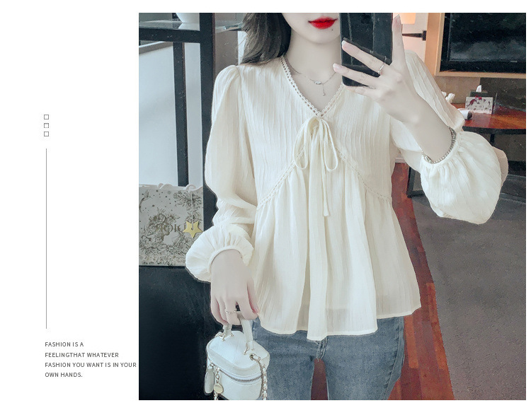 긴 소매 셔츠 여성의 봄 2025 새로운 여성의 세련된 작은 셔츠 배꼽이 외국 스타일 프랑스 우아한 이른 봄 탑