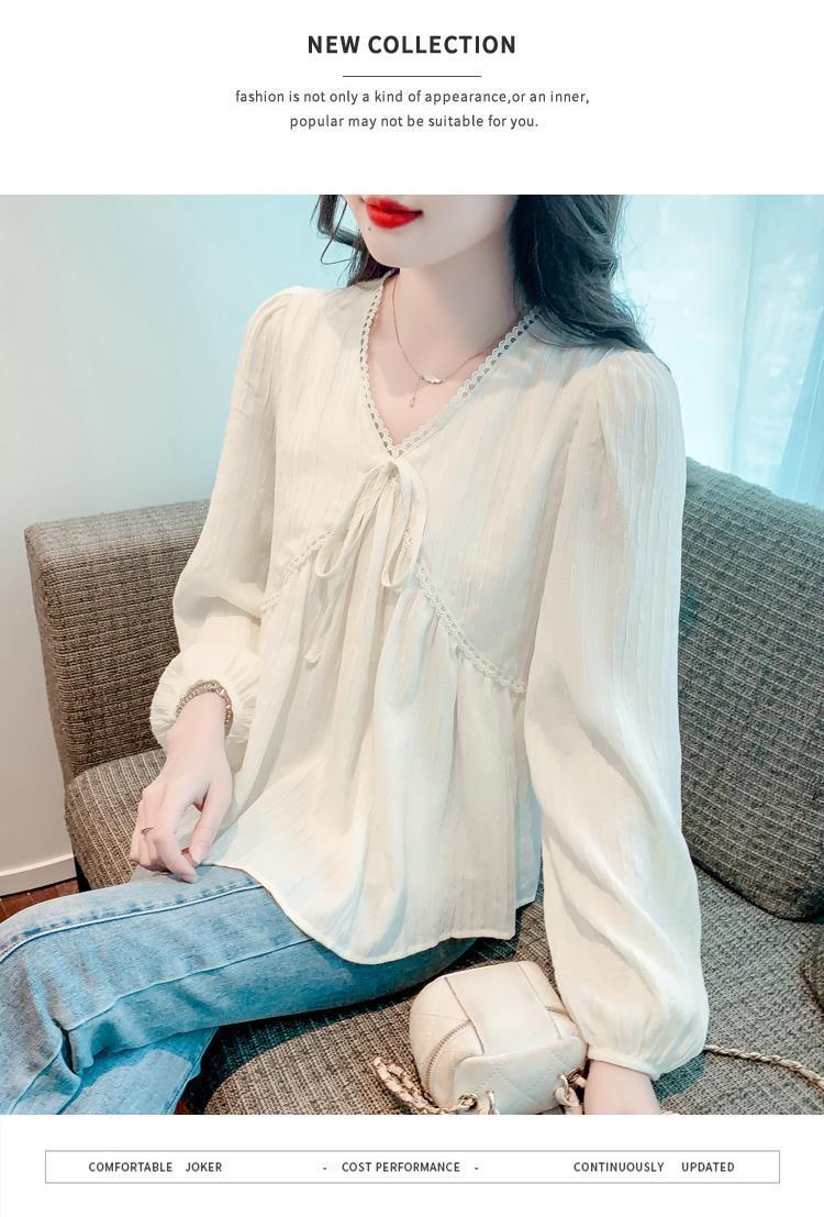 긴 소매 셔츠 여성의 봄 2025 새로운 여성의 세련된 작은 셔츠 배꼽이 외국 스타일 프랑스 우아한 이른 봄 탑스토어 가기