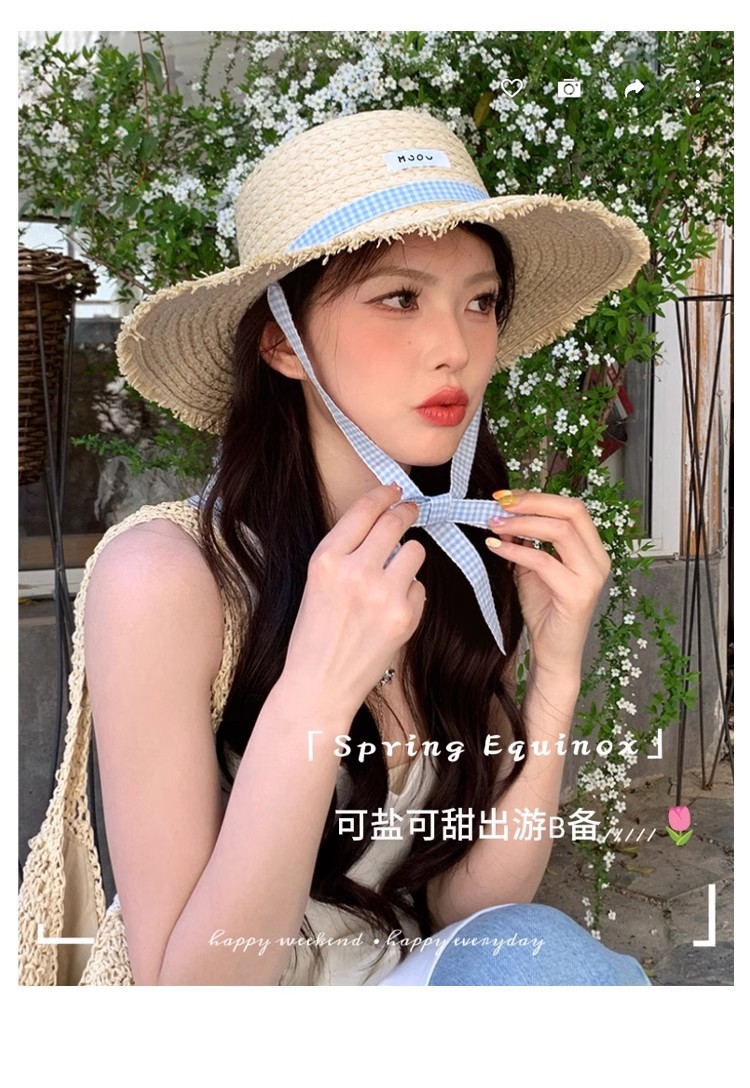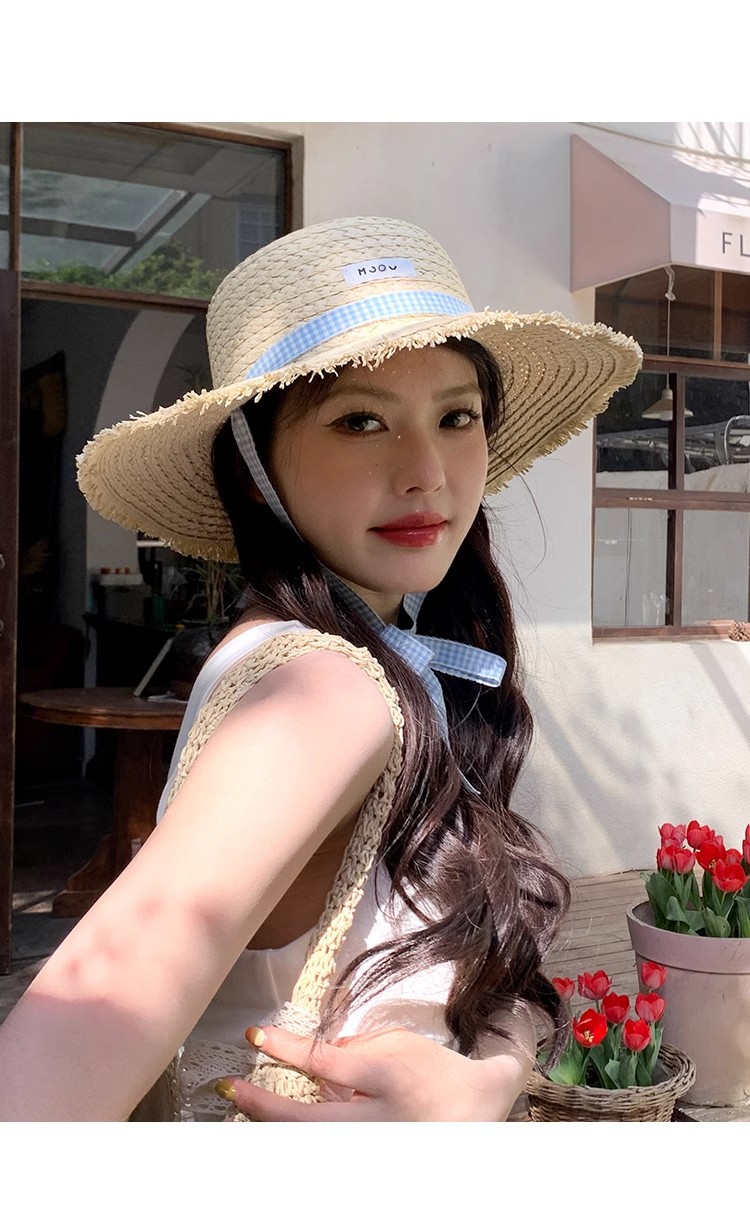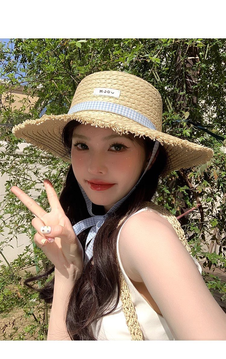 프랑스 스타일 플랫 탑 짠 라피트 밀짚 모자 여성의 여름 큰 브림 해변 휴가 햇빛 선크림 비치 밀짚 모자스토어 가기