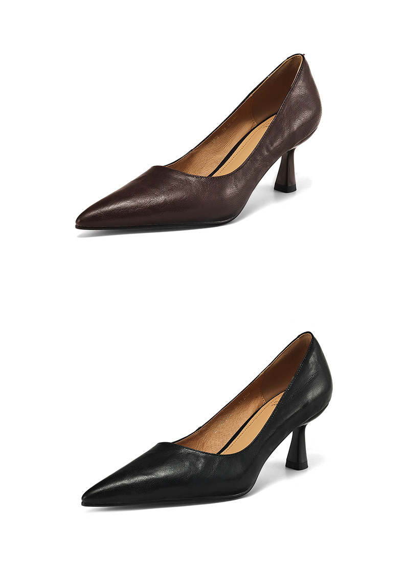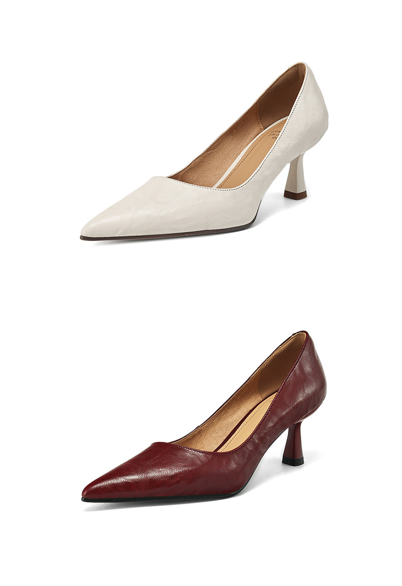전체 피부 내부와 외부! 양가죽 하이힐 여성 2025 봄 새로운 프랑스 통근 우아한 뾰족한 스틸레토 힐 신발
