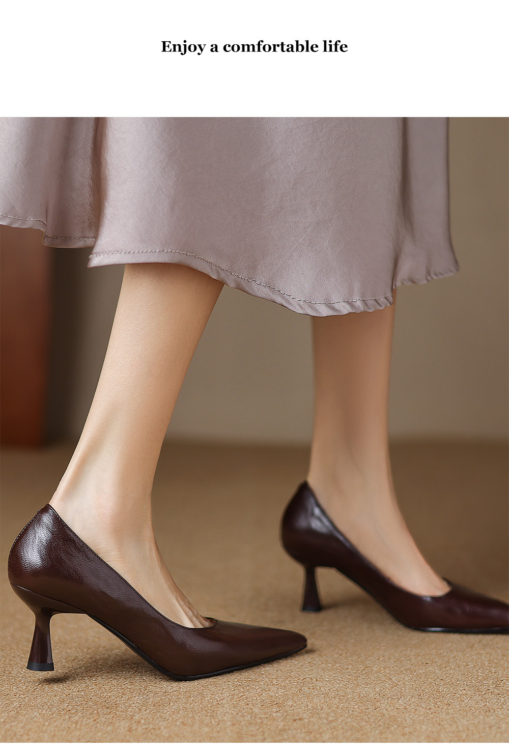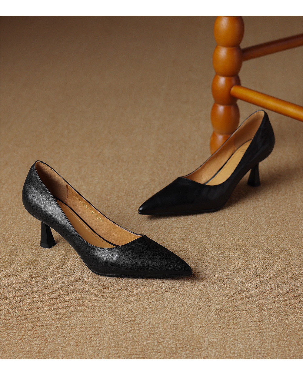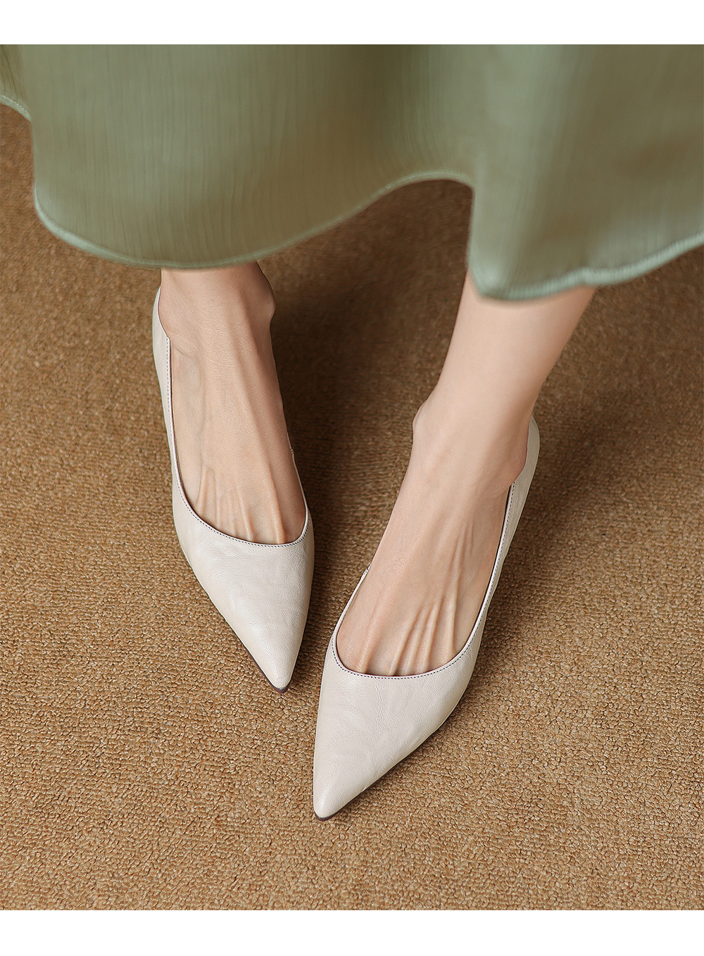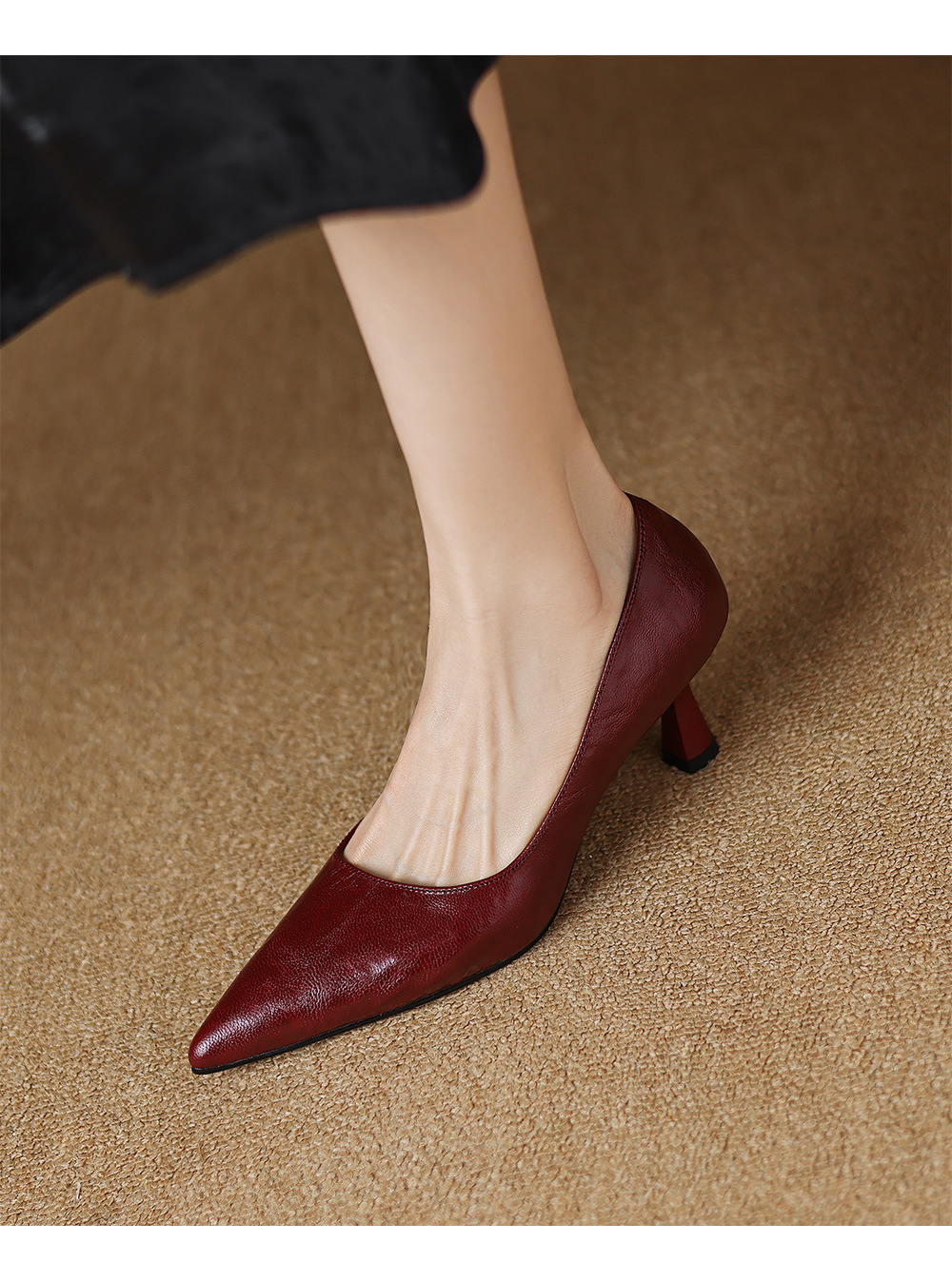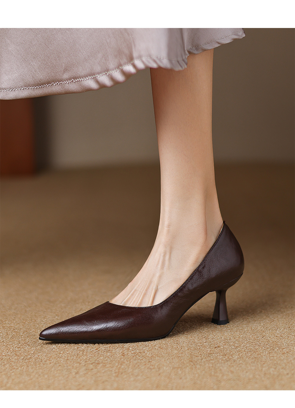 전체 피부 내부와 외부! 양가죽 하이힐 여성 2025 봄 새로운 프랑스 통근 우아한 뾰족한 스틸레토 힐 신발스토어 가기