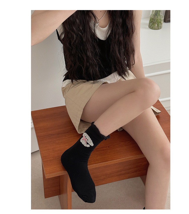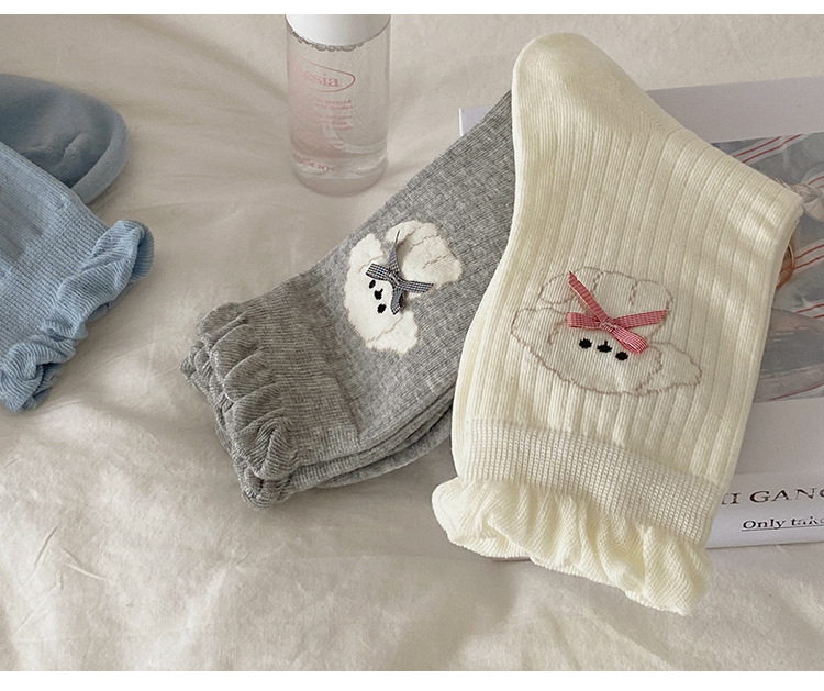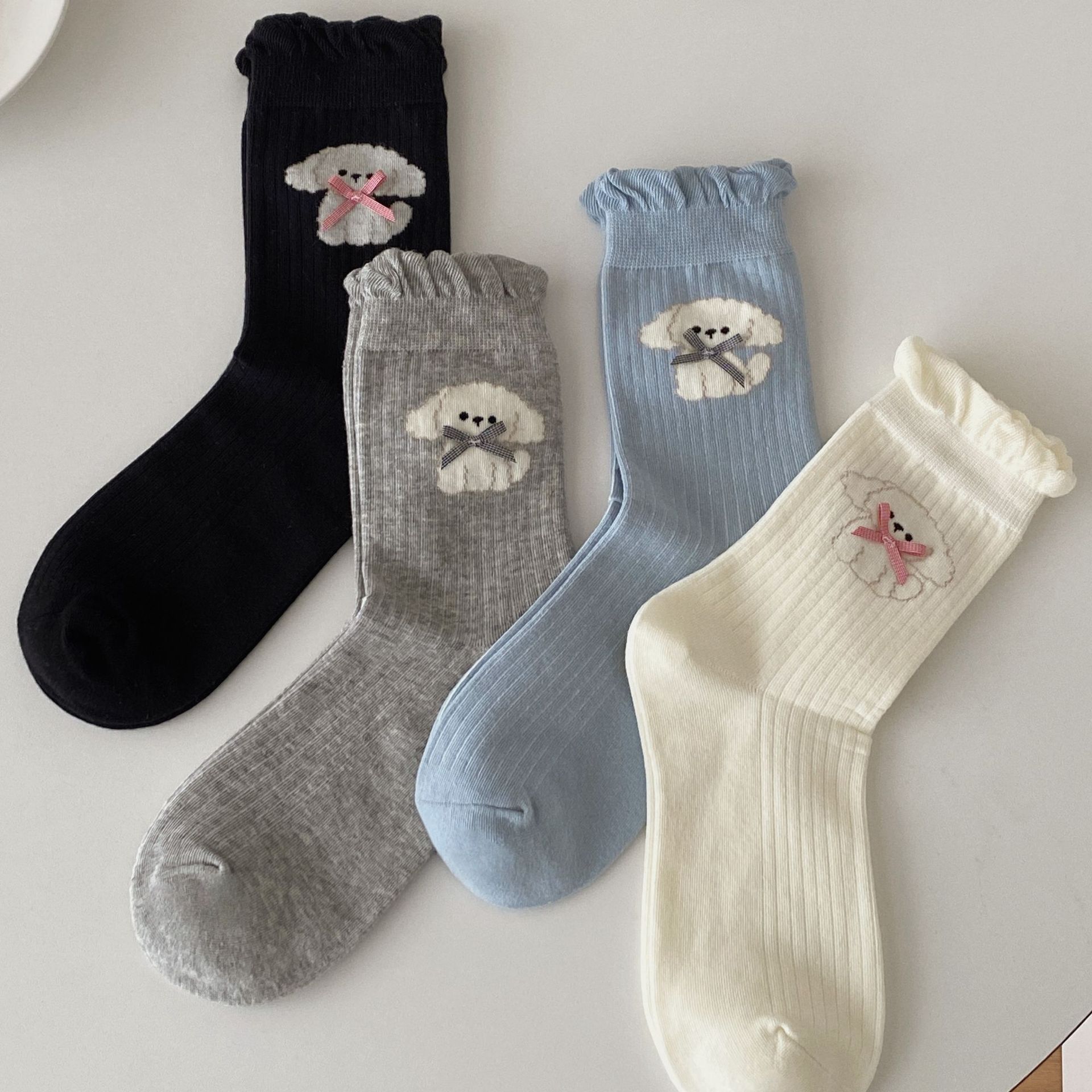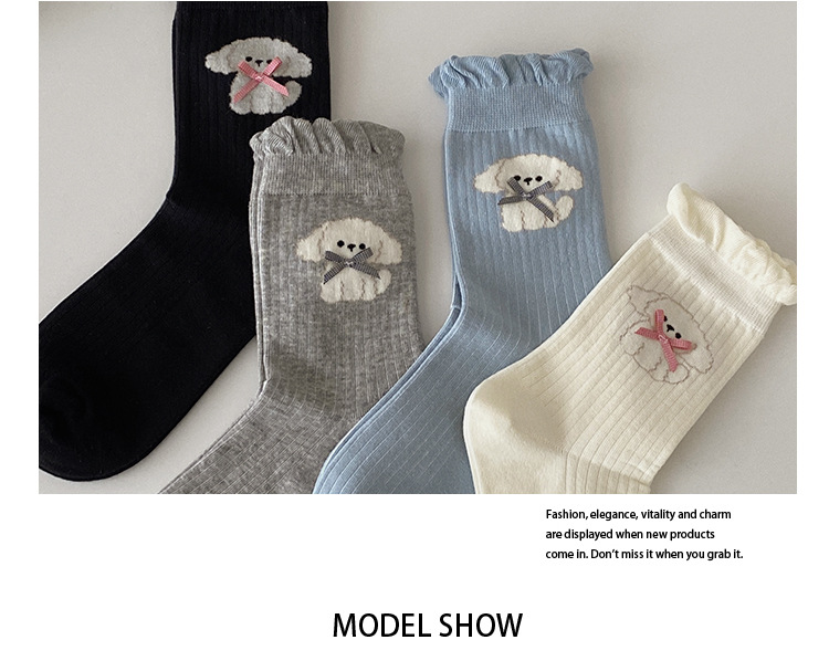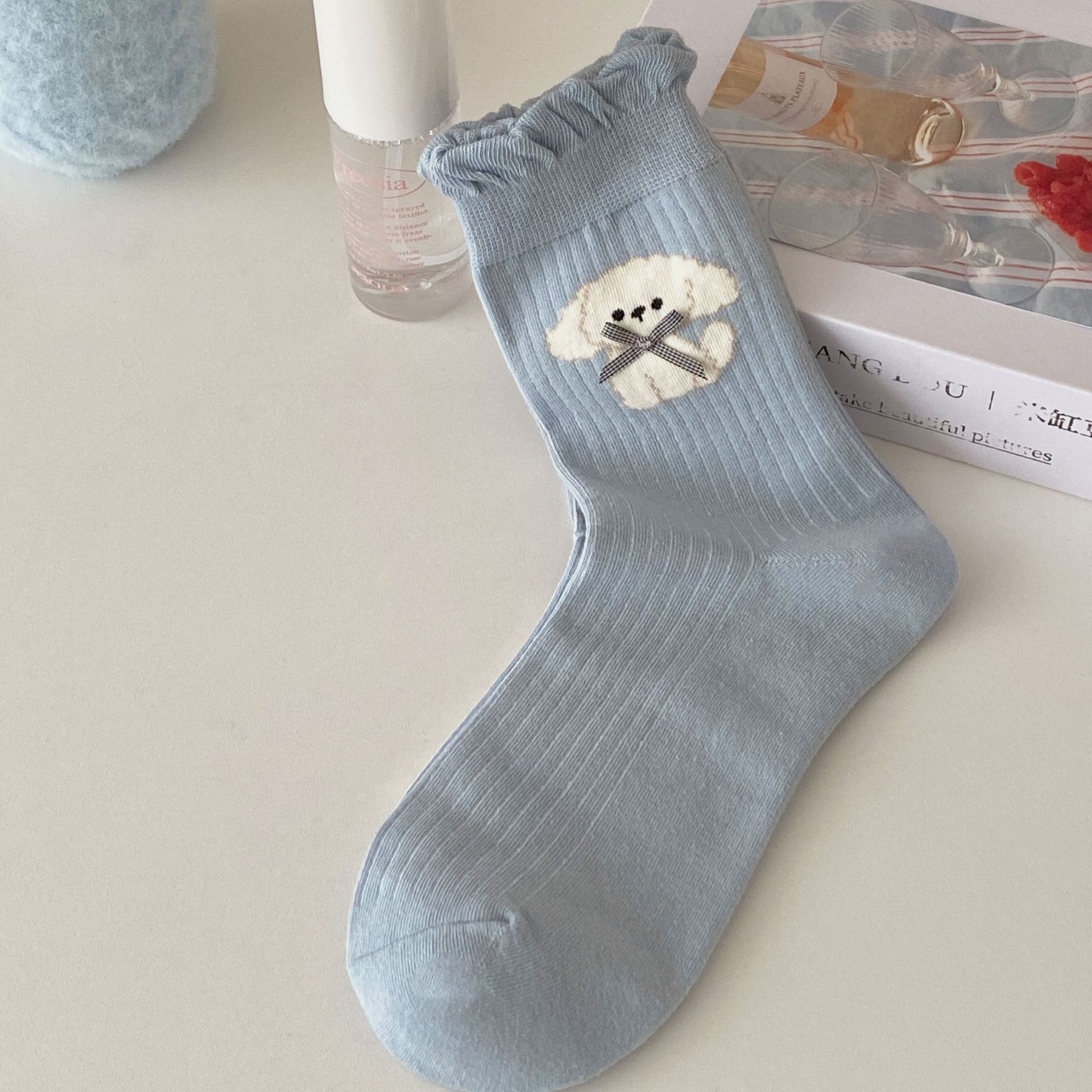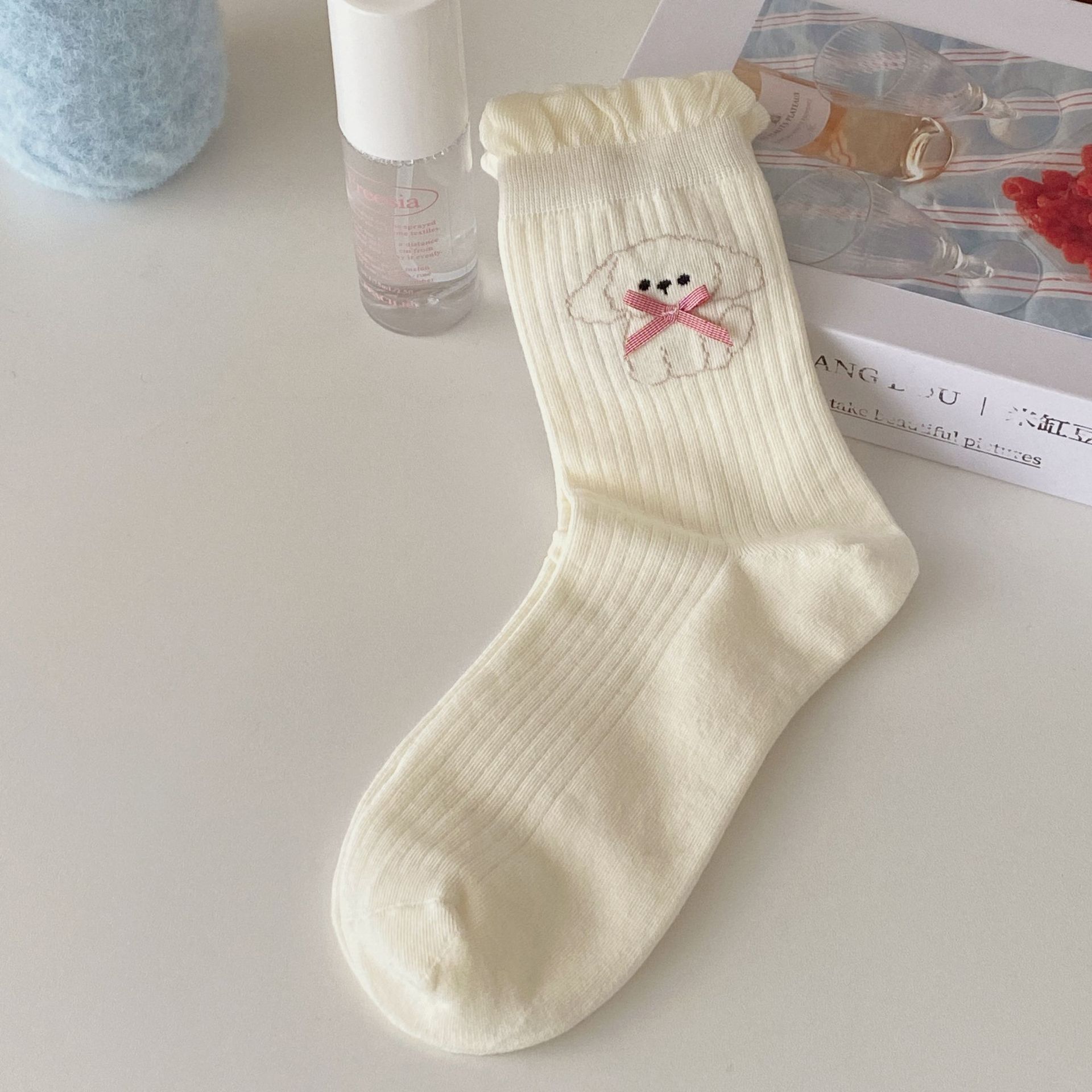 일본과 한국 스타일 레이스 강아지 양말 여성 봄과 여름 넥타이 활 스태킹 양말 학술 스타일 스타킹 여성스토어 가기