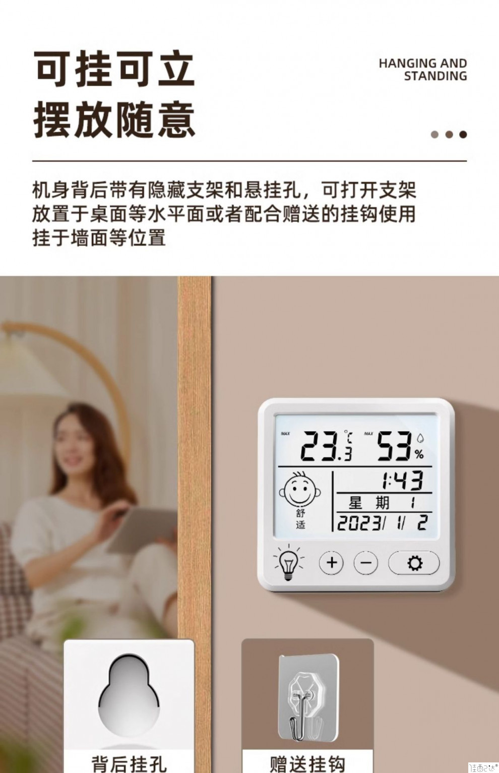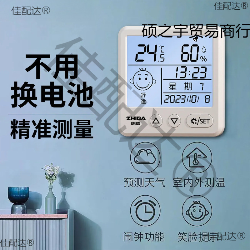 정밀 디지털 온도계 데스크탑 전자 온도 및 습도 측정기 알람 시계 모성 및 유아 가정용 벽 장착 온도 및 습도 실내 및 실외스토어 가기