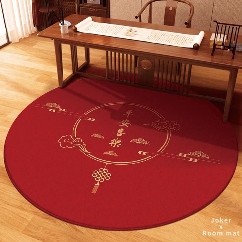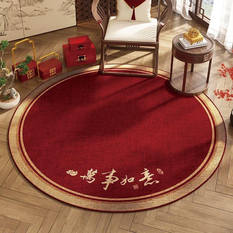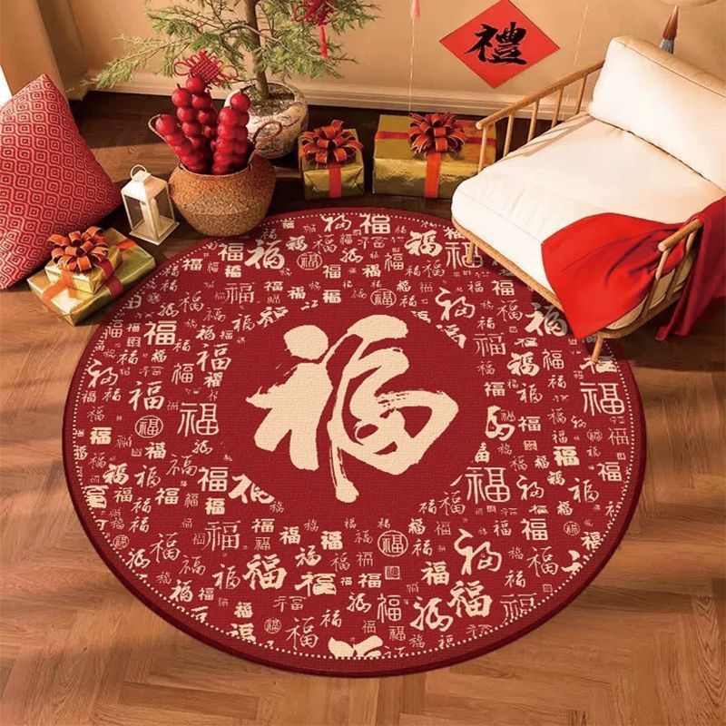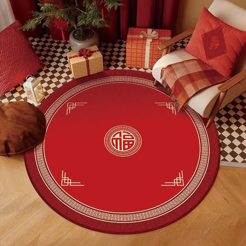 구정 카펫 크리스탈 벨벳 문 축제 라운드 매트 중국 스타일 레드 거실 침실 홈 매트
