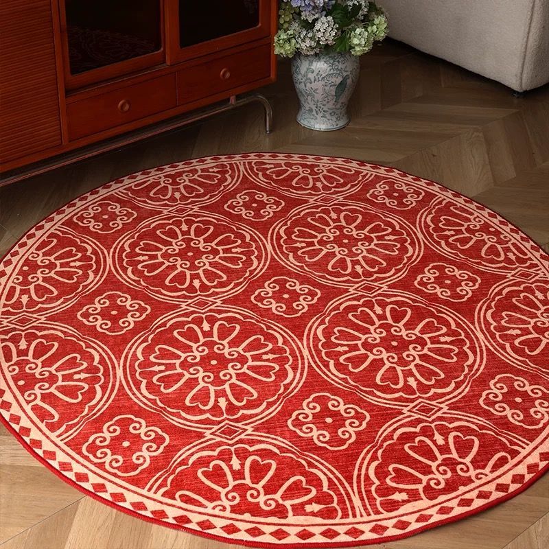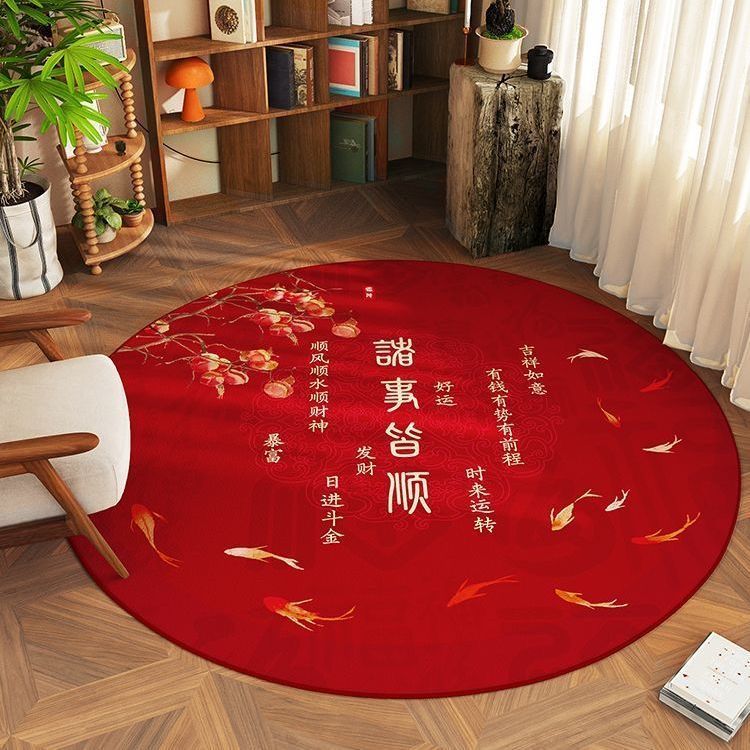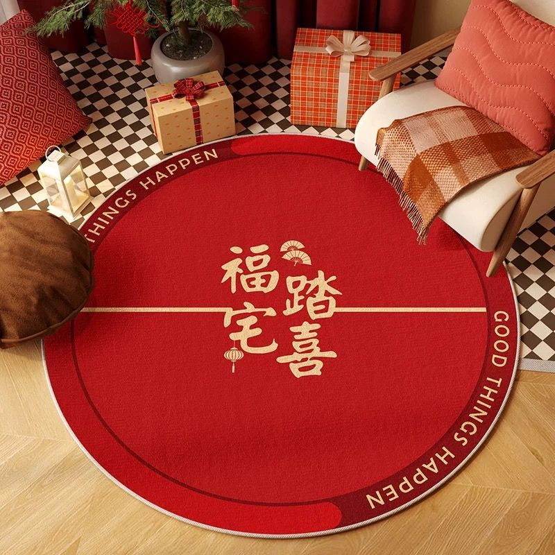 구정 카펫 크리스탈 벨벳 문 축제 라운드 매트 중국 스타일 레드 거실 침실 홈 매트스토어 가기