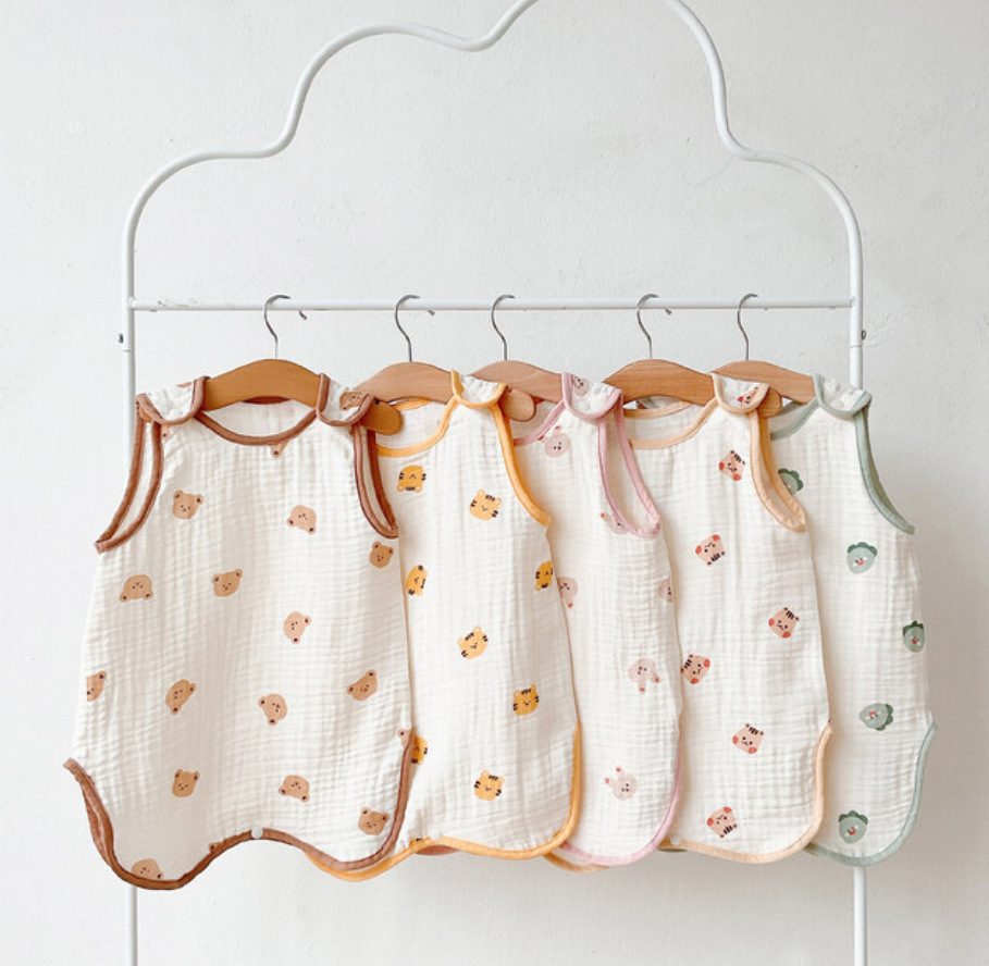 Ins 한국 인쇄 동물 아기 여름 얇은 슬리핑 백 신생아 킥 방지 민소매 거즈 조끼스토어 가기