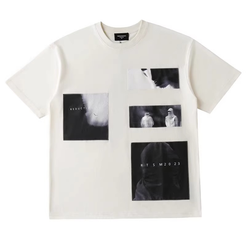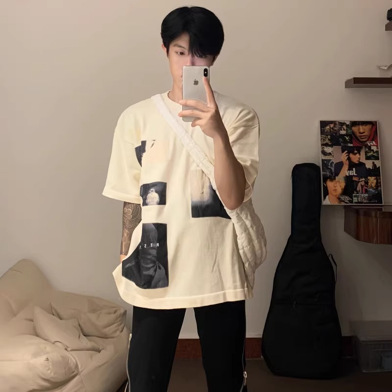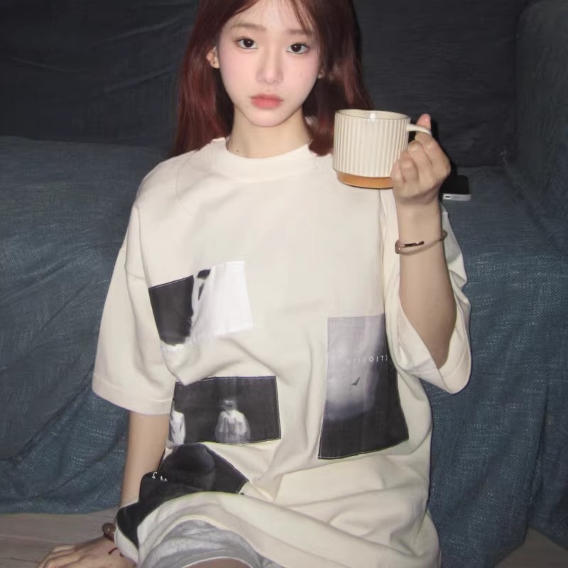Rtimfd 가면 문자 알파벳 천 반팔 틈새 인쇄 인기있는 느슨한 크루 넥 헤비 하이 스트리트 Bottoming T스토어 가기