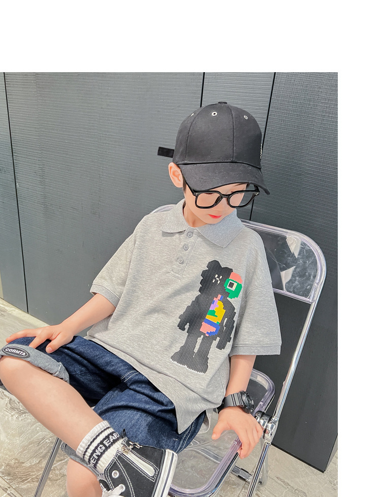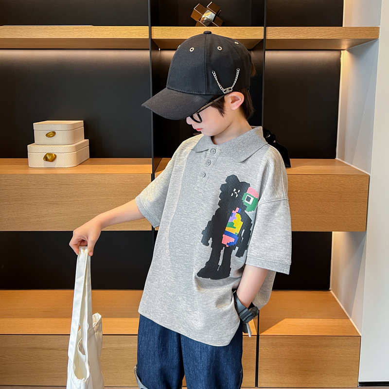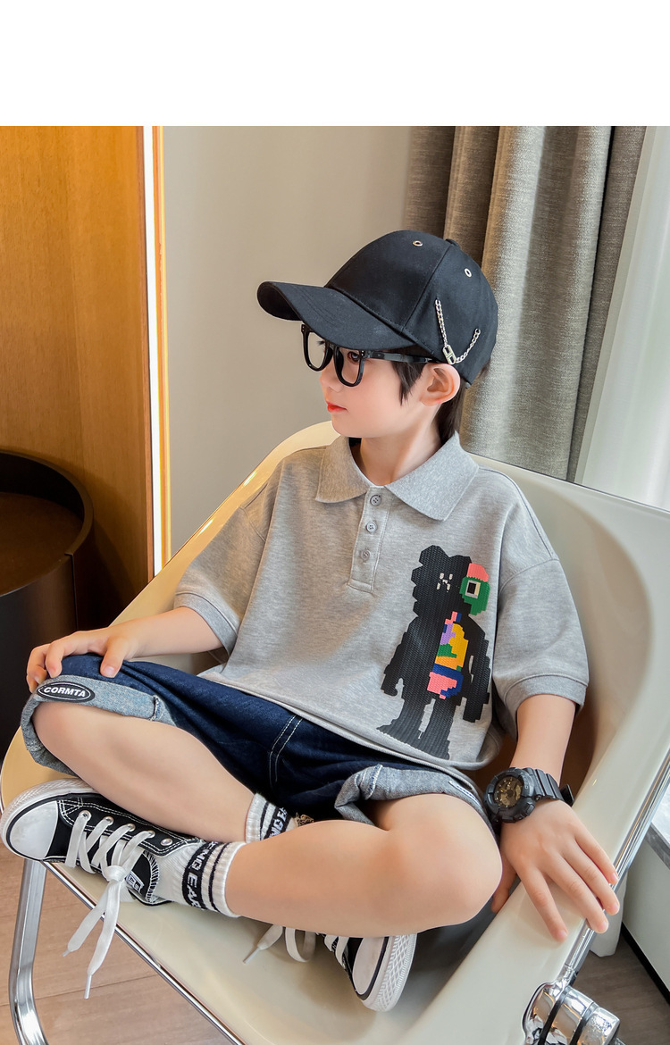 아동복 소년 반팔 티셔츠 폴로 셔츠 2025 새로운 여름 원피스 어린이 소년 스타일 반소매 티셔츠 탑스토어 가기