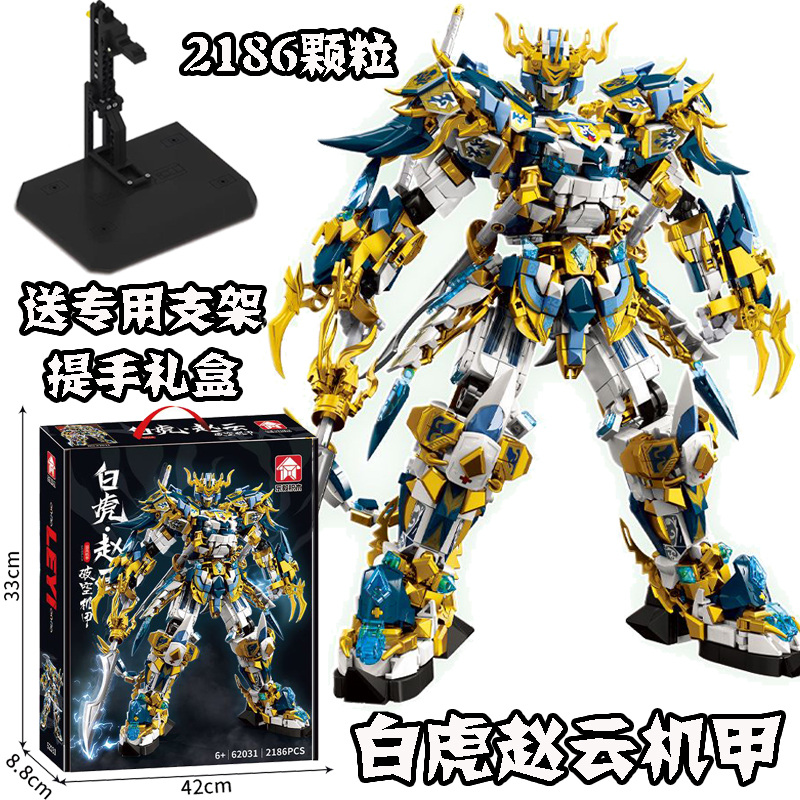 새로운 2025 새로운 조립 건물 블록 냉동 Guan Yu Zhao Yun 모델 로봇 메카 소년 장난감 선물스토어 가기