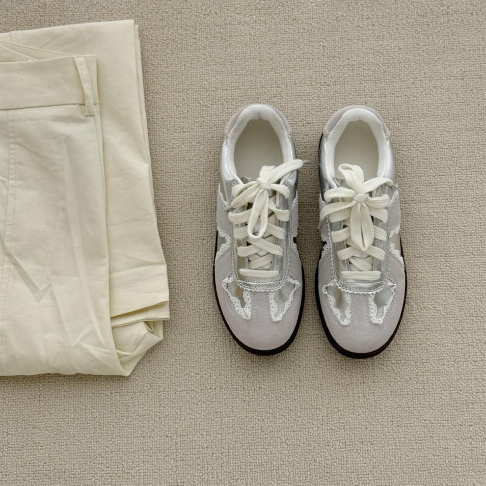 이제 한국 동대문 구매 25 봄 신음 블로거 캐주얼 실버 레이스 업 쇠고기 힘줄 밑창 독일 훈련 신발 신발