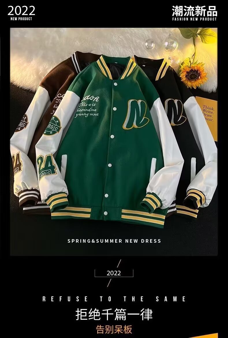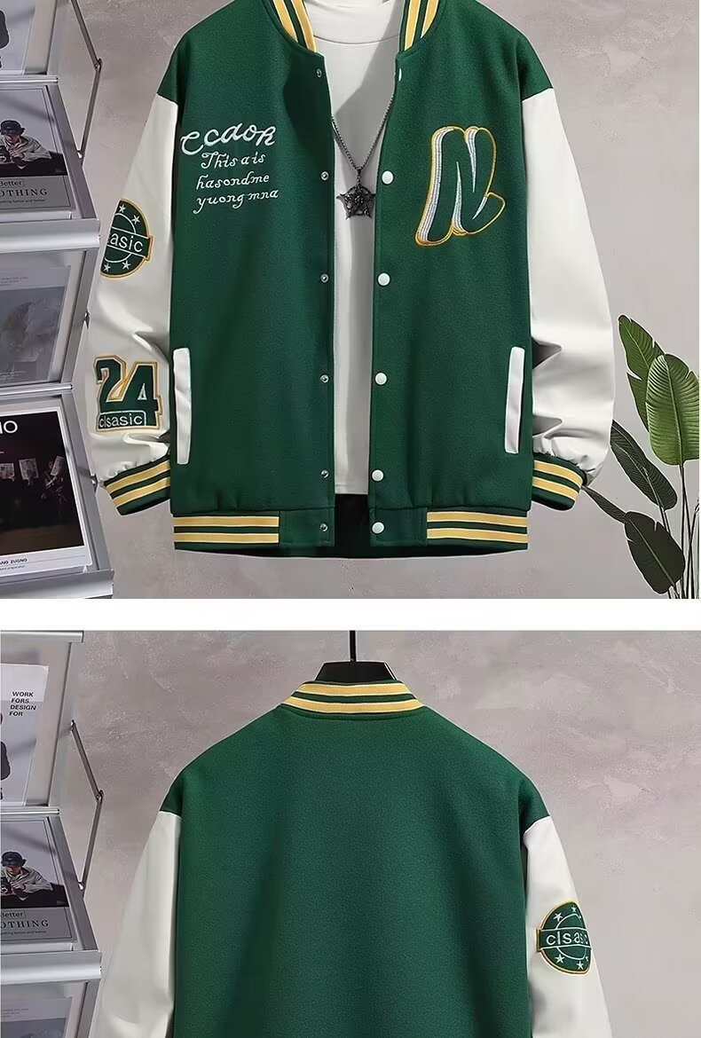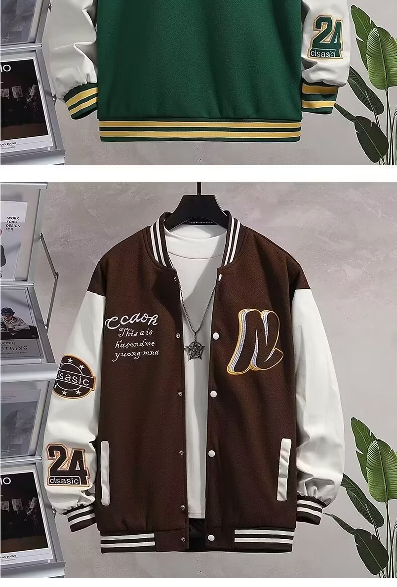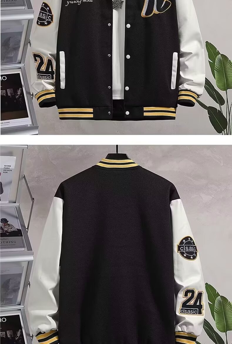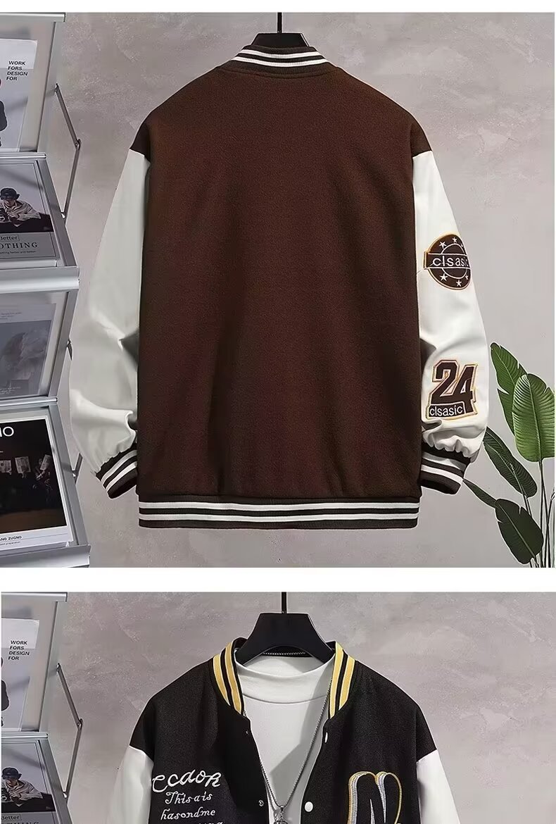 트렌디 한 브랜드 자켓 남자 2024 봄과 가을 새 커플 의류 느슨한 야구 세트 미국 패션 자수 가죽 자켓스토어 가기