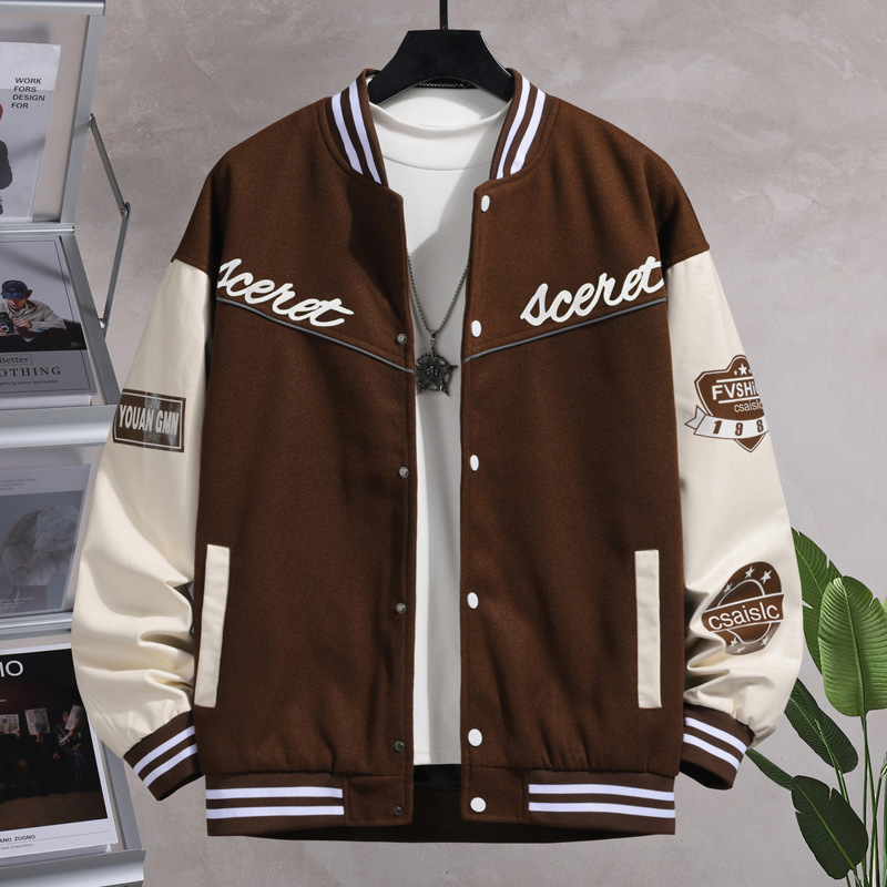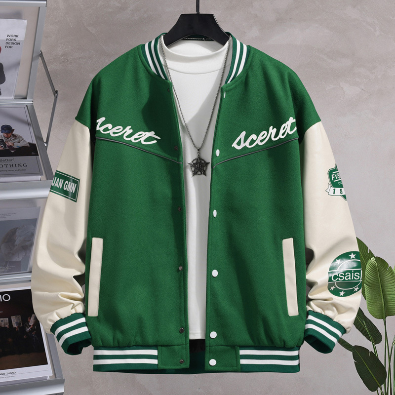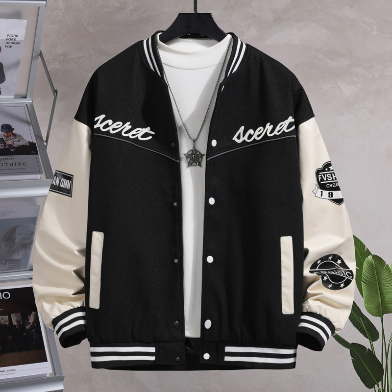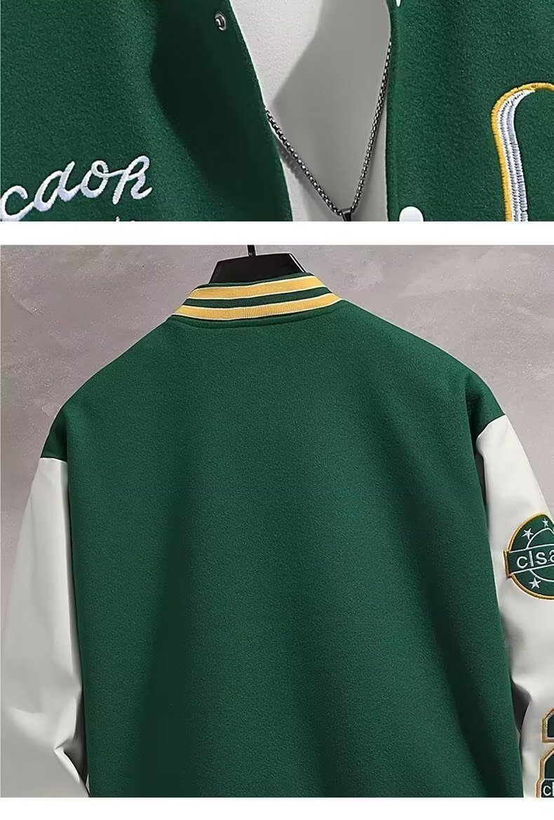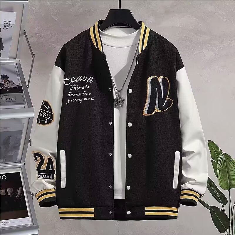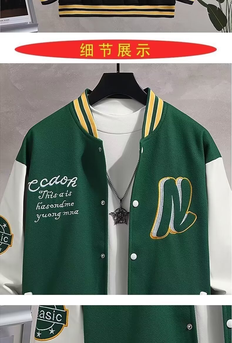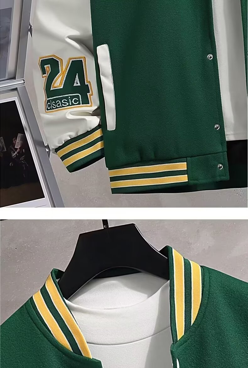 트렌디 한 브랜드 자켓 남자 2024 봄과 가을 새 커플 의류 느슨한 야구 세트 미국 패션 자수 가죽 자켓스토어 가기