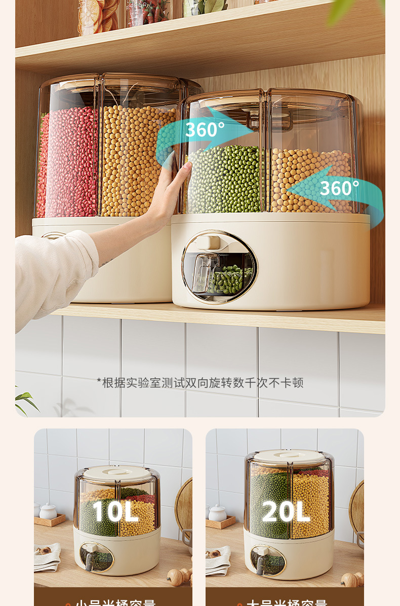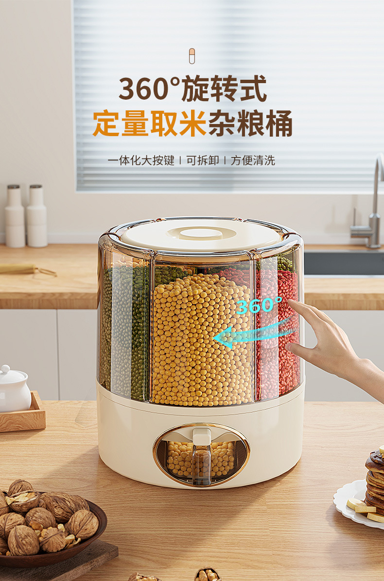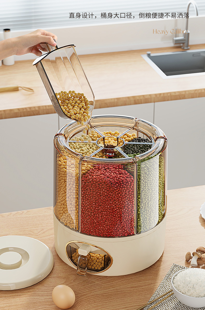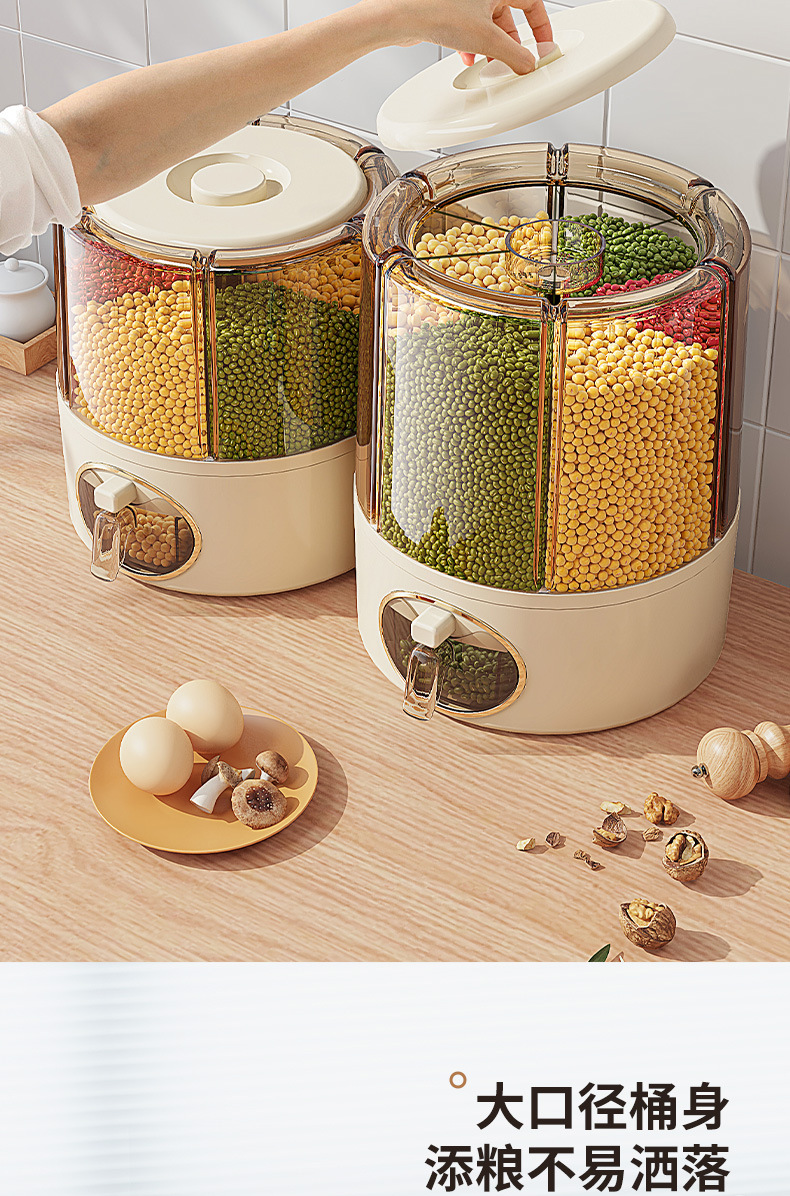 곡물 저장 쌀 양동이 밀봉 된 가정용 방습 저장 상자 분류 구획 회전 저장 통