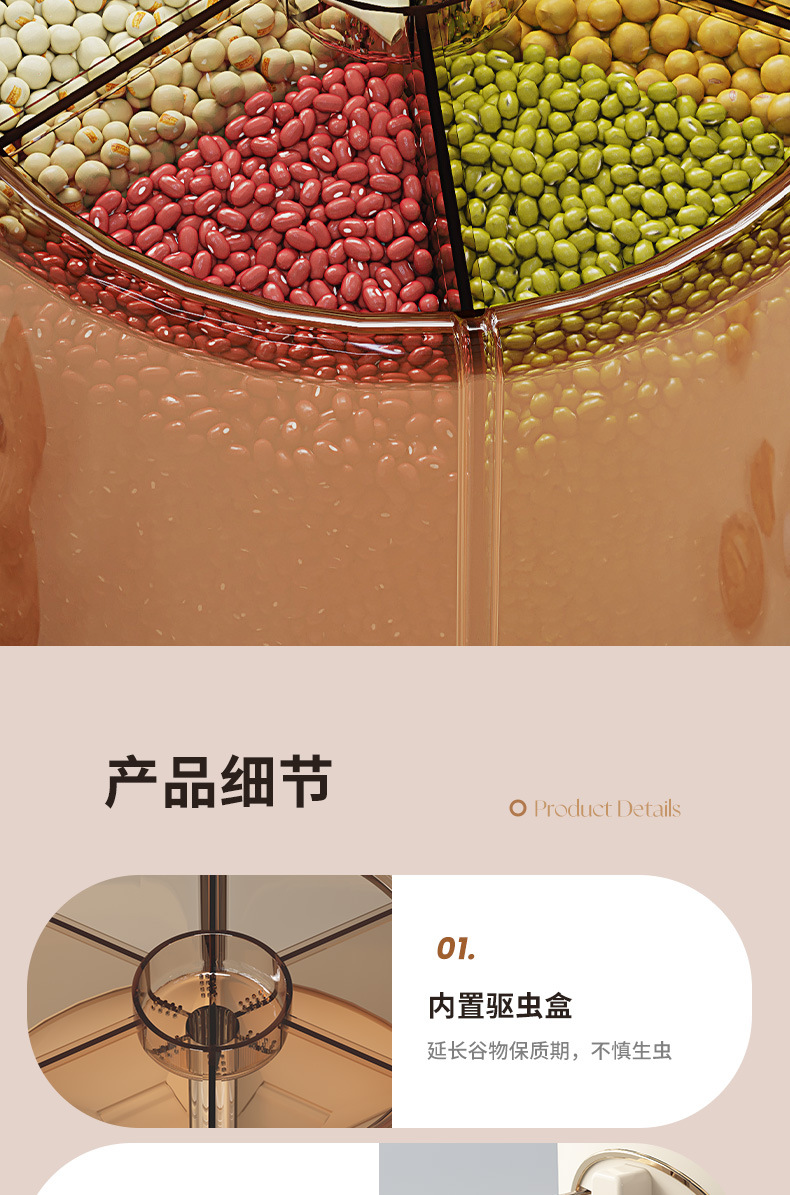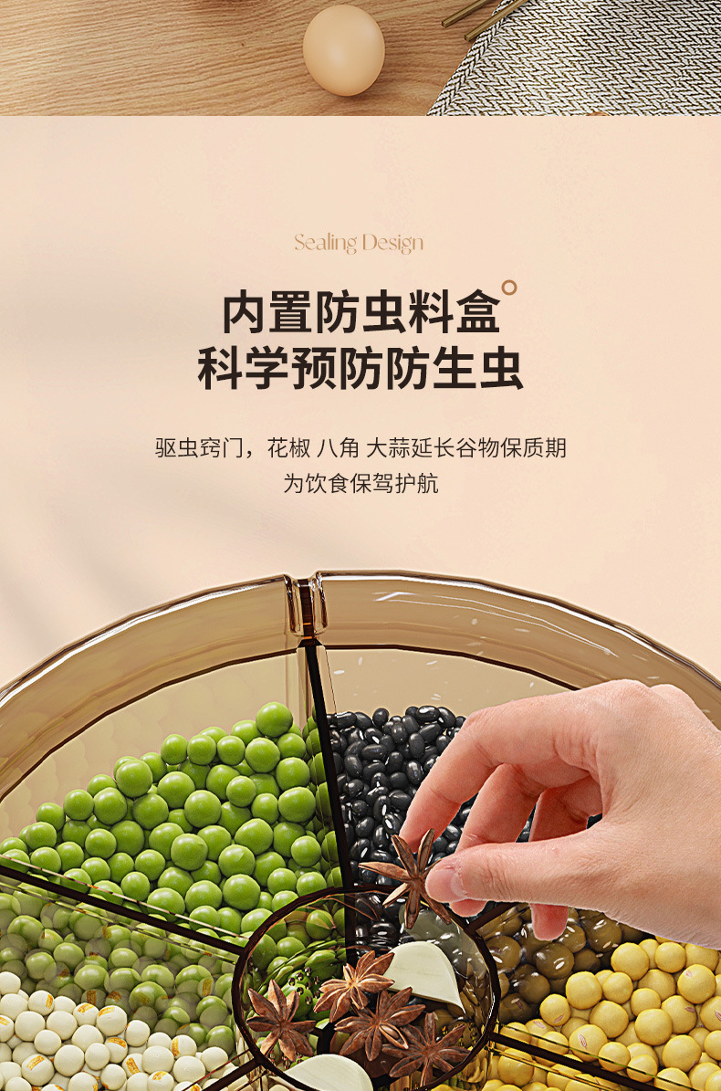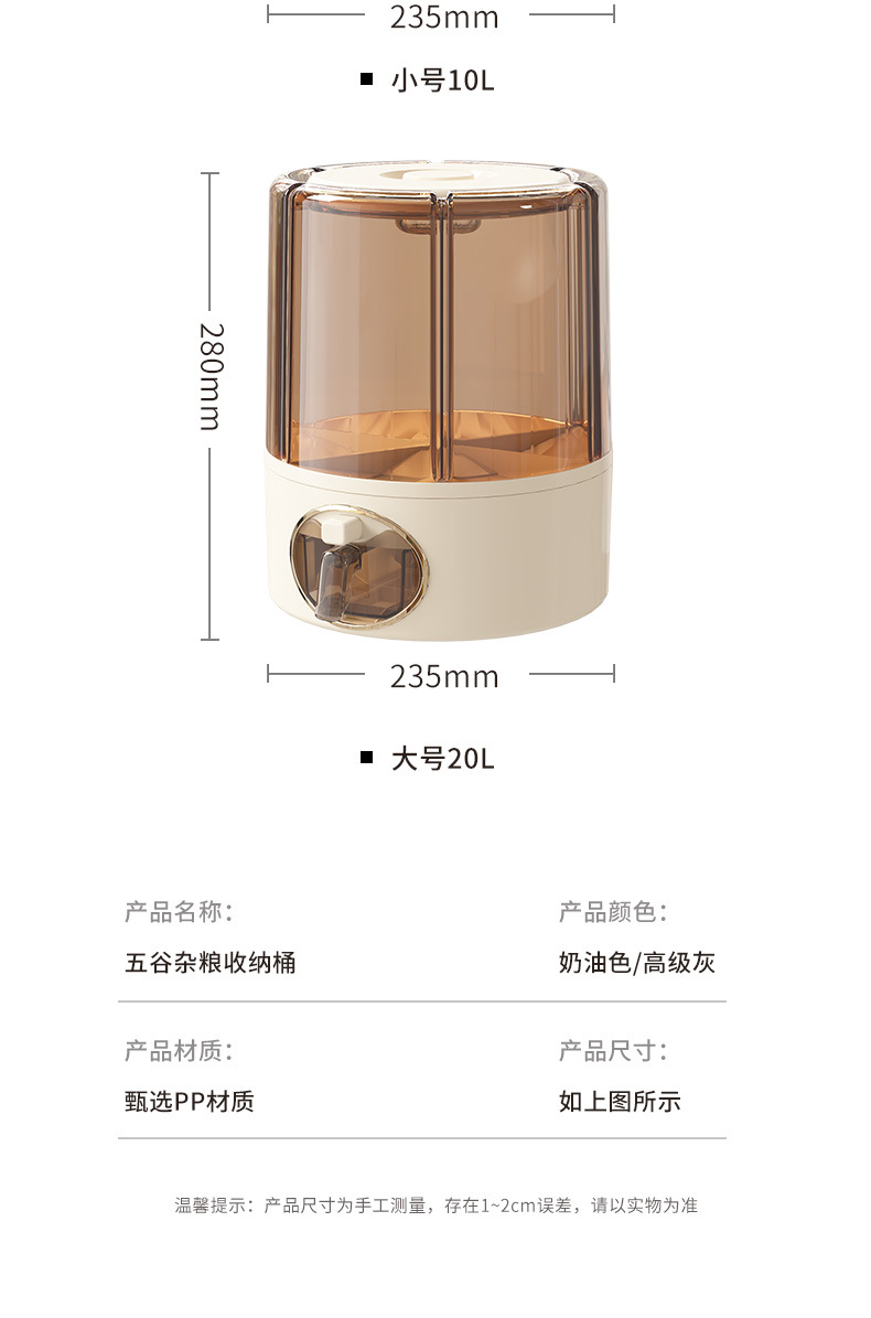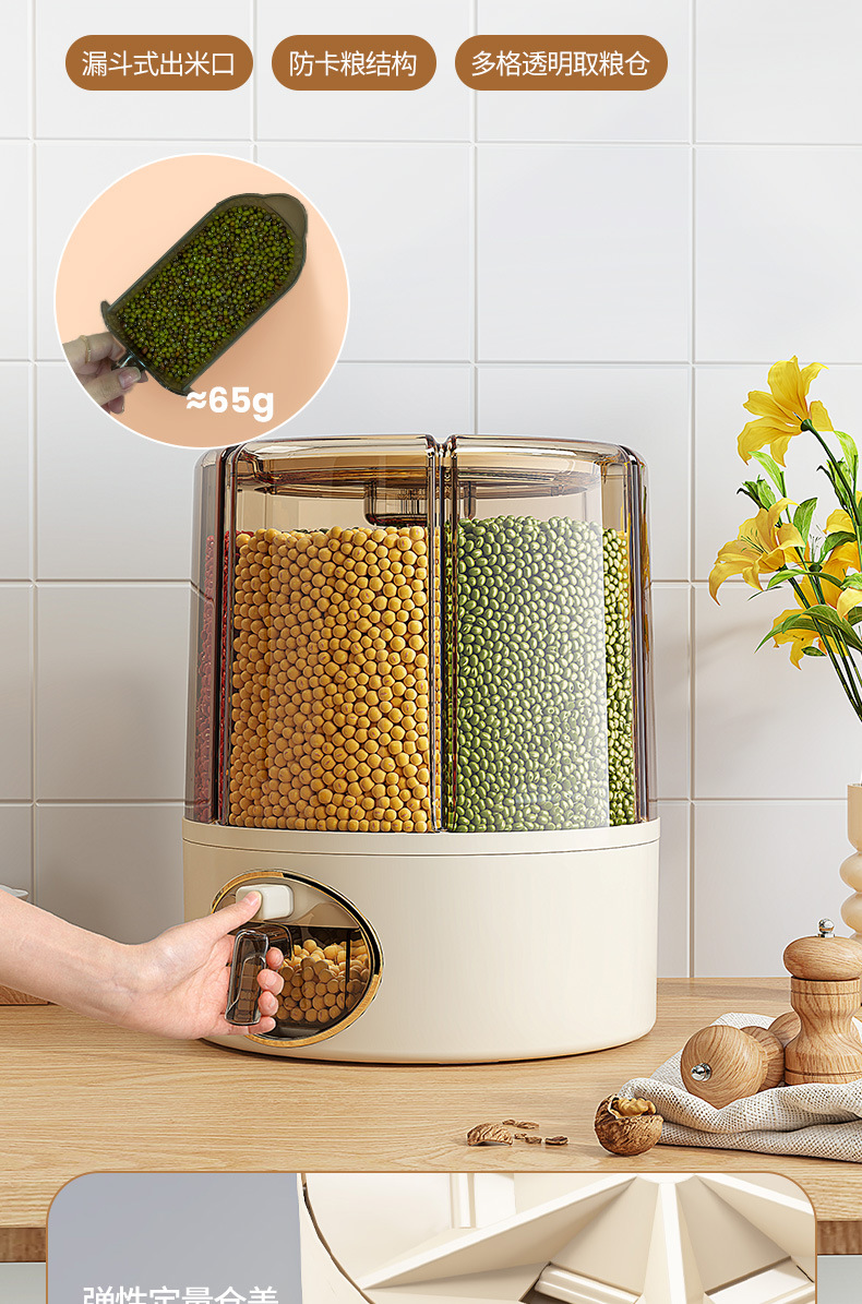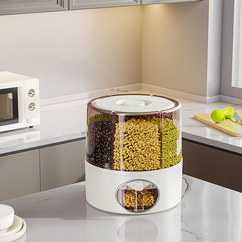 곡물 저장 쌀 양동이 밀봉 된 가정용 방습 저장 상자 분류 구획 회전 저장 통