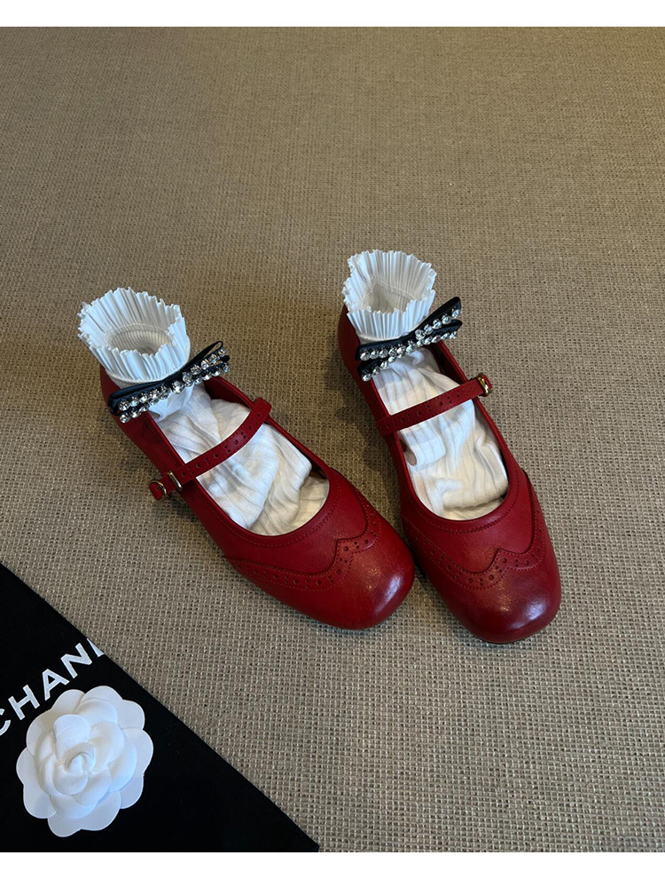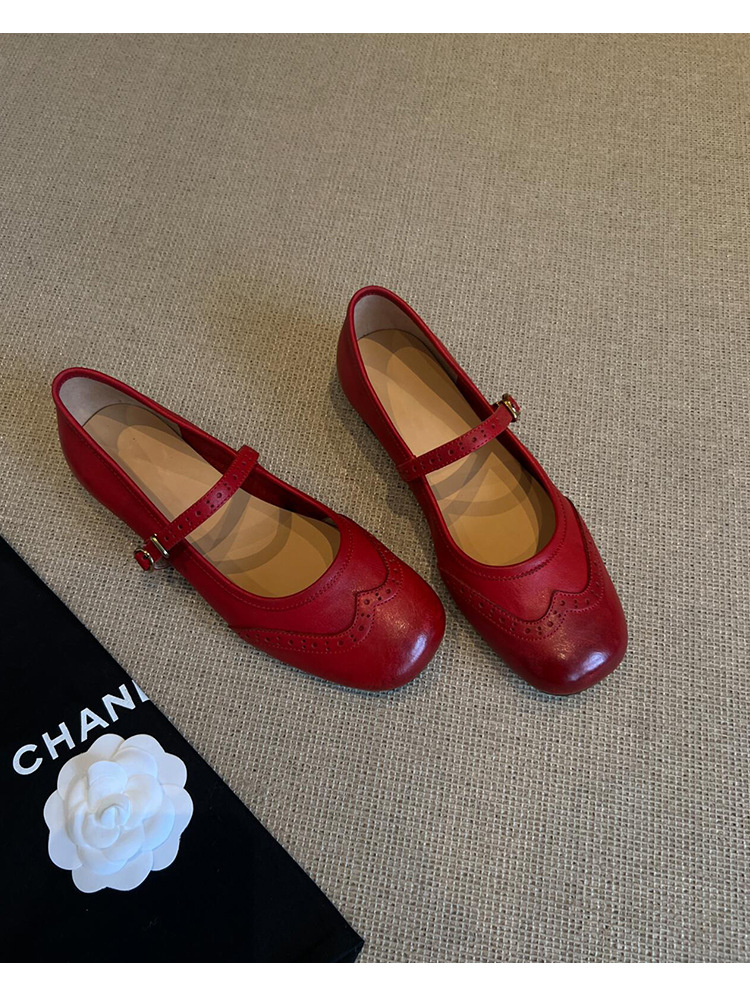 레트로 플랫 작은 가죽 신발 낮은 입 광장 발가락 메리 제인 신발 2025 새로운 스타일 레드 작은 싱글 신발스토어 가기