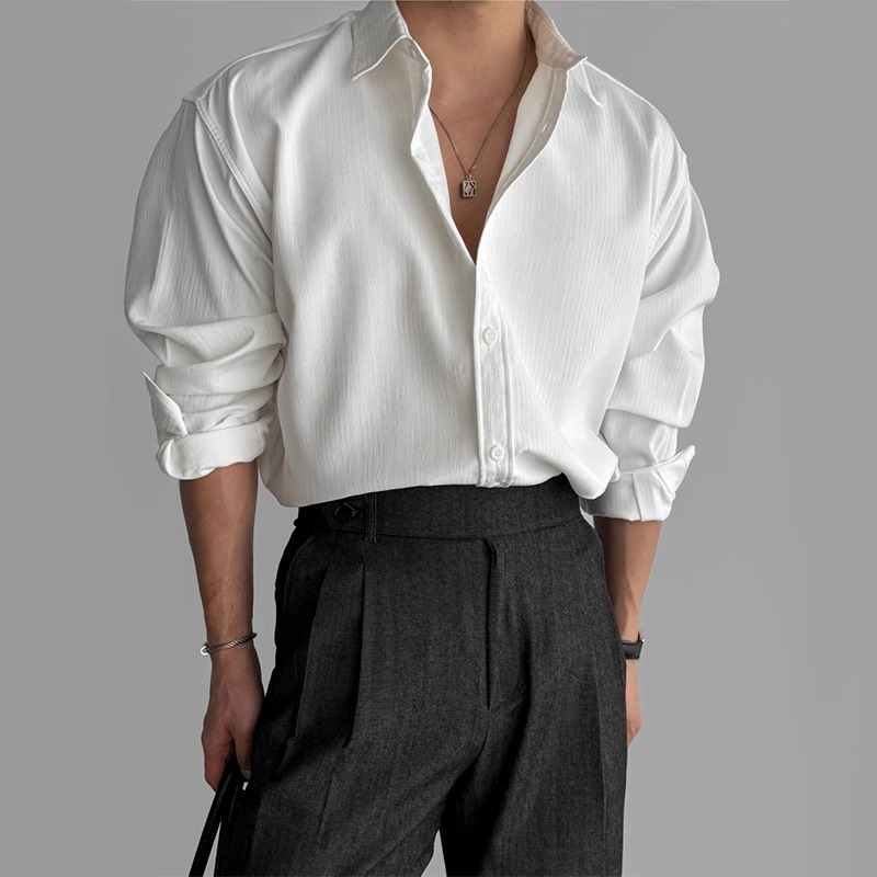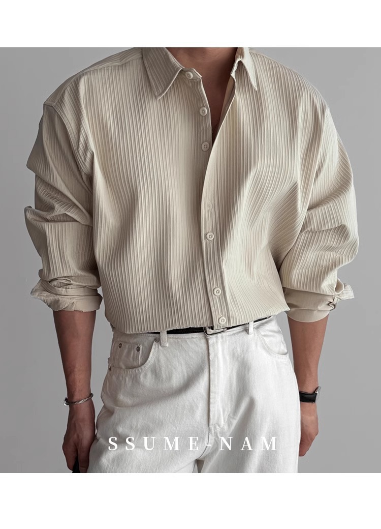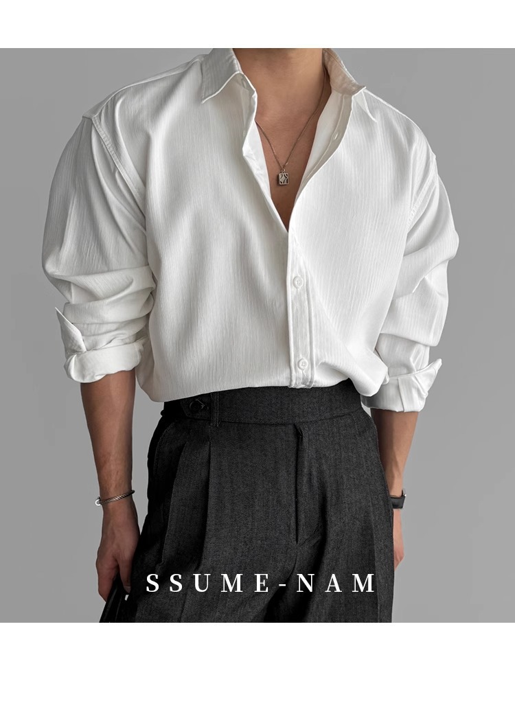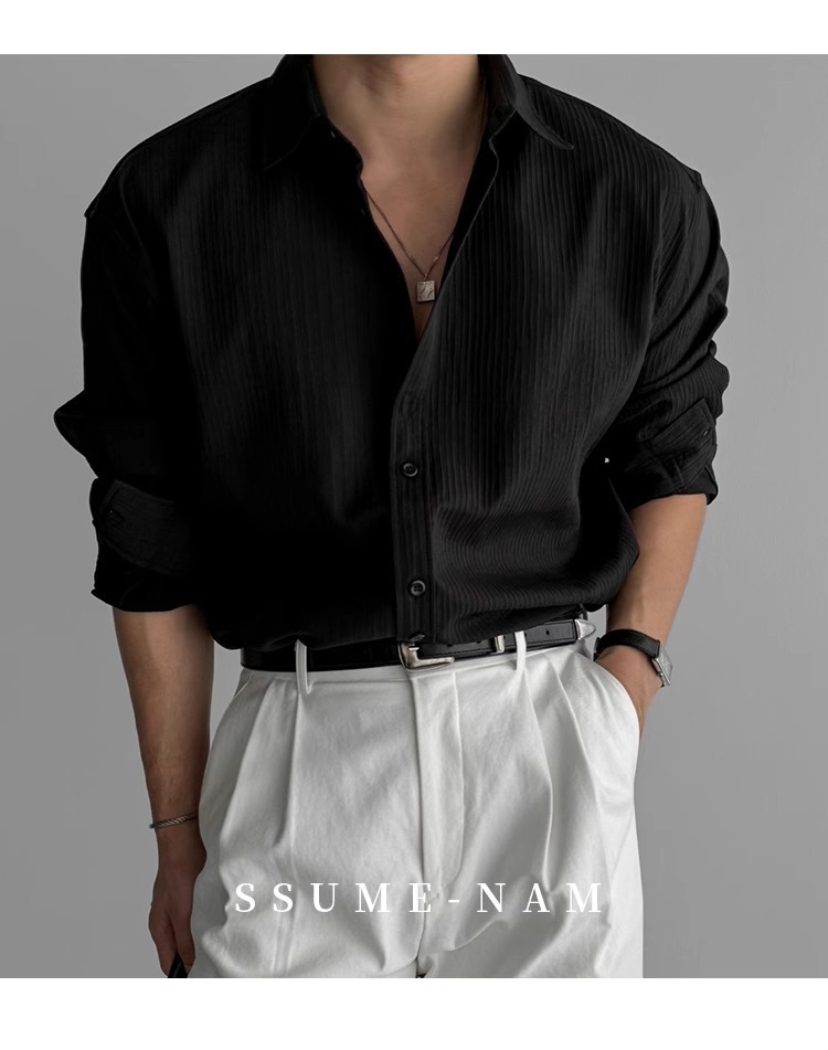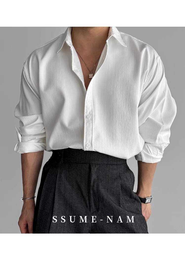 질감 새로운 긴 소매 셔츠 남성용 느슨한 한국 스타일 틈새 봄과 가을 2025 캐주얼 셔츠 코트 탑 디자인