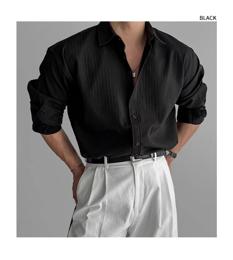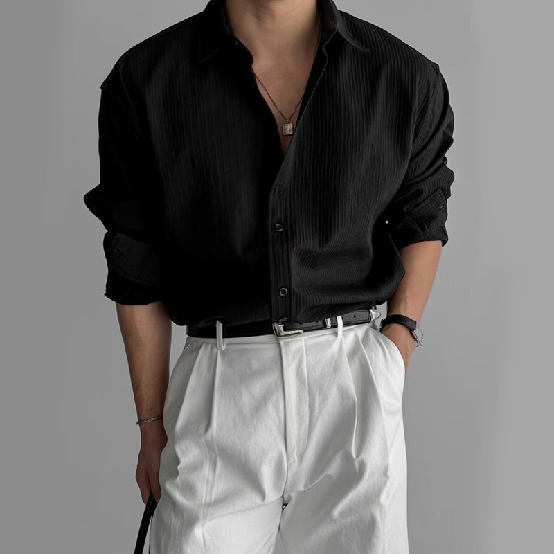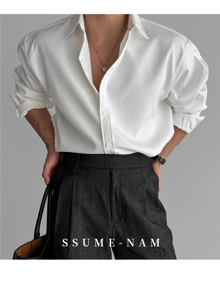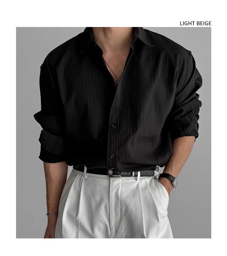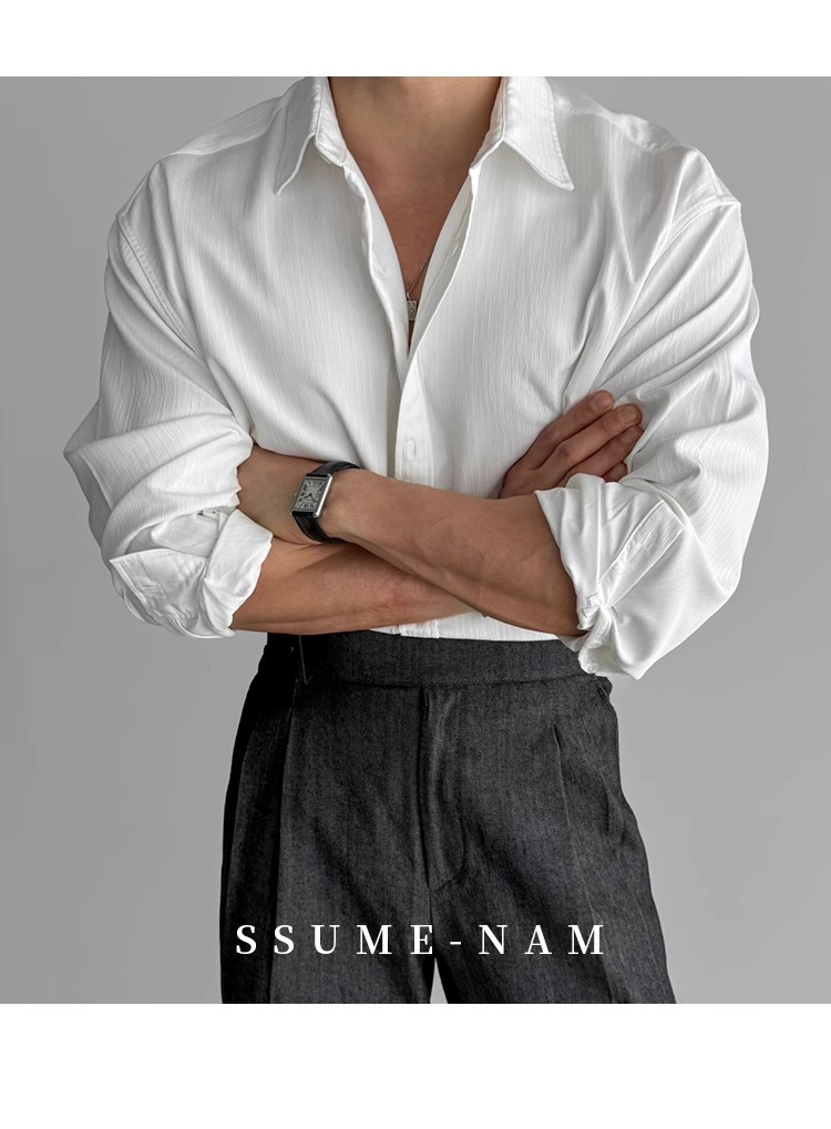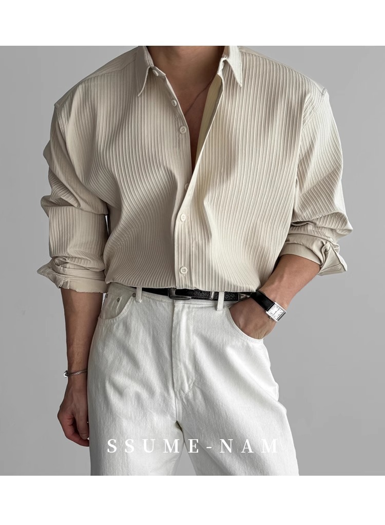 질감 새로운 긴 소매 셔츠 남성용 느슨한 한국 스타일 틈새 봄과 가을 2025 캐주얼 셔츠 코트 탑 디자인