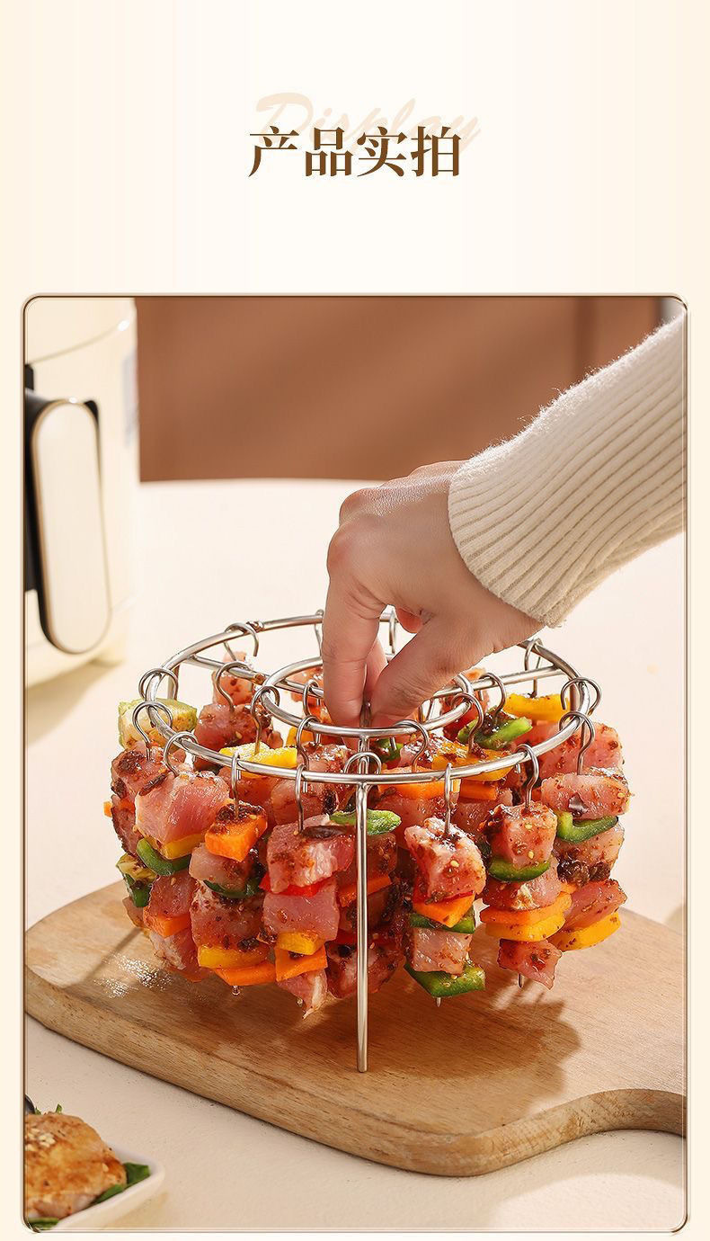 家用不锈钢烧烤架烤食品级空气炸锅圆形烤架专用烤肉烤针烤串架子