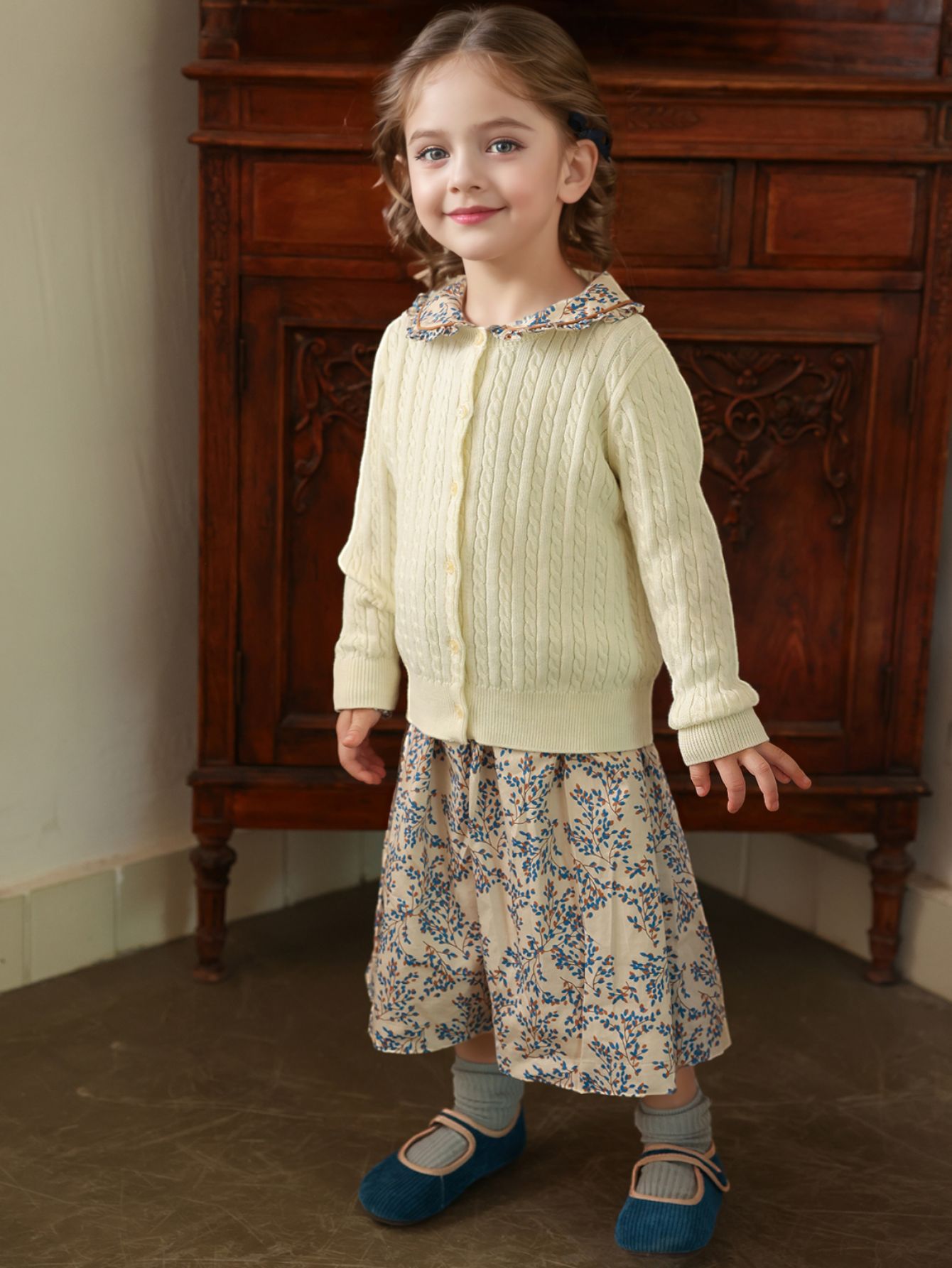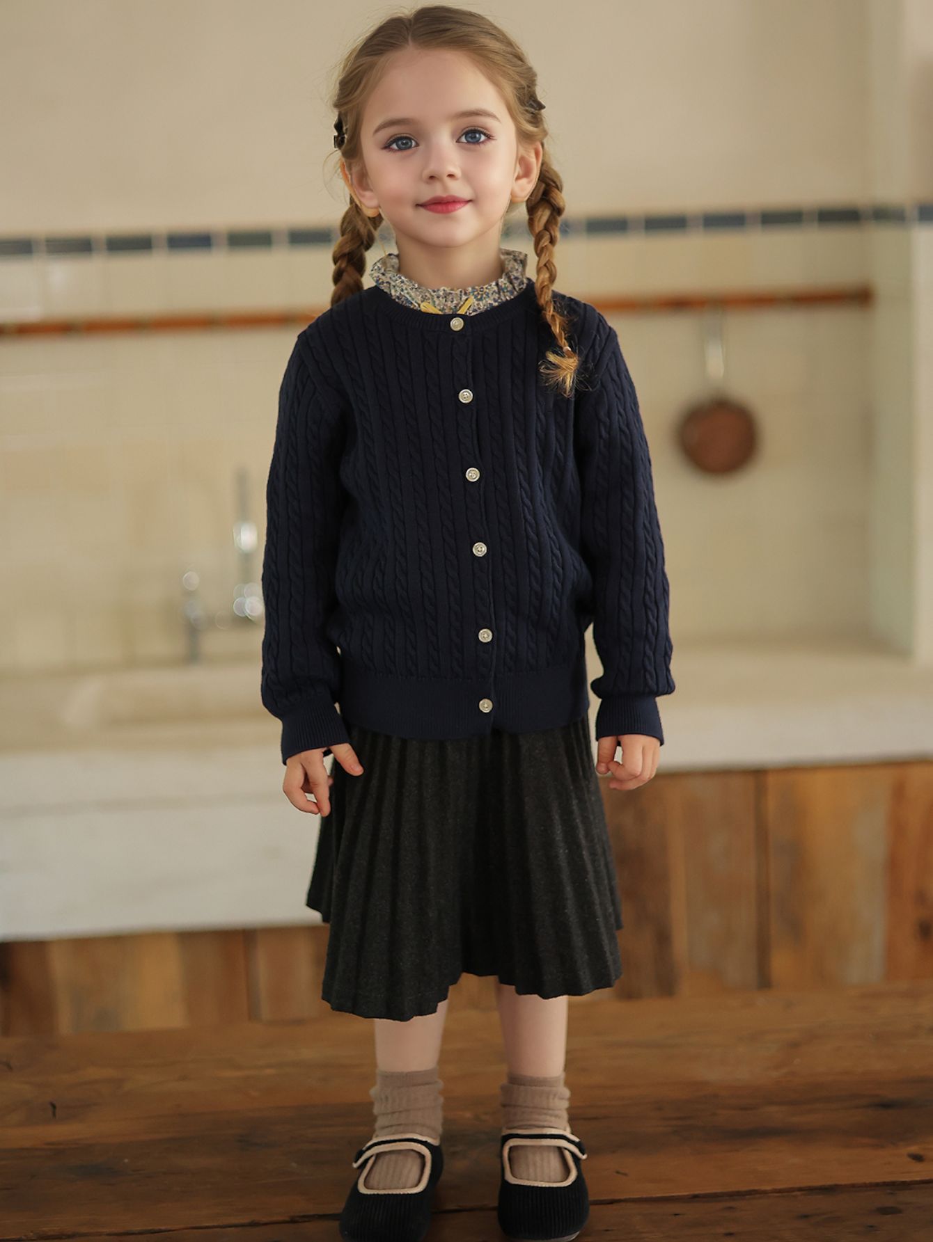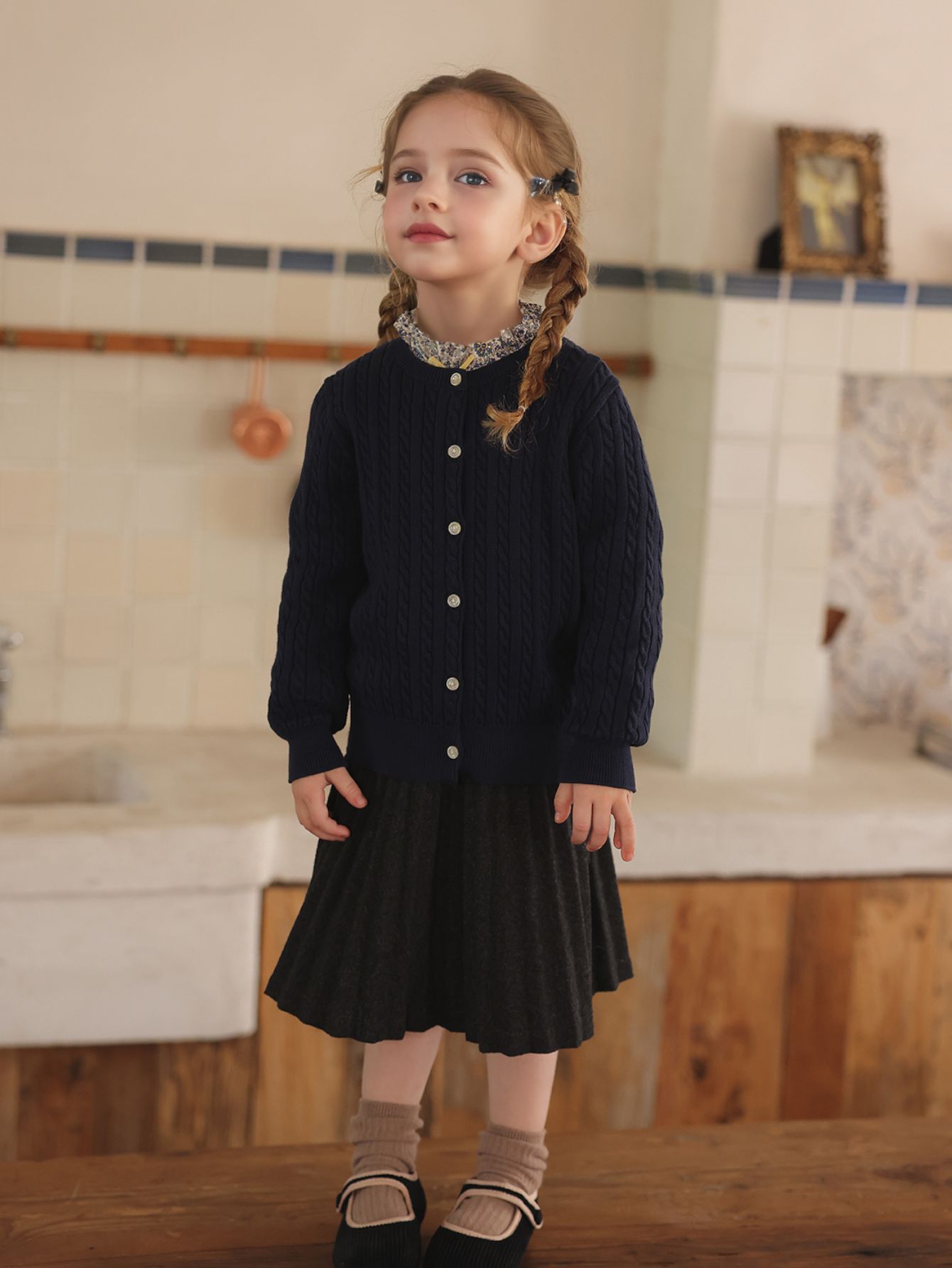 여자 스웨터 2025 봄과 가을 새로운 스타일 트위스트 가디건 베이비 울 스웨터 봄 스타일 다목적 탑 어린이스토어 가기