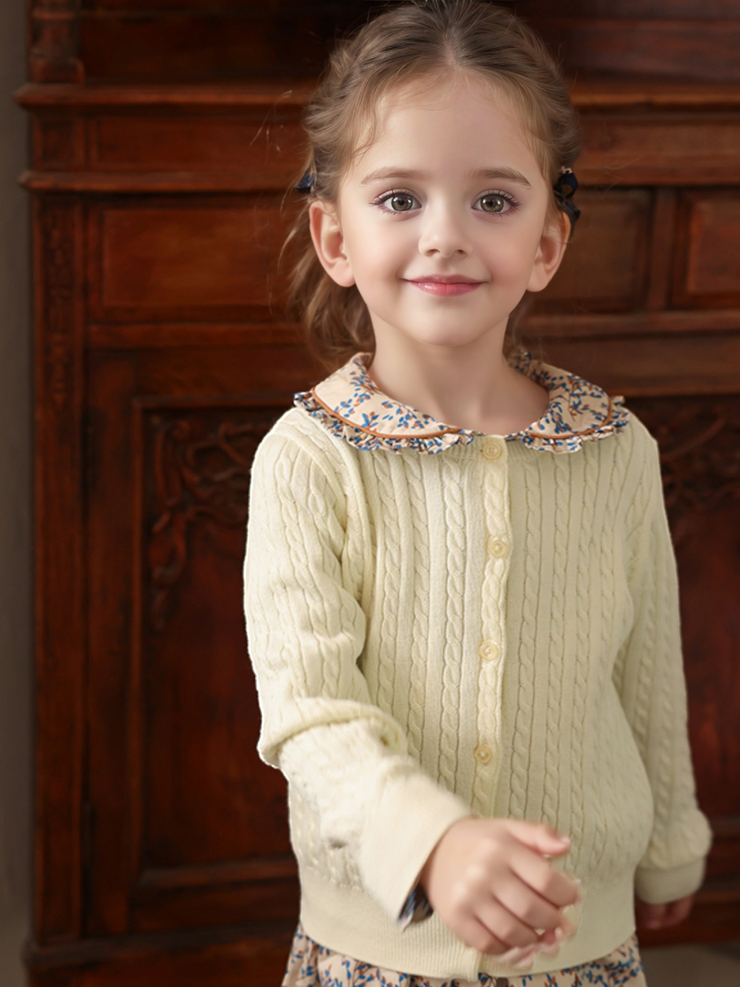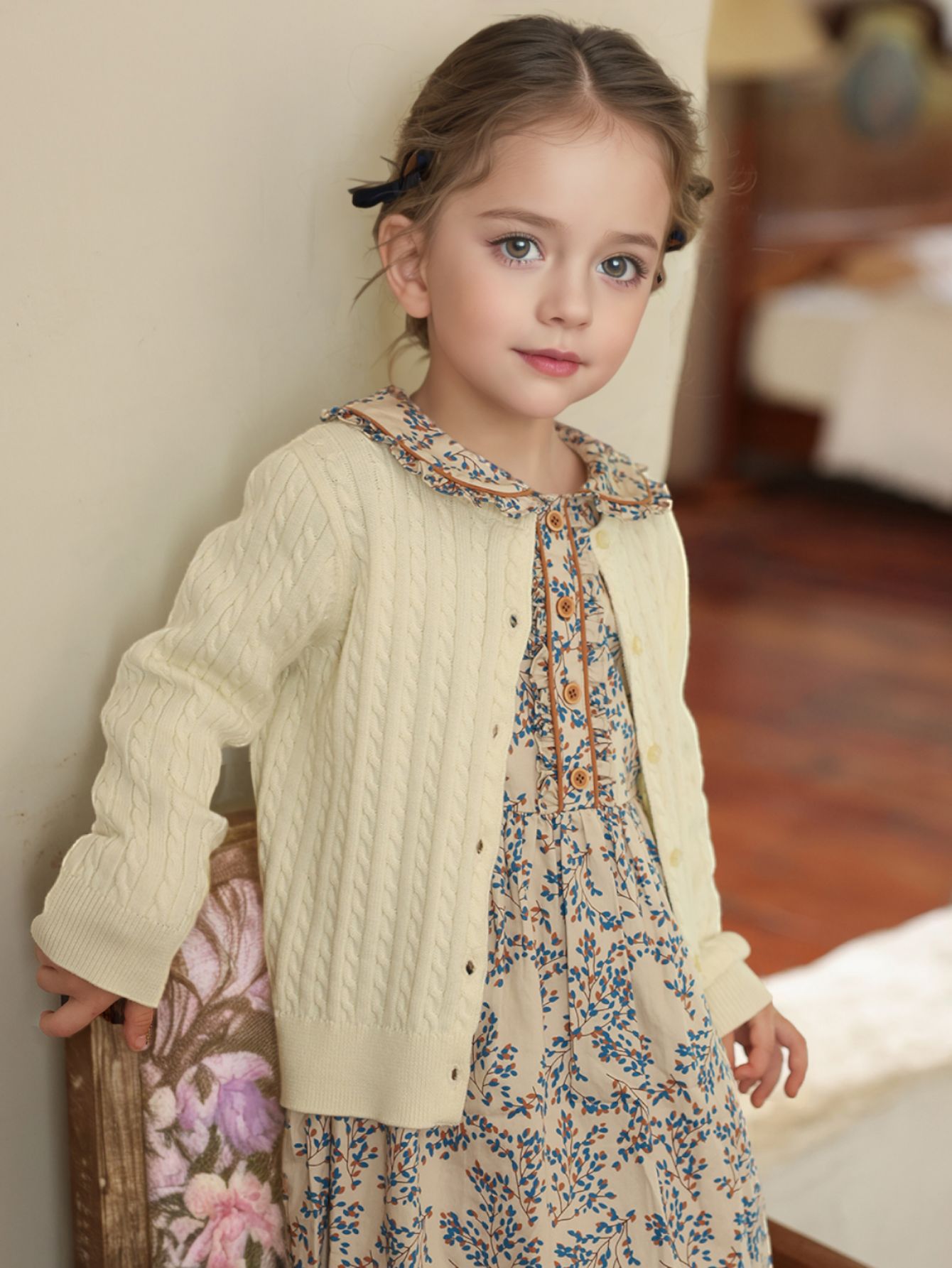 여자 스웨터 2025 봄과 가을 새로운 스타일 트위스트 가디건 베이비 울 스웨터 봄 스타일 다목적 탑 어린이