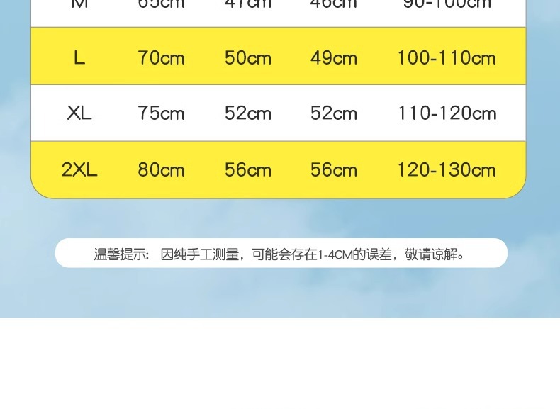 • 2XL 권장 신장 기준은 120-130CM입니다.