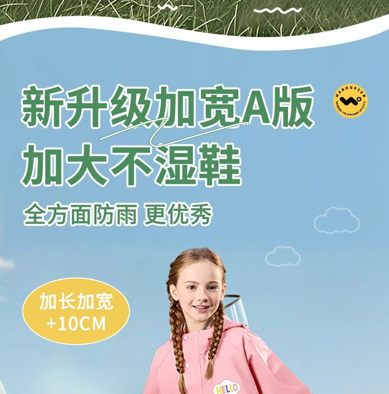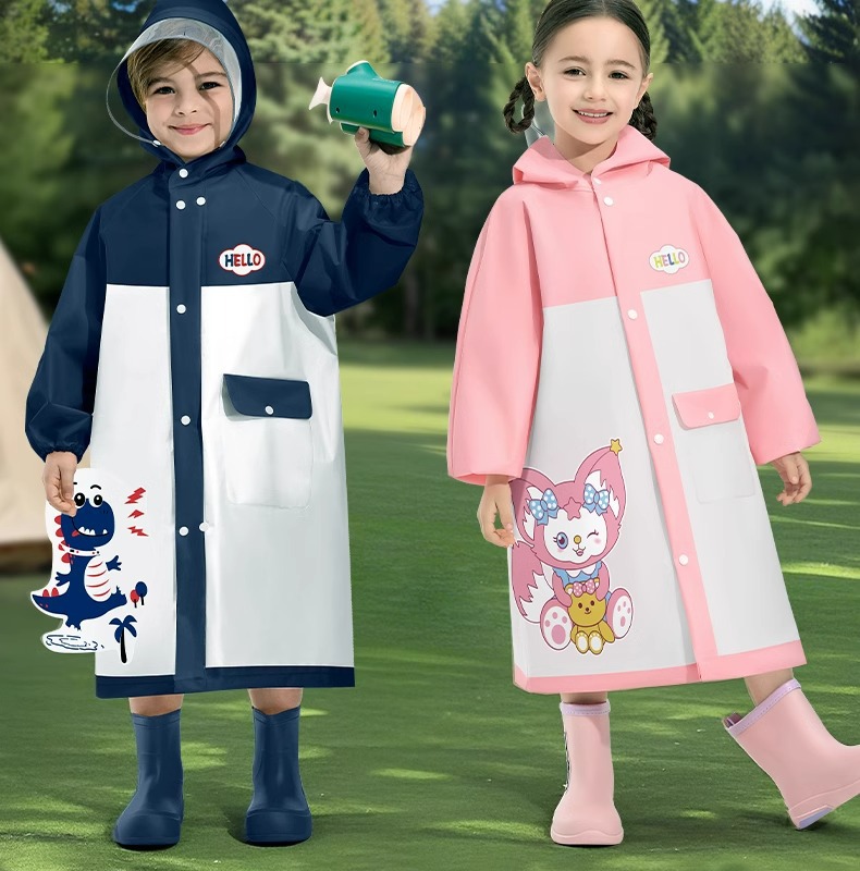 어린이용 레인코트, 중학생용 지퍼형 책가방 수납공간, 여학생 전용, 일체형 전신 방수, 남학생용 레인코트스토어 가기