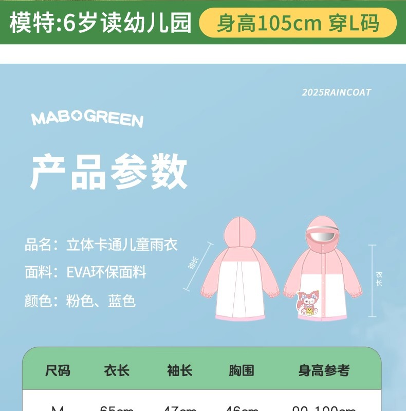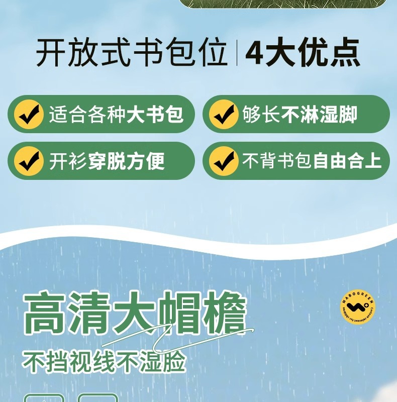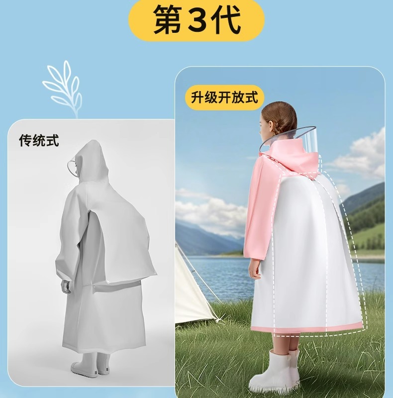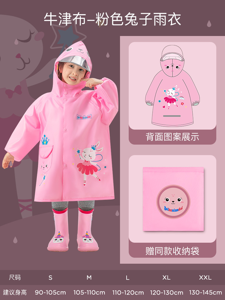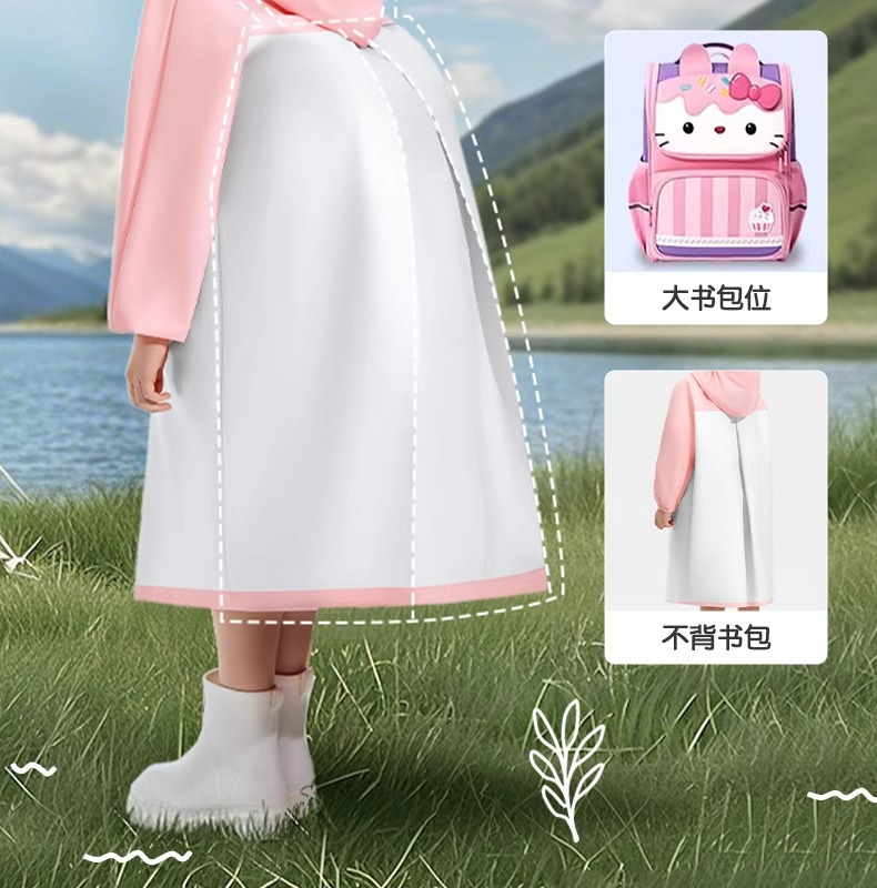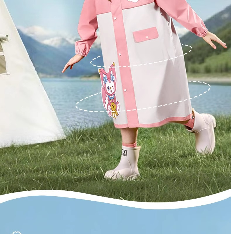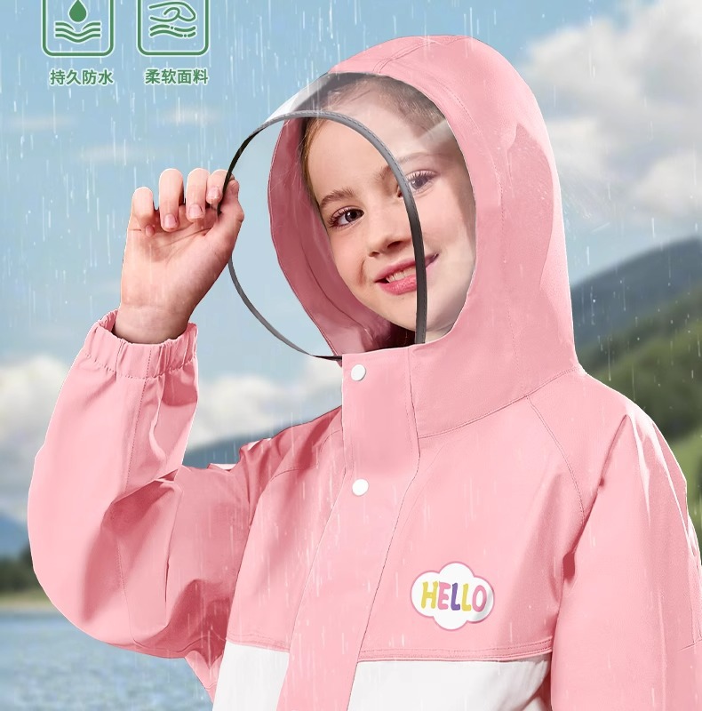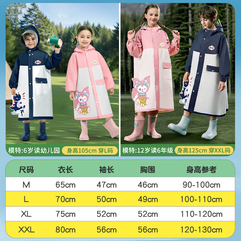 어린이용 레인코트, 중학생용 지퍼형 책가방 수납공간, 여학생 전용, 일체형 전신 방수, 남학생용 레인코트
