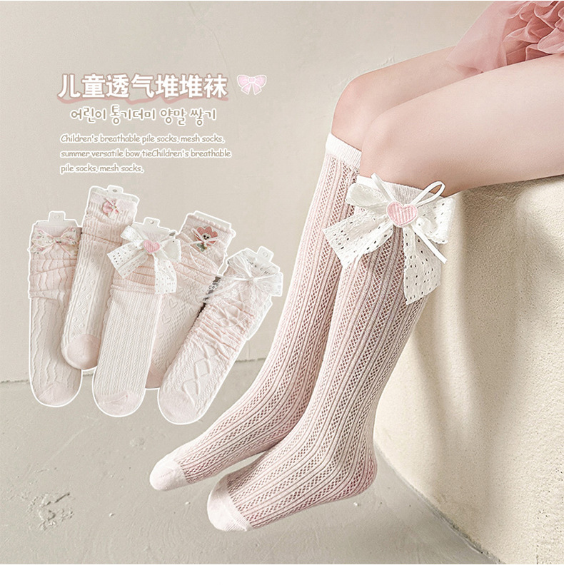 어린이 양말 소녀 한국 스타일 달콤한 핑크 작은 꽃 버섯 여름 울트라 얇은 중공 스타킹 화이트 공주 양말