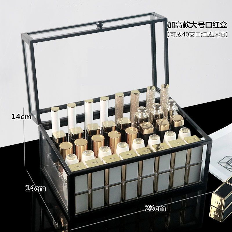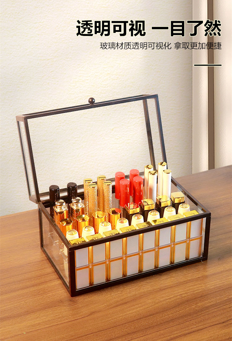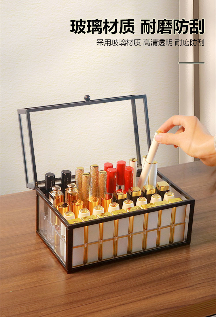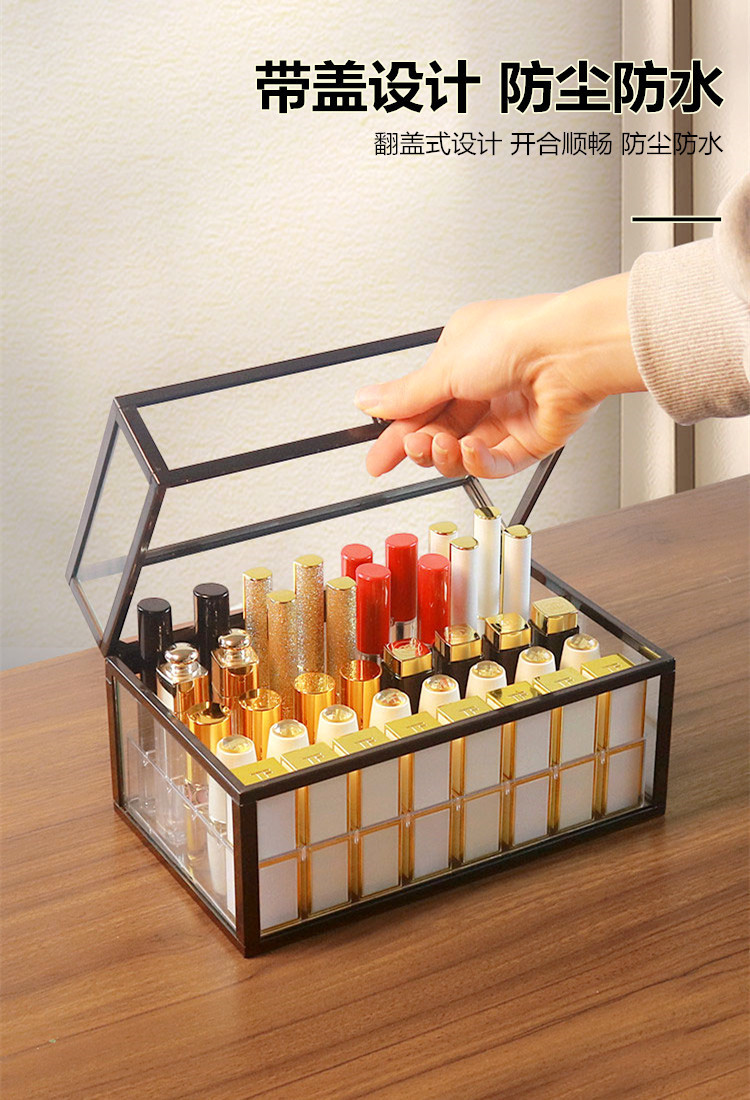 ∝【9139명이 호평】립스틱 보관함, 방진 멀티 그리드 투명 유리 화장품 상자, 립글레이즈