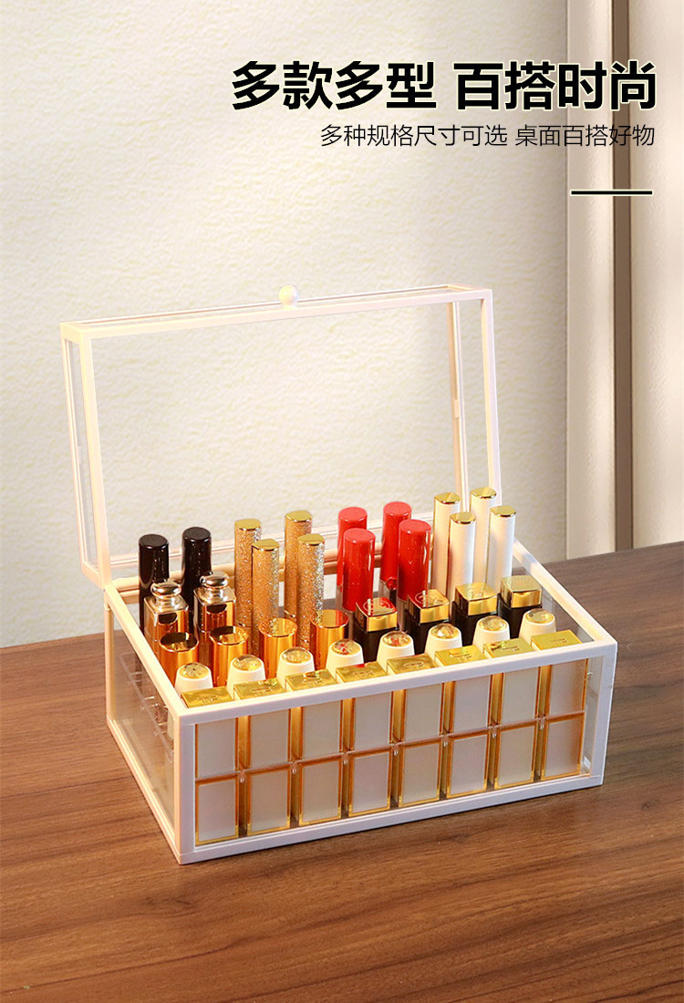 ∝【9139명이 호평】립스틱 보관함, 방진 멀티 그리드 투명 유리 화장품 상자, 립글레이즈스토어 가기
