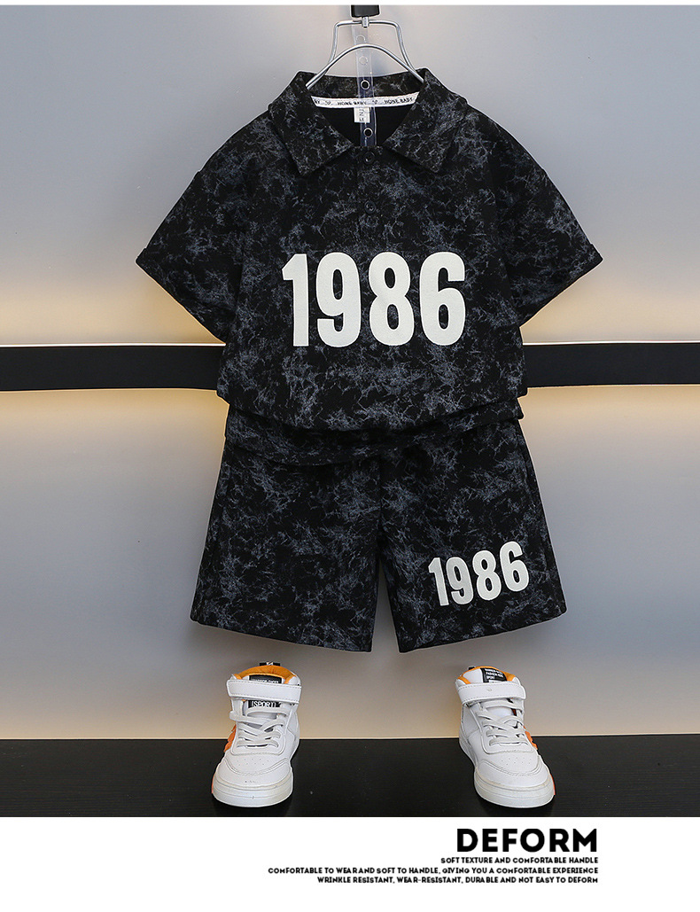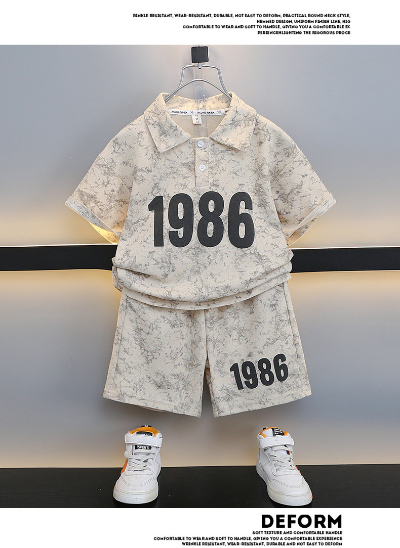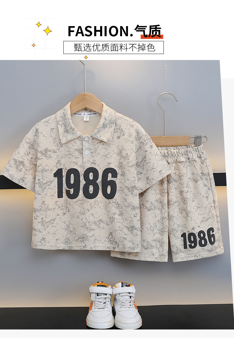 남자들의 여름 반팔 세트 서양식 어린이 얇은 POLO 셔츠 2025 새로운 러피 잘 생긴 소년 아동복 조수
