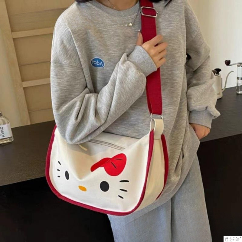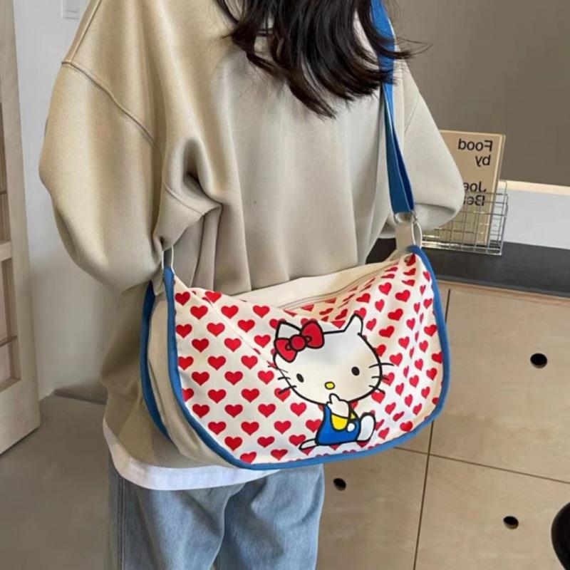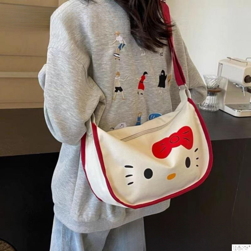 日系卡通帆布包女新款小众设计可爱上课百搭单肩马鞍包斜挎饺子包