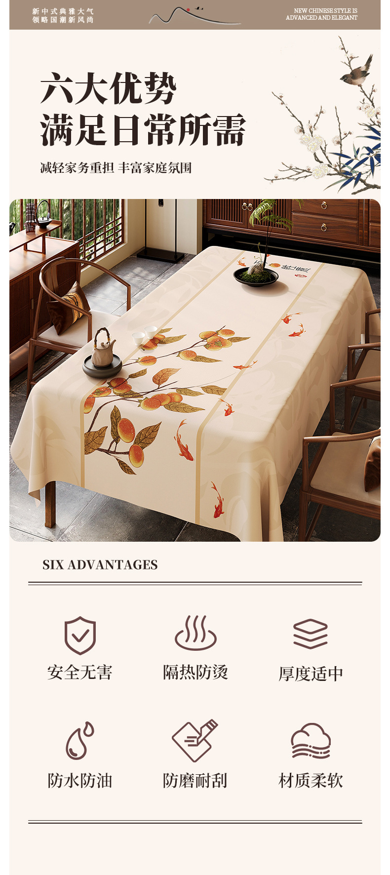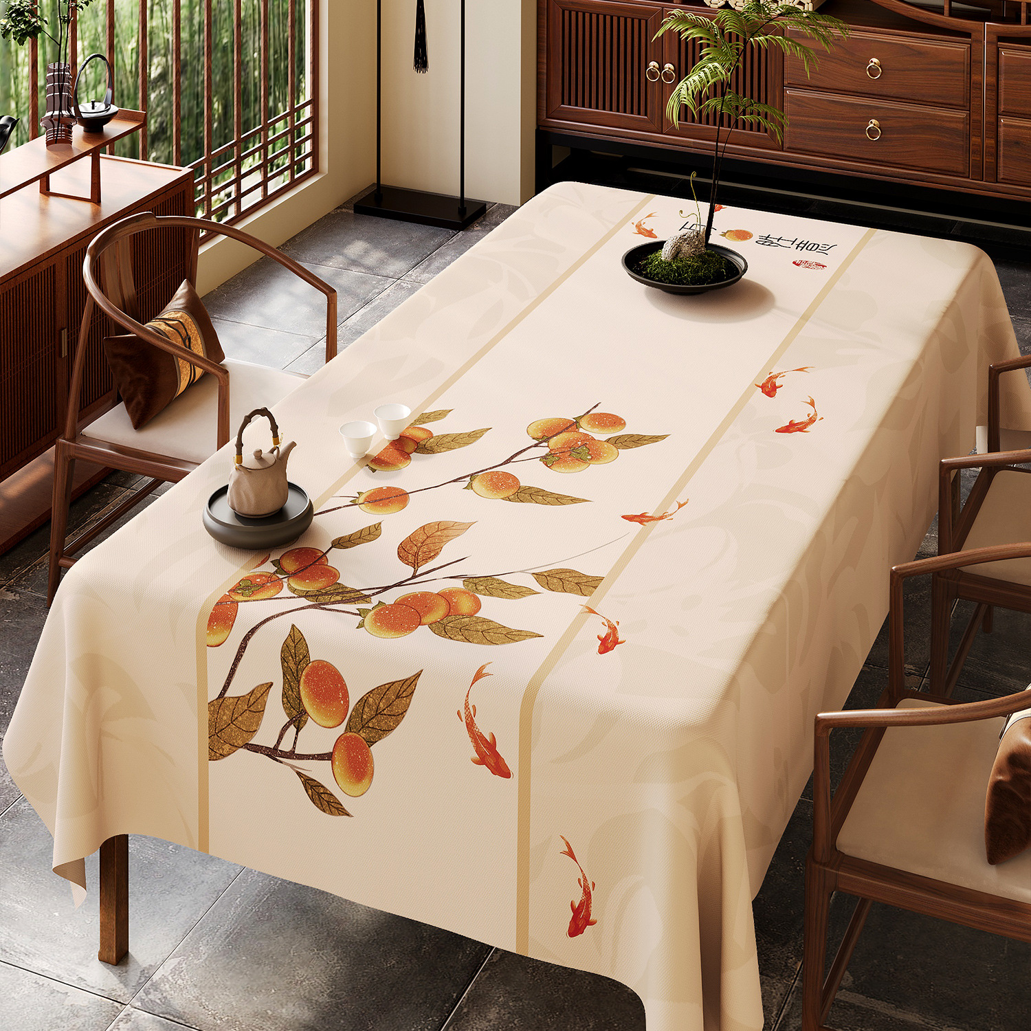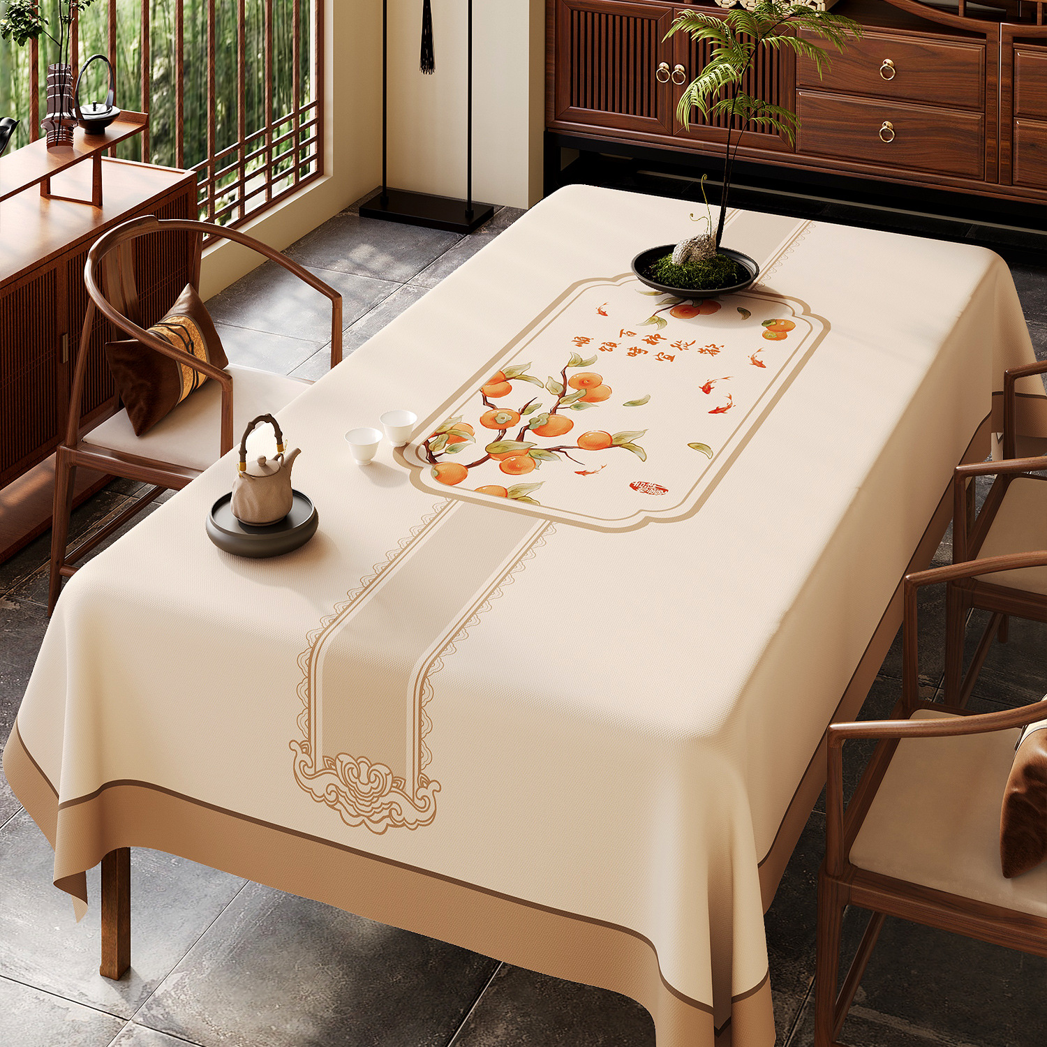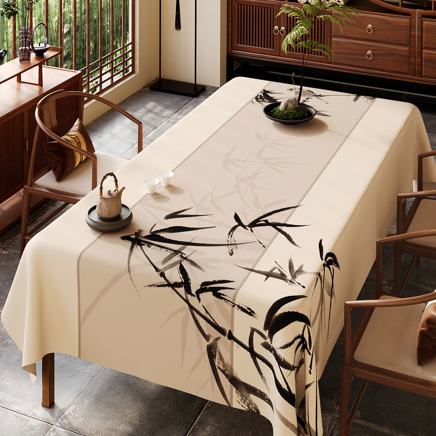새로운 중국 선 식탁보 방수 및 기름 방지 비 빨 직사각형 차 식탁보 빛 고급 고급 Guofeng 빈티지 식탁보