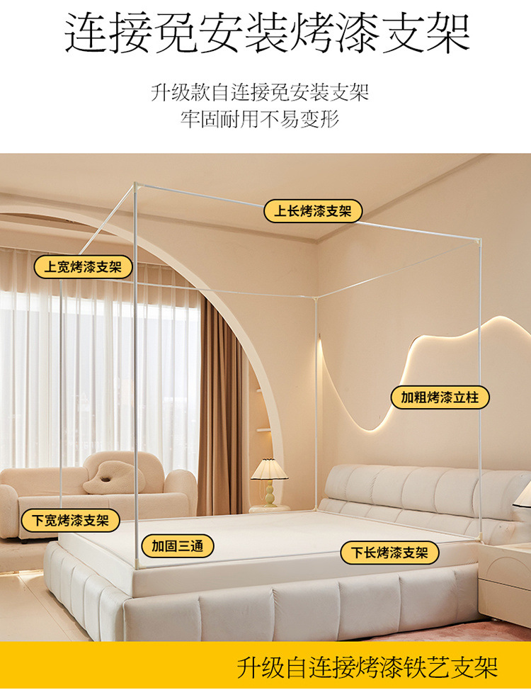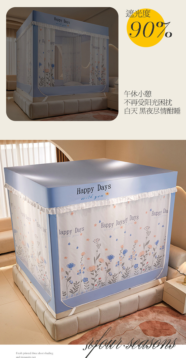 안티 드롭 모기장 지퍼 침대 가정용 침실 몽골 유르트 통합 음영 침대 커튼 2025 새로운 방진 및 방풍스토어 가기