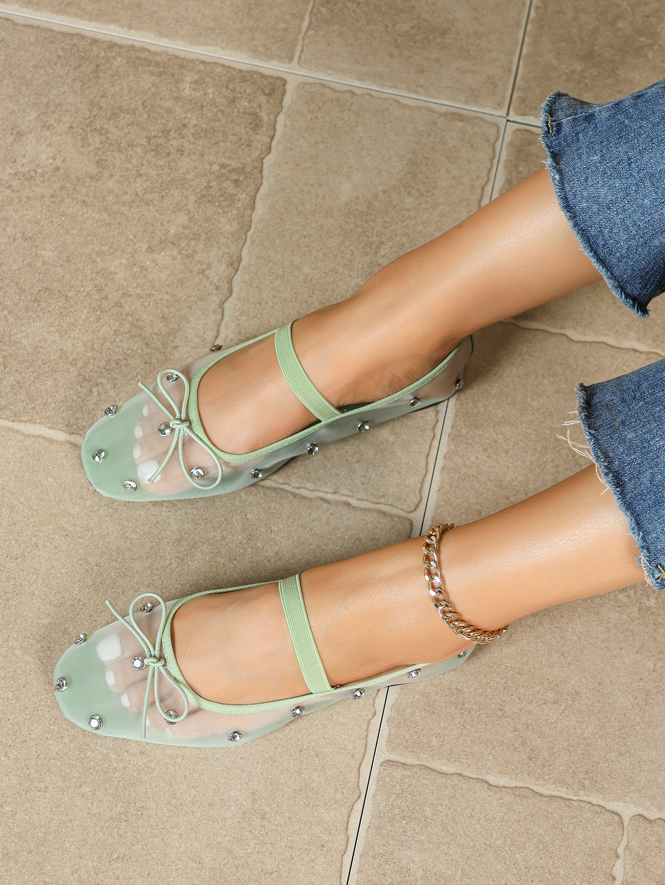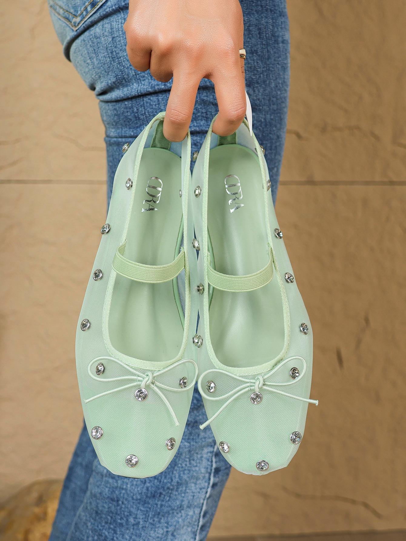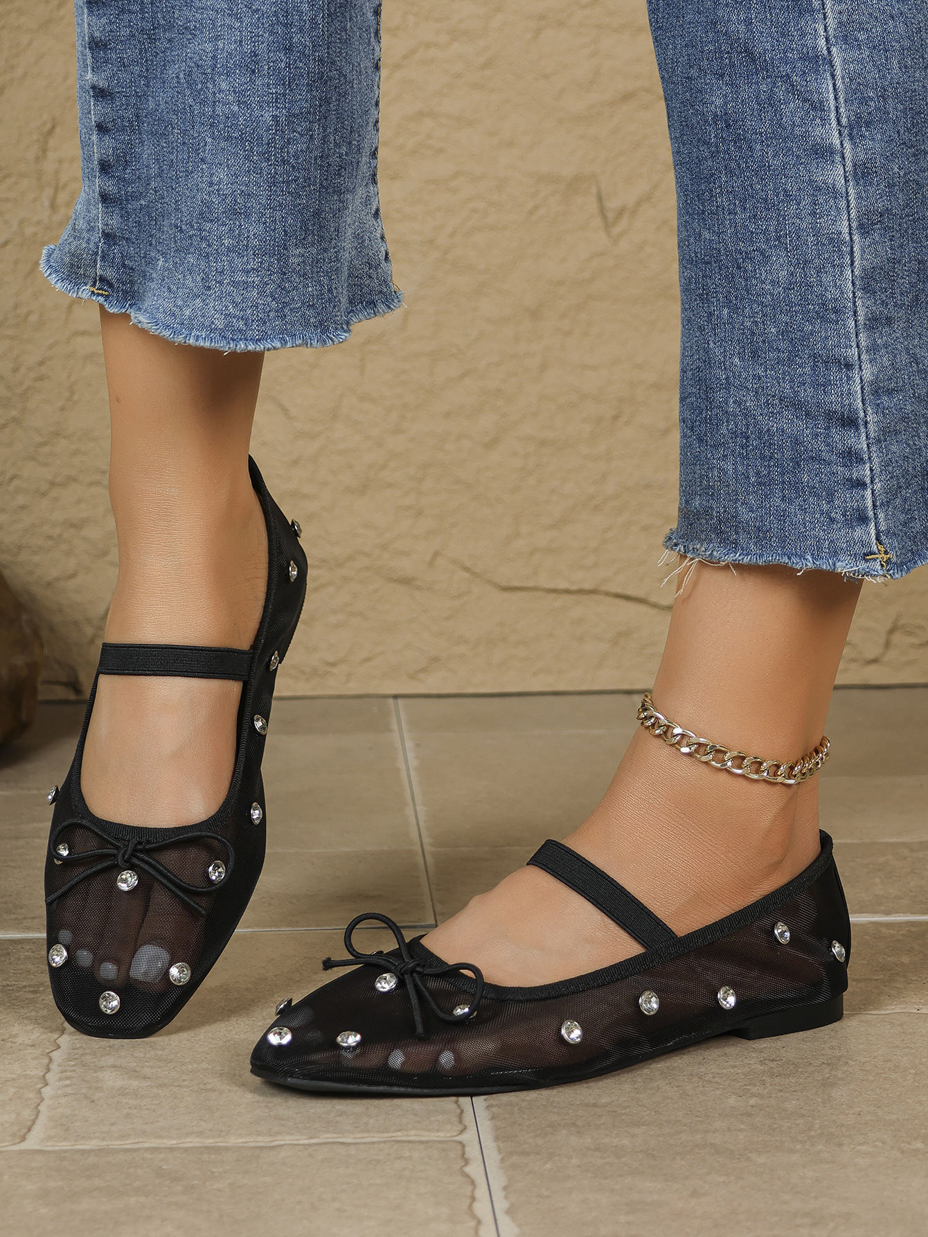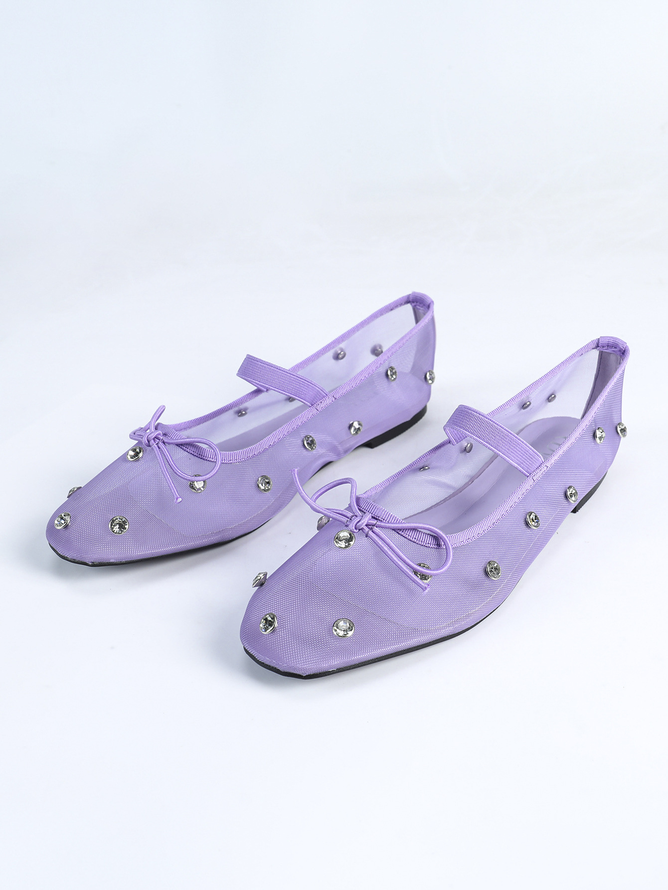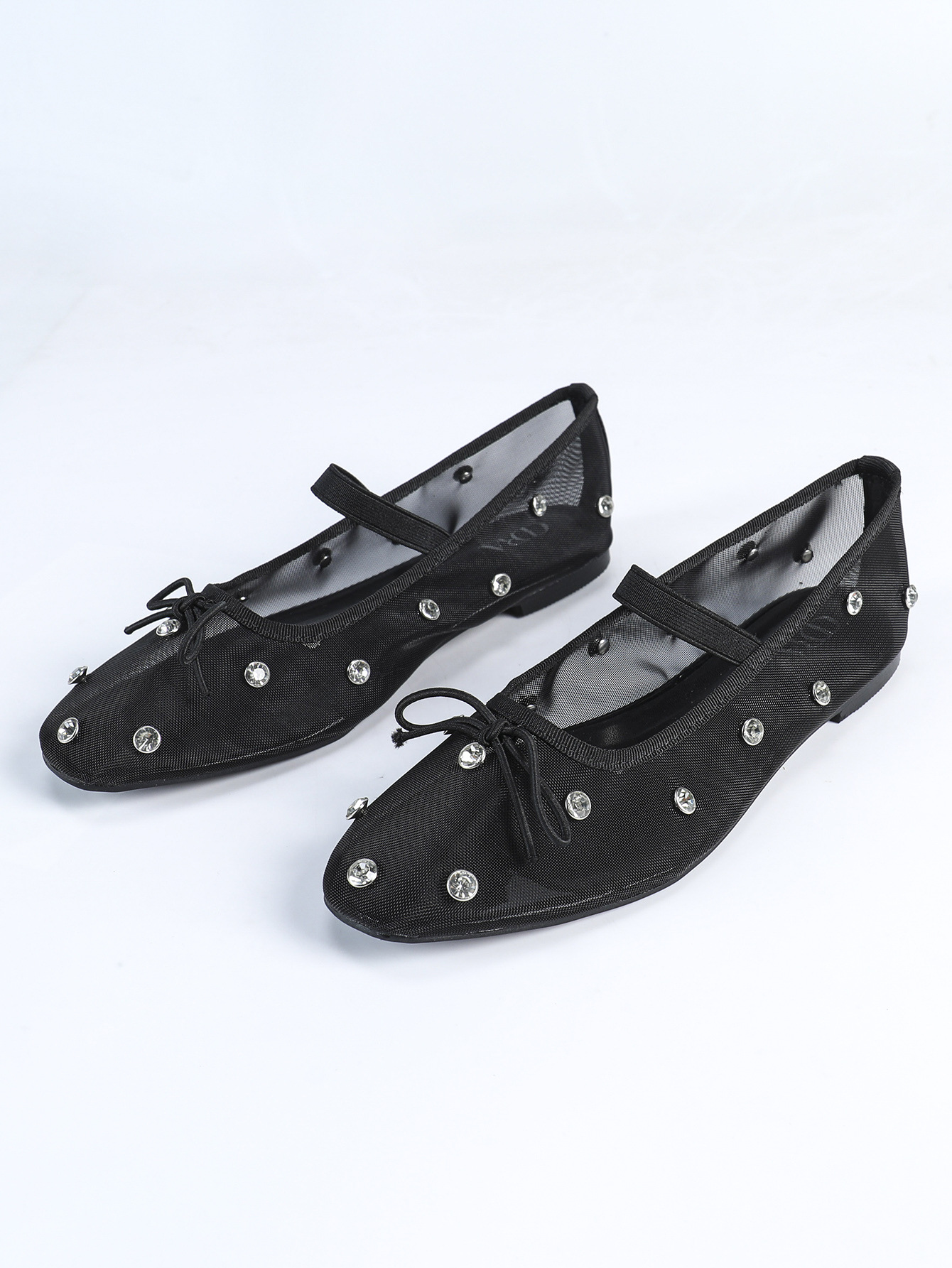 여름 새 스타일 메리 제인 신발 메쉬 통기성 플랫 펌프 발레 신발 나비 매듭 라인 석 신발 여성 싱글 신발스토어 가기