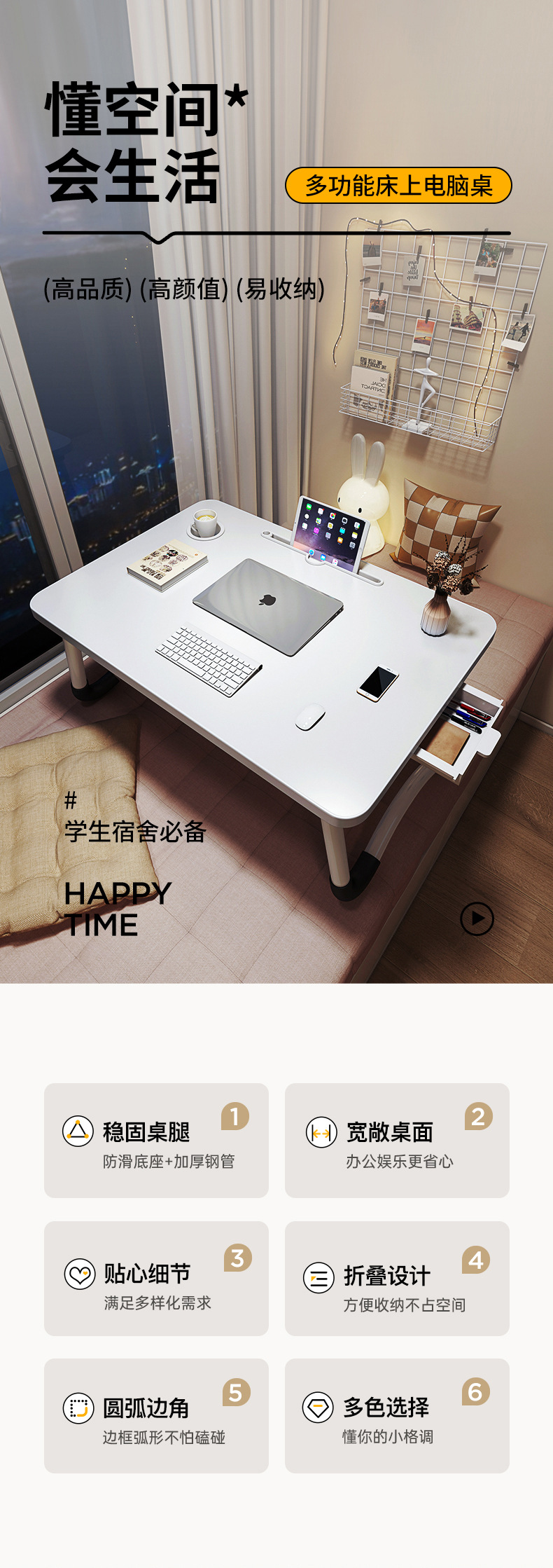 침대 작은 테이블 접이식 컴퓨터 책상 베이 창 연구 책상 집 침실 앉아 학생들을 위한 게으른 노트북 테이블